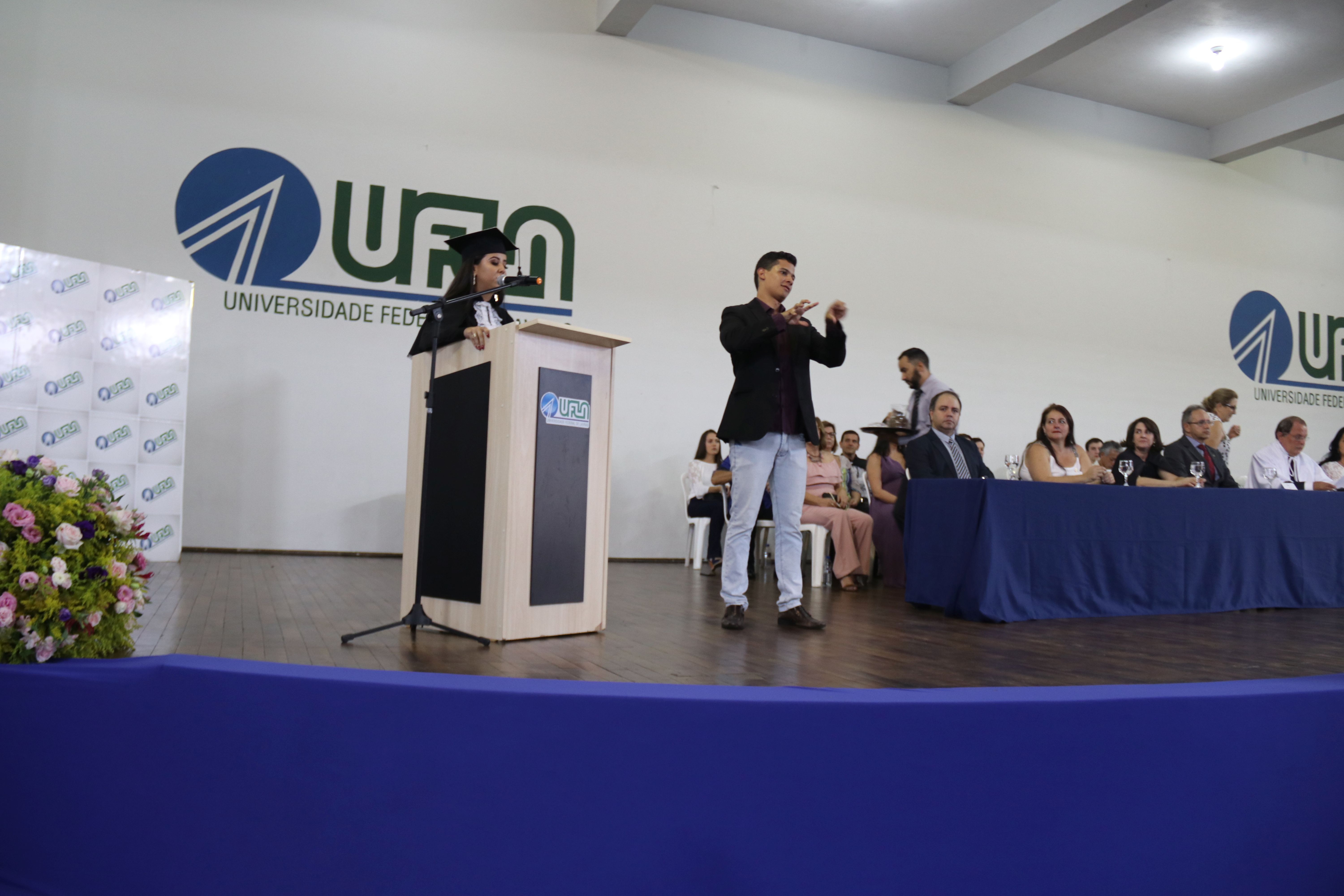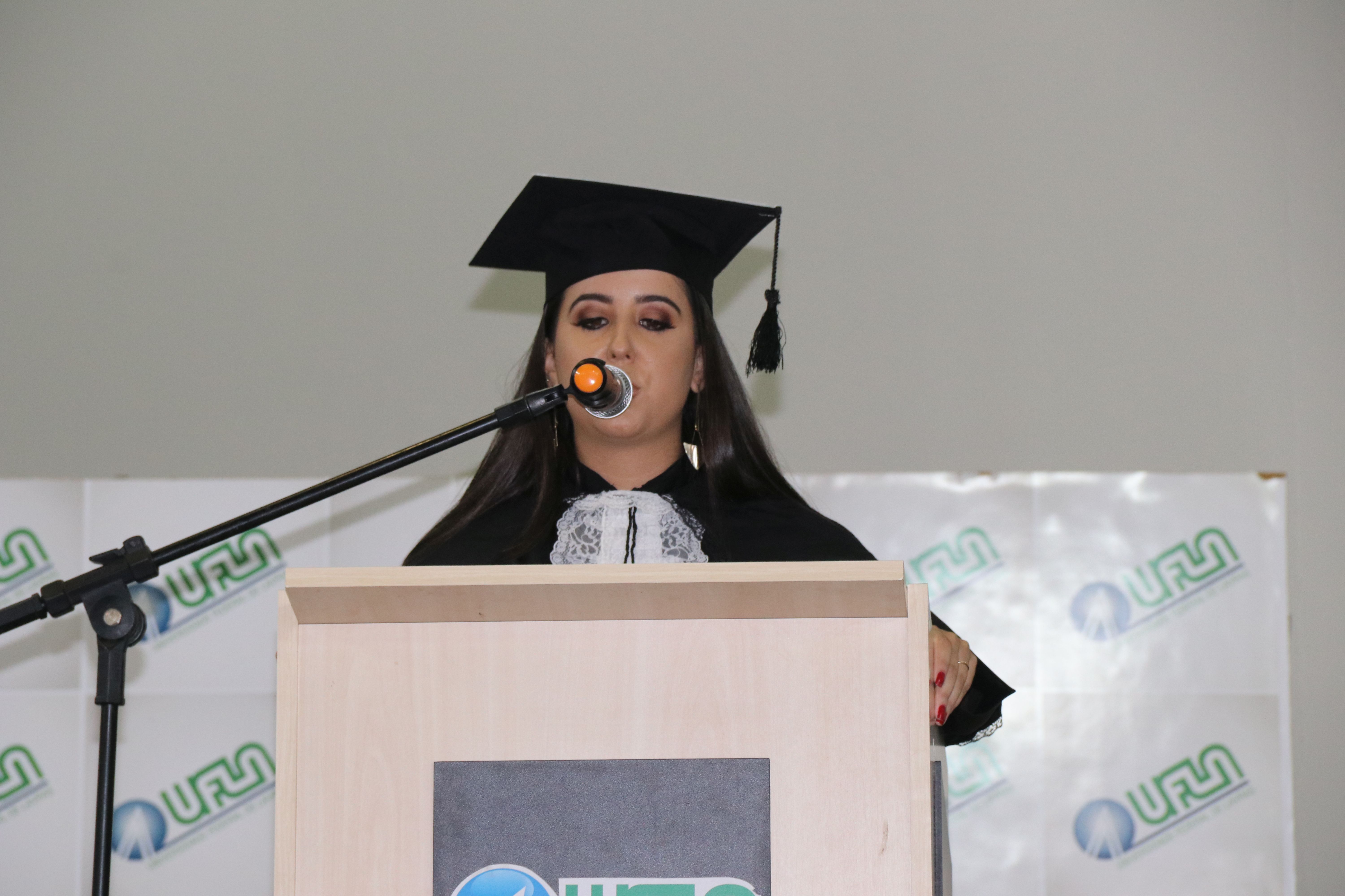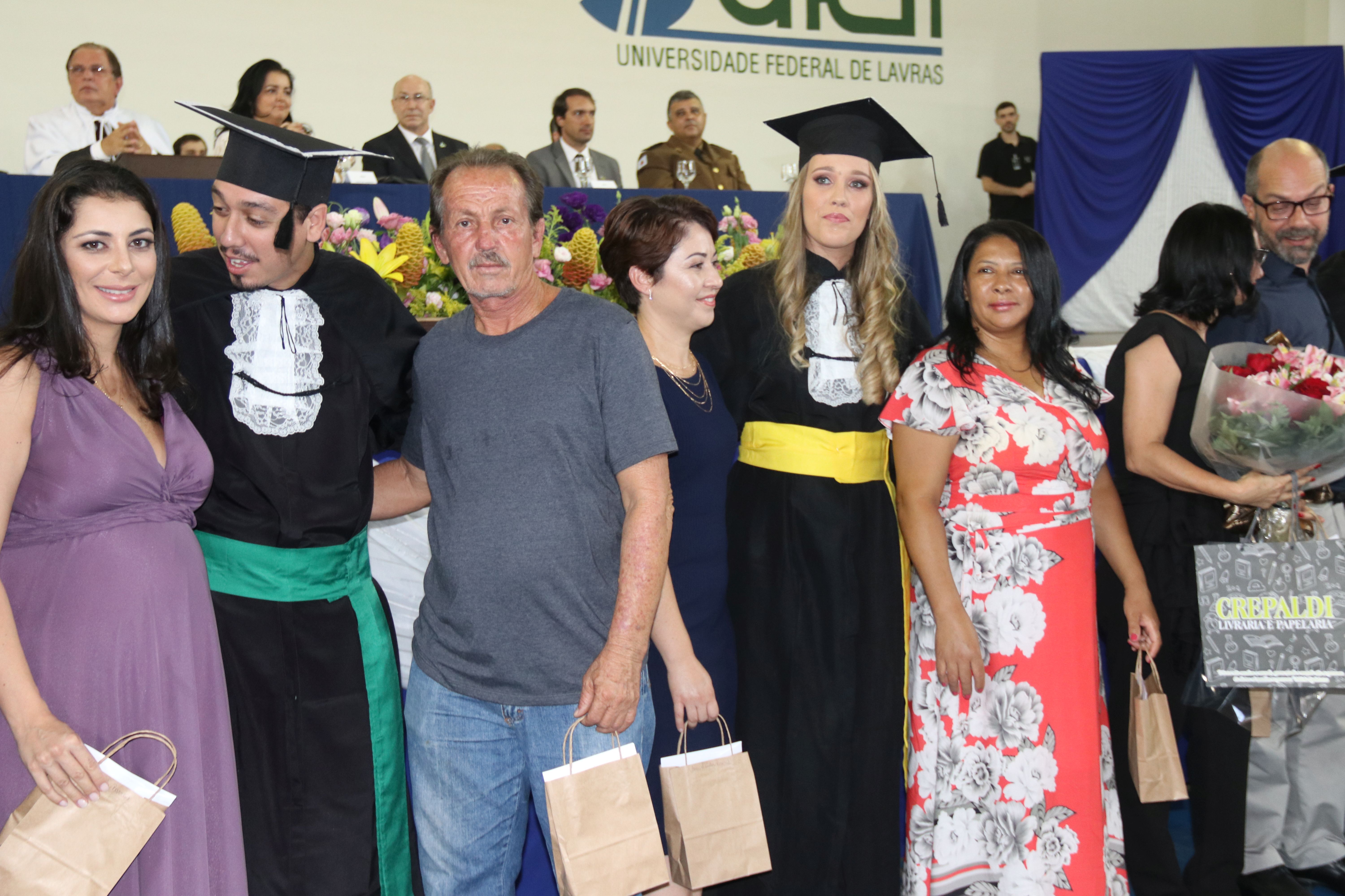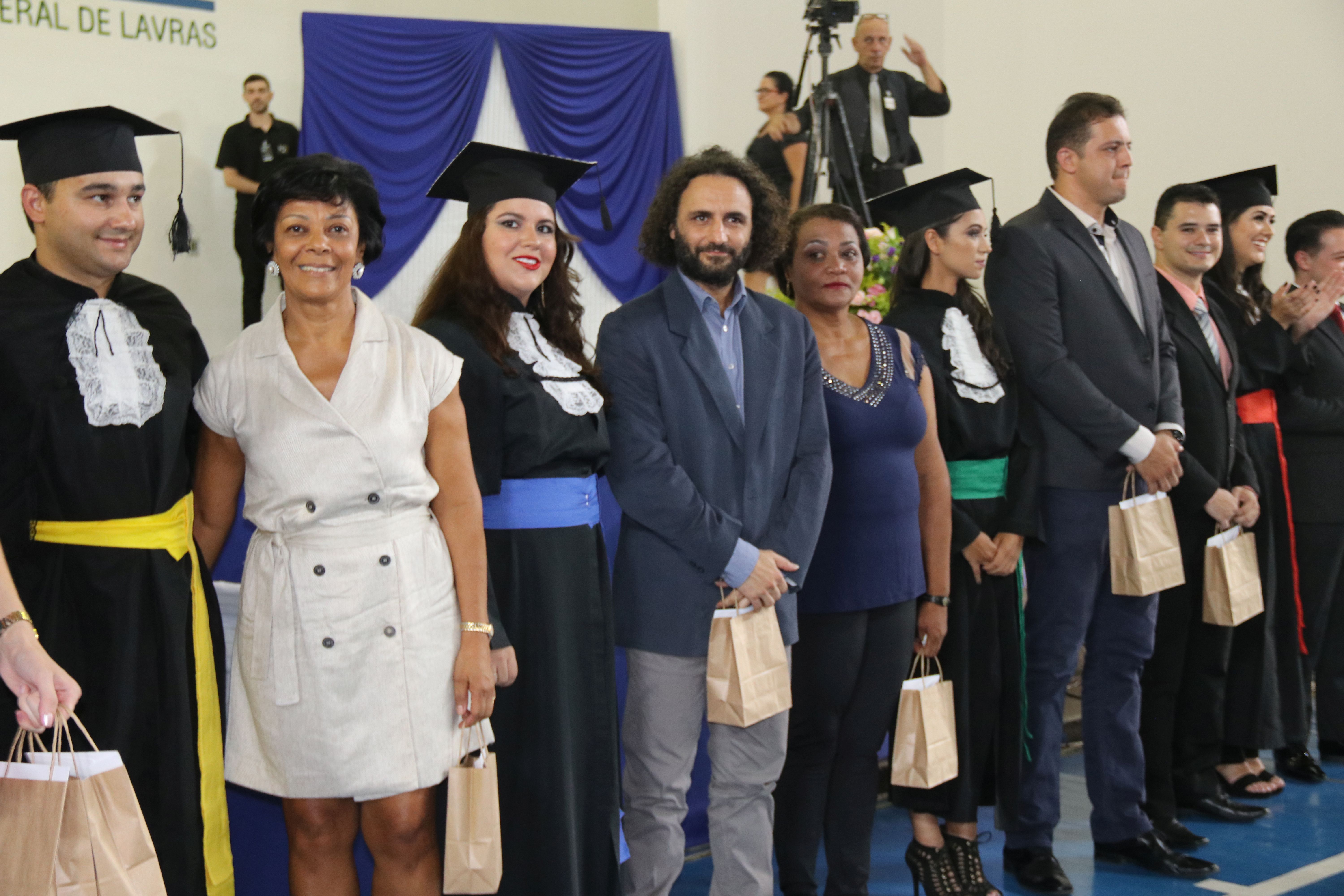 As solenidades foram presididas pelo reitor e presidente do CUNI, professor José Roberto Soares Scolforo. Após fazer referência à tradução das cerimônias na Língua Brasileira de Sinais (Libras), manifestou orgulho pelo fato de a UFLA trabalhar primando pela inclusão e pelo respeito às diversidades. Para os formandos, reforçou a importância do juramento que fizeram, especialmente pelo compromisso com a ética, a justiça e a defesa da liberdade e da paz. “Vocês tiveram a felicidade de se formar sob o investimento do povo brasileiro. Por isso devem se empenhar em cumprir esses compromissos carregados de valores que são hoje tão necessários à sociedade brasileira”. Scolforo também incentivou os novos profissionais a seguirem em frente: “vençam o medo deste momento posterior à conclusão do curso e lutem, busquem alcançar seus sonhos, sejam cidadãos de valor, pratiquem solidariedade e continuem a caminhada com garra e persistência, sempre respeitando as diferenças”.