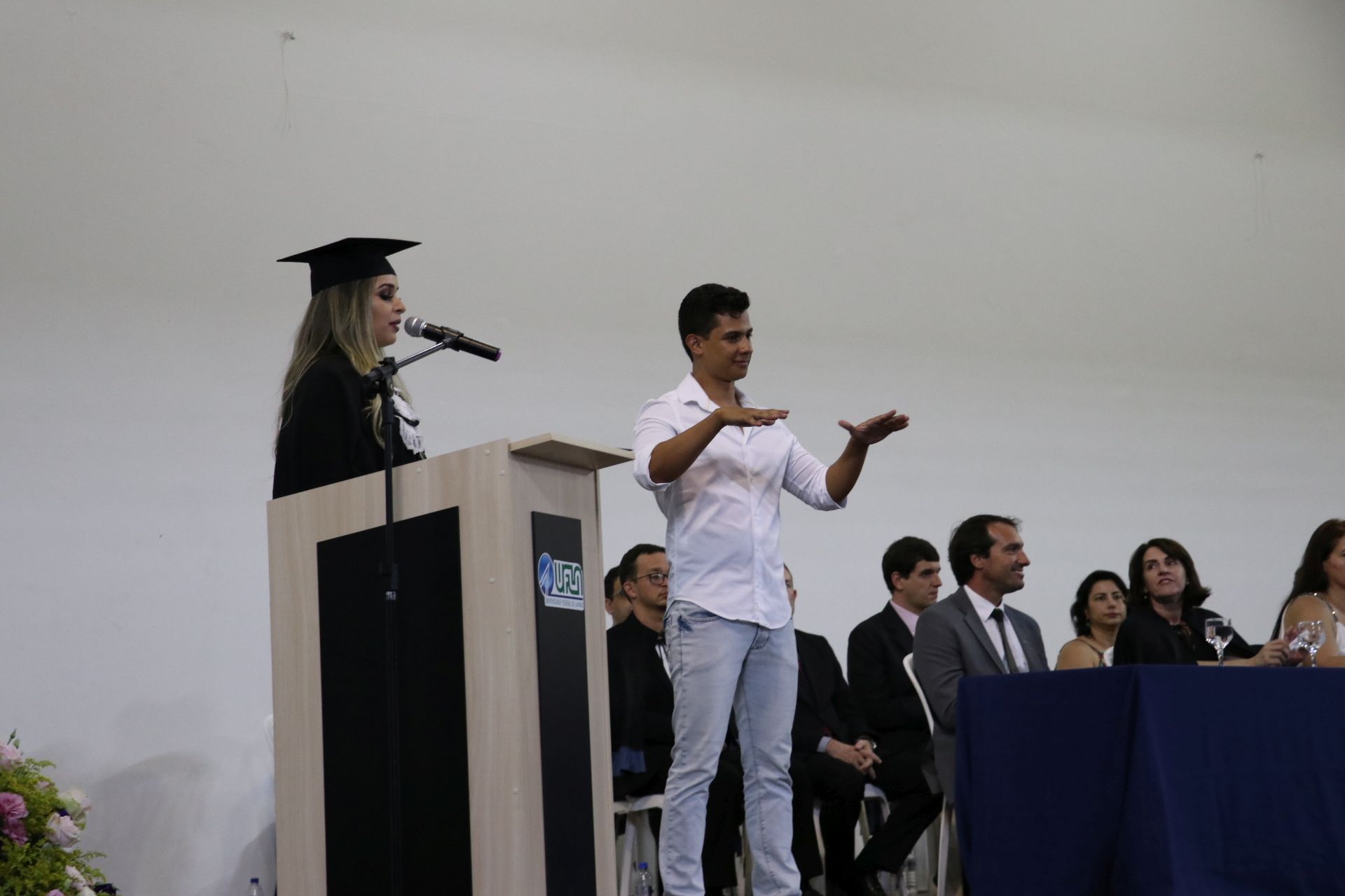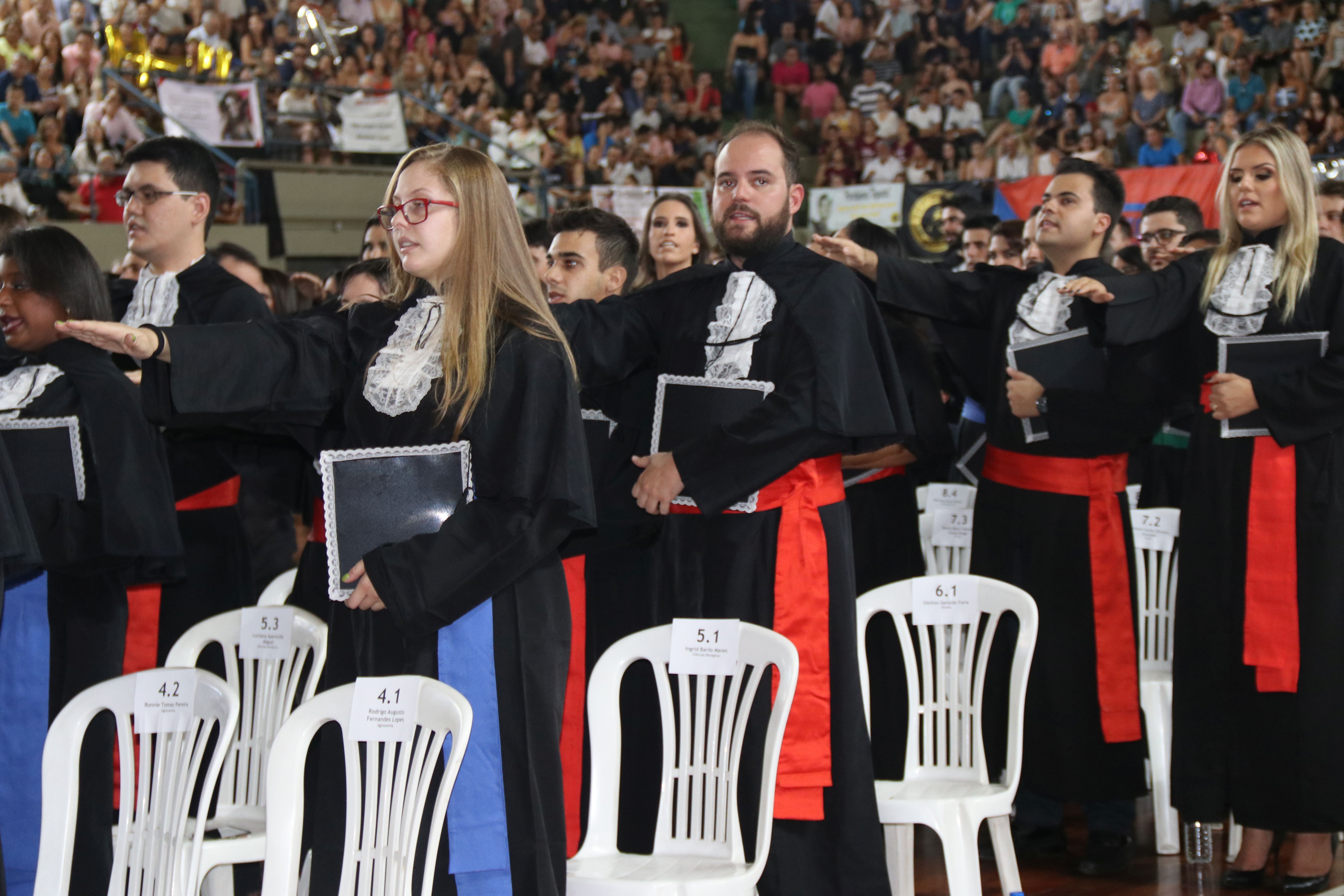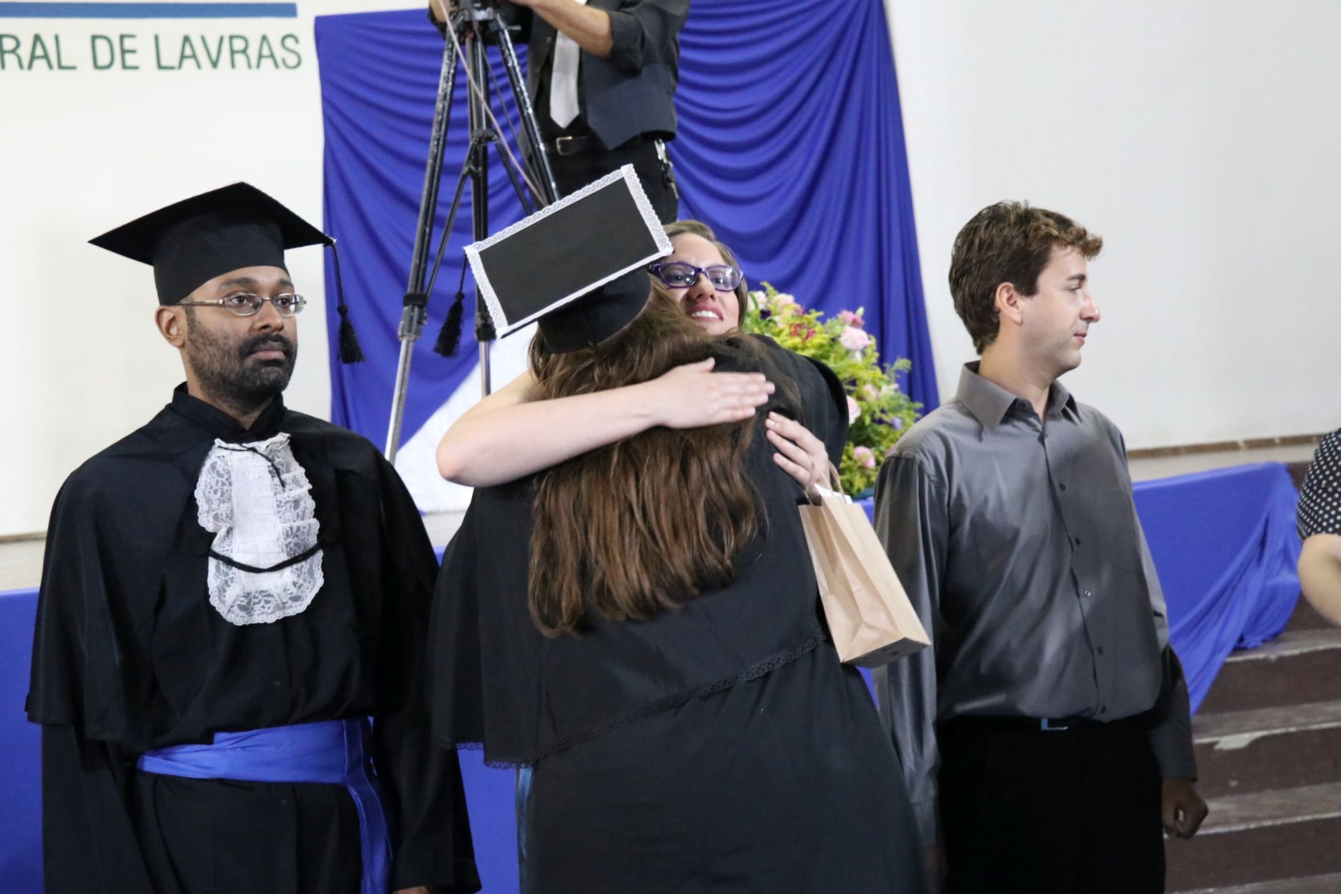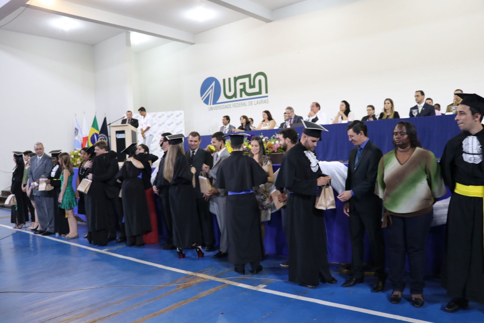 As solenidades foram presididas pelo reitor e presidente do CUNI, professor José Roberto Soares Scolforo. Após fazer referência à tradução das cerimônias na Língua Brasileira de Sinais (Libras), manifestou orgulho pelo fato de a UFLA trabalhar primando pela inclusão e pelo respeito às diversidades. Para os formandos, reforçou a importância do juramento que fizeram, especialmente pelo compromisso com a ética, a justiça e a defesa da liberdade e da paz. “Vocês tiveram a felicidade de se formar sob o investimento do povo brasileiro. Por isso devem se empenhar em cumprir esses compromissos carregados de valores que são hoje tão necessários à sociedade brasileira”. Scolforo também incentivou os novos profissionais a seguirem em frente: “vençam o medo deste momento posterior à conclusão do curso e lutem, busquem alcançar seus sonhos, sejam cidadãos de valor, pratiquem solidariedade e continuem a caminhada com garra e persistência, sempre respeitando as diferenças”.