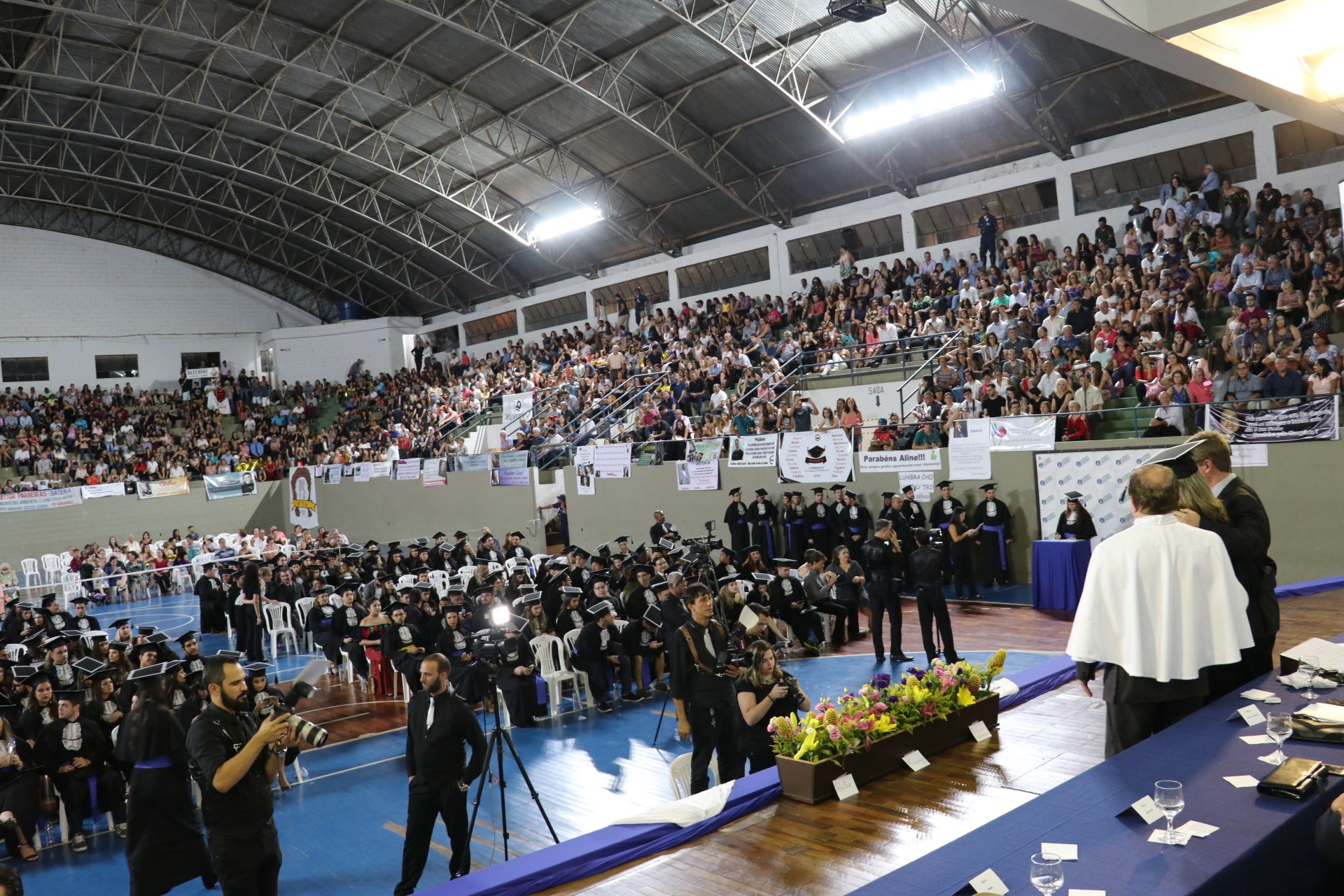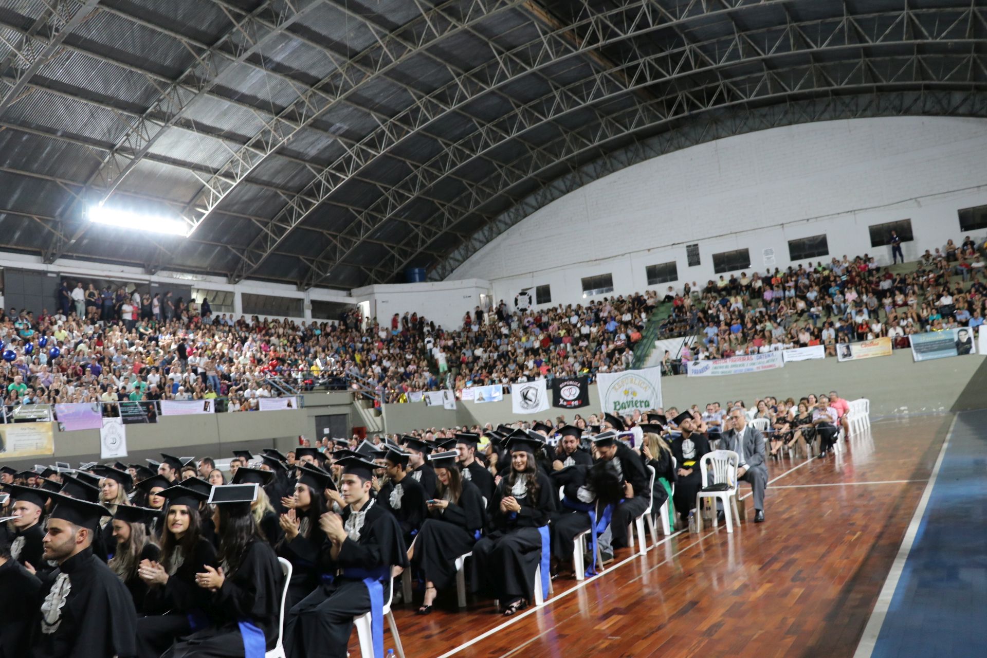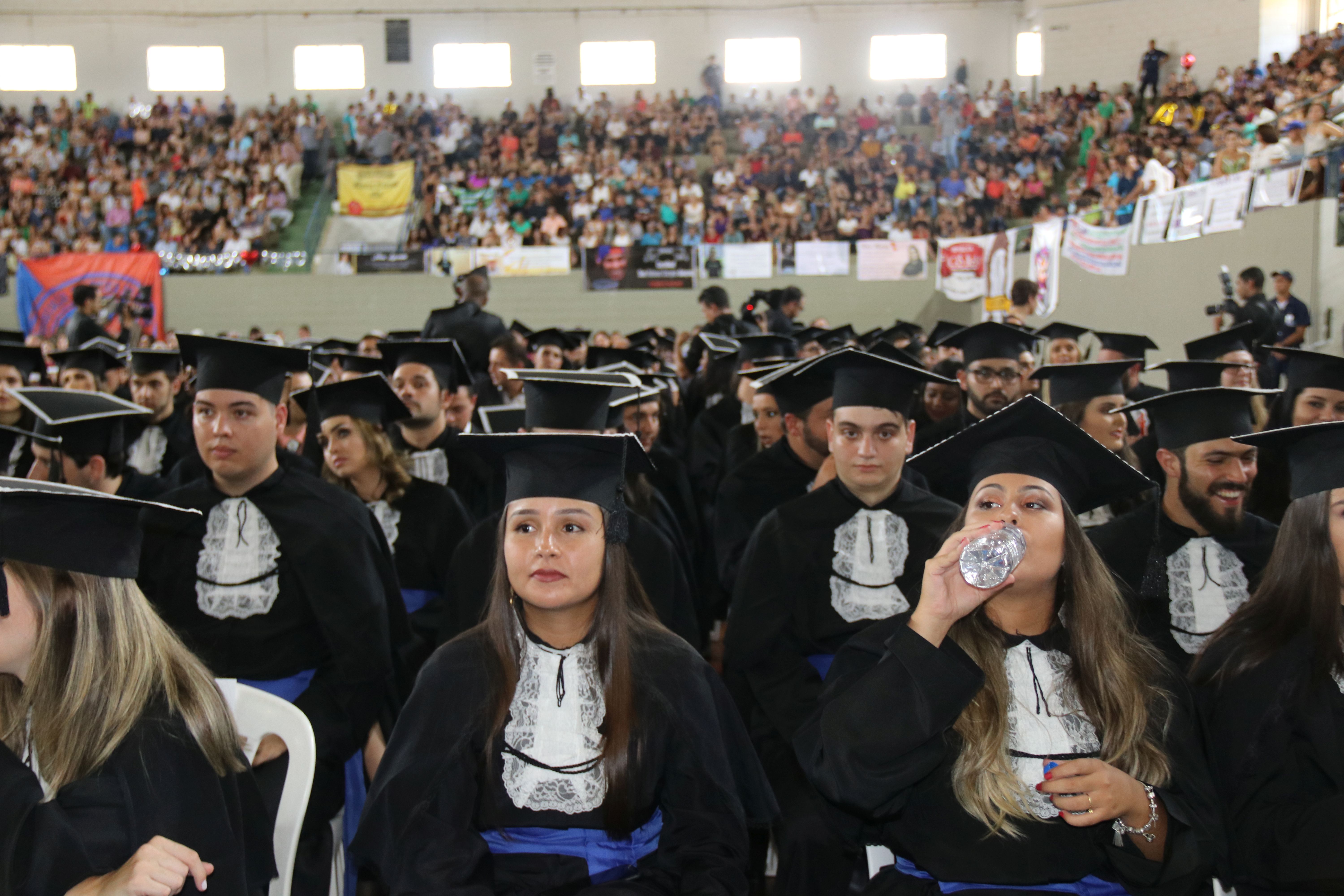 A sexta-feira (23/3) foi de celebração para a Universidade Federal de Lavras (UFLA) e para os 464 formandos que colaram grau durante sessão solene do Conselho Universitário (CUNI). A cerimônia foi realizada no ginásio poliesportivo da instituição, em dois horários – às 14h e às 18h. A outorga de grau garantiu o ingresso no mercado de trabalho de profissionais que concluíram sua formação em 24 cursos.
