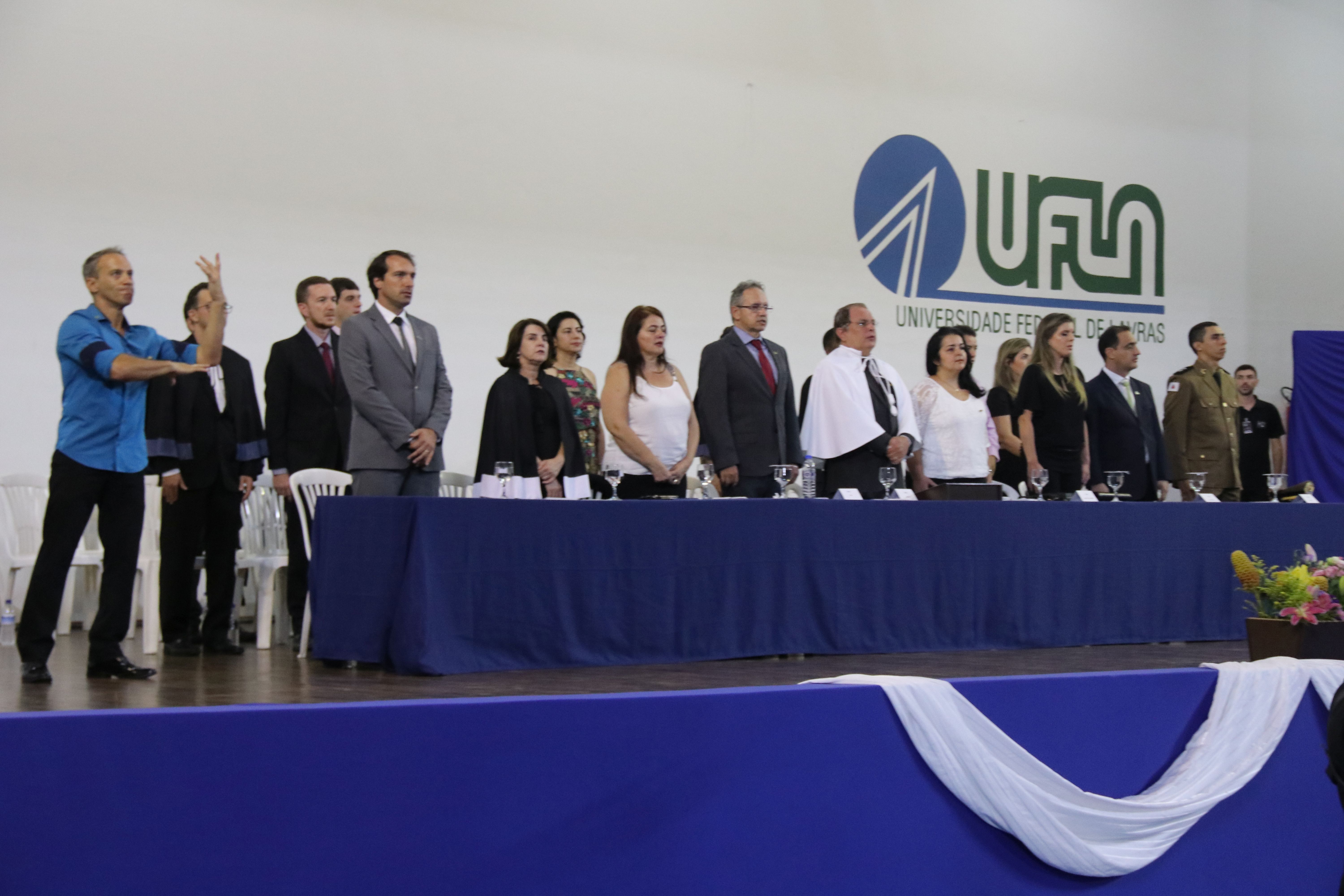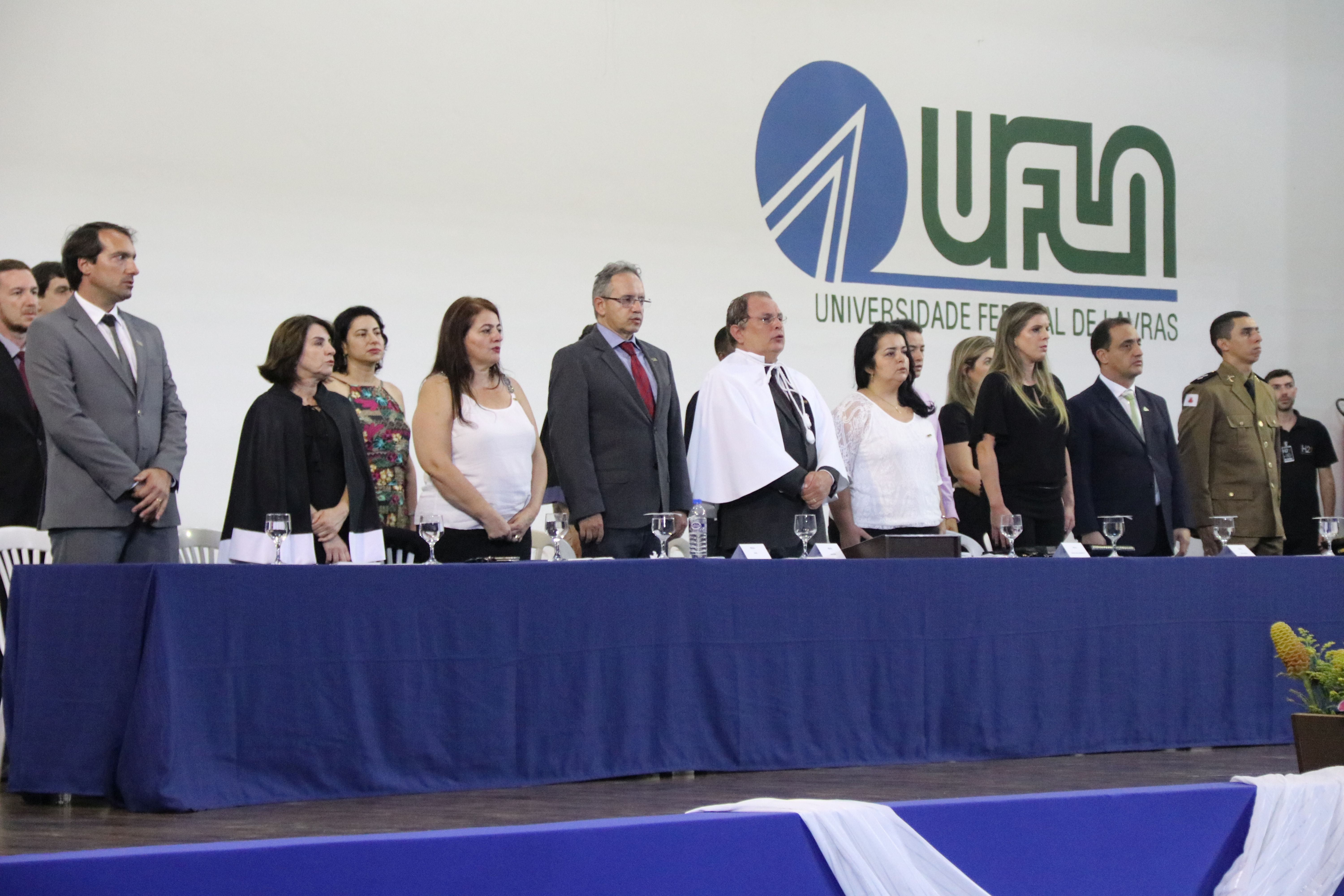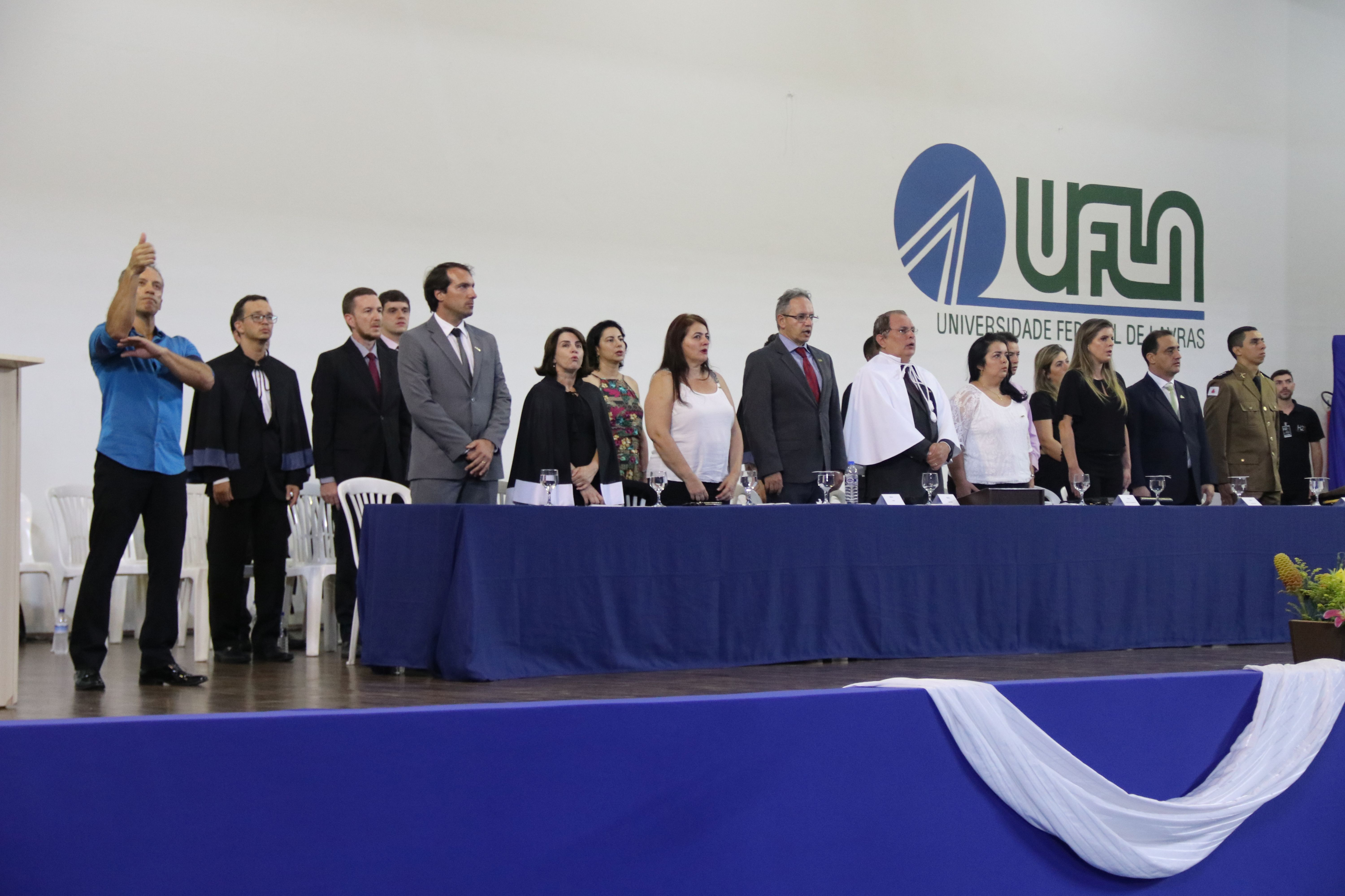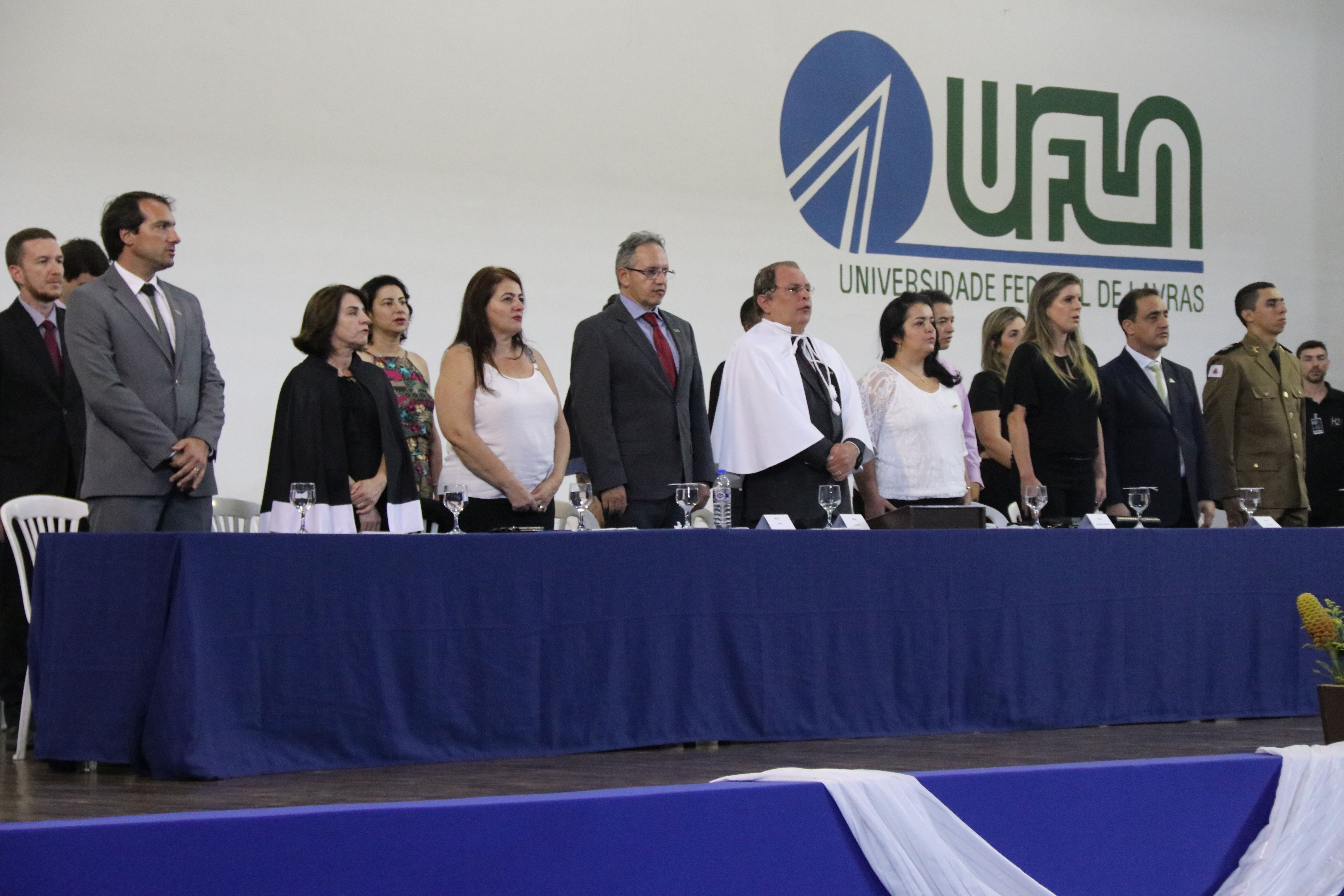 As solenidades foram presididas pelo reitor e presidente do CUNI, professor José Roberto Soares Scolforo. Após fazer referência à tradução das cerimônias na Língua Brasileira de Sinais (Libras), manifestou orgulho pelo fato de a UFLA trabalhar primando pela inclusão e pelo respeito às diversidades. Para os formandos, reforçou a importância do juramento que fizeram, especialmente pelo compromisso com a ética, a justiça e a defesa da liberdade e da paz. “Vocês tiveram a felicidade de se formar sob o investimento do povo brasileiro. Por isso devem se empenhar em cumprir esses compromissos carregados de valores que são hoje tão necessários à sociedade brasileira”. Scolforo também incentivou os novos profissionais a seguirem em frente: “vençam o medo deste momento posterior à conclusão do curso e lutem, busquem alcançar seus sonhos, sejam cidadãos de valor, pratiquem solidariedade e continuem a caminhada com garra e persistência, sempre respeitando as diferenças”.