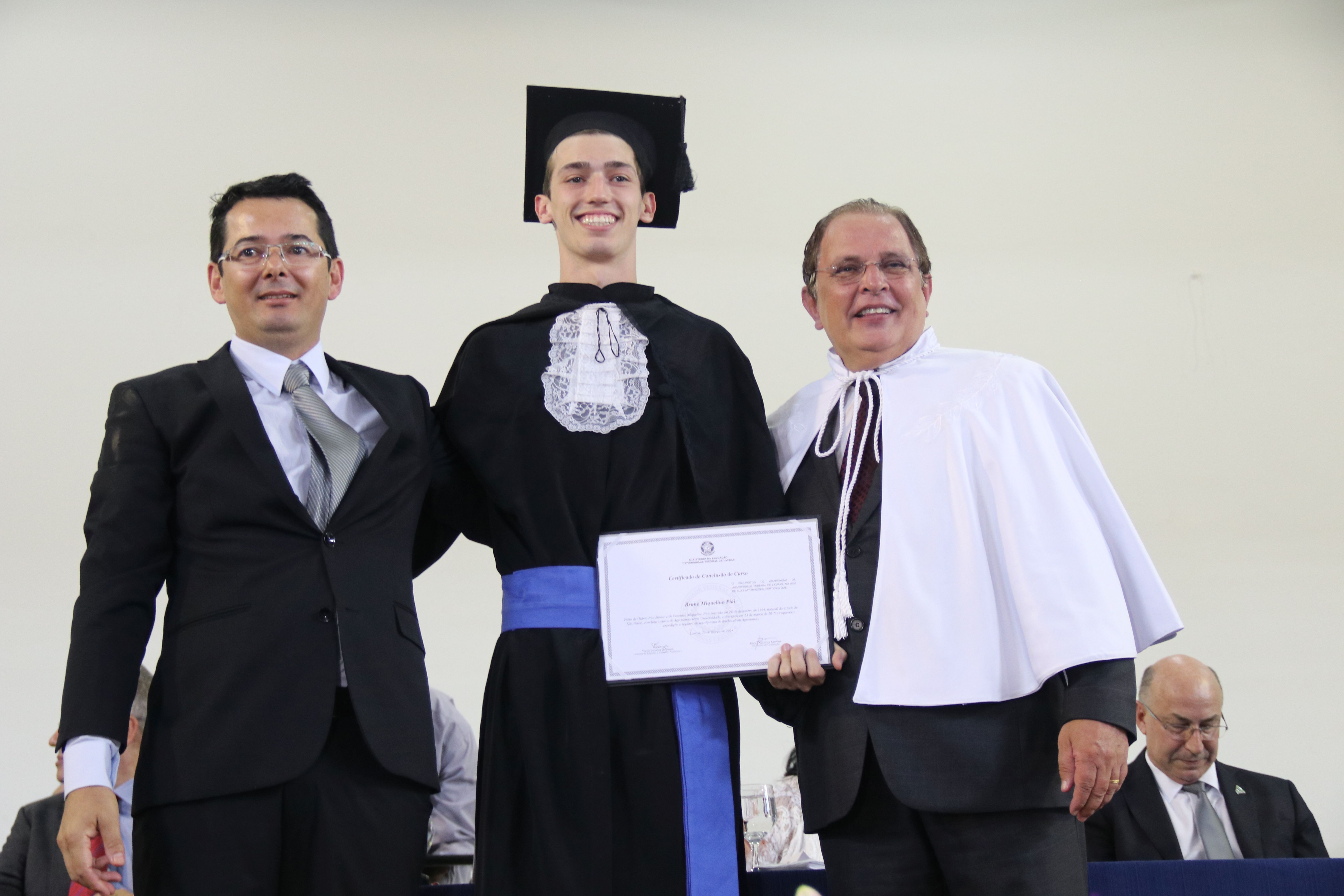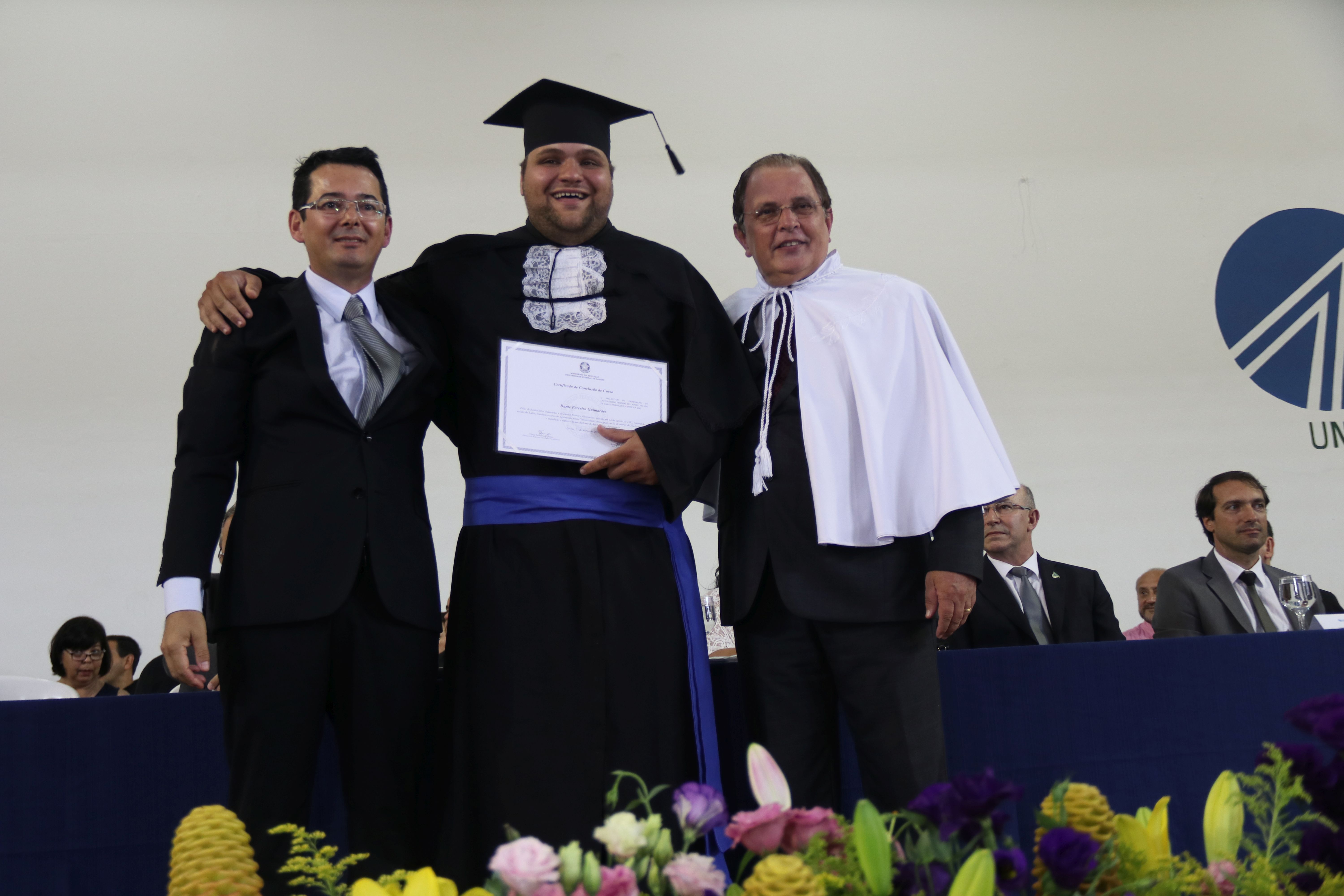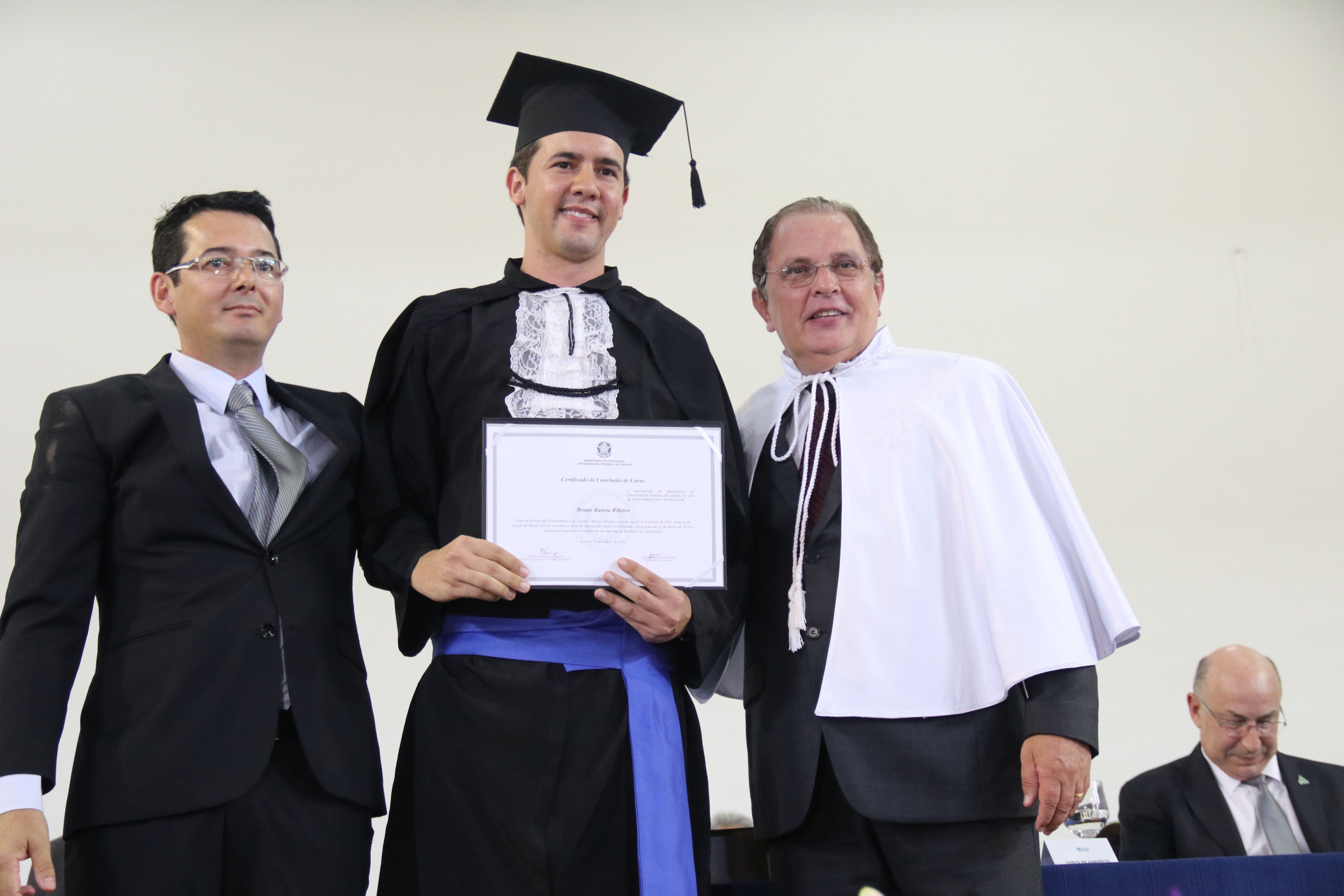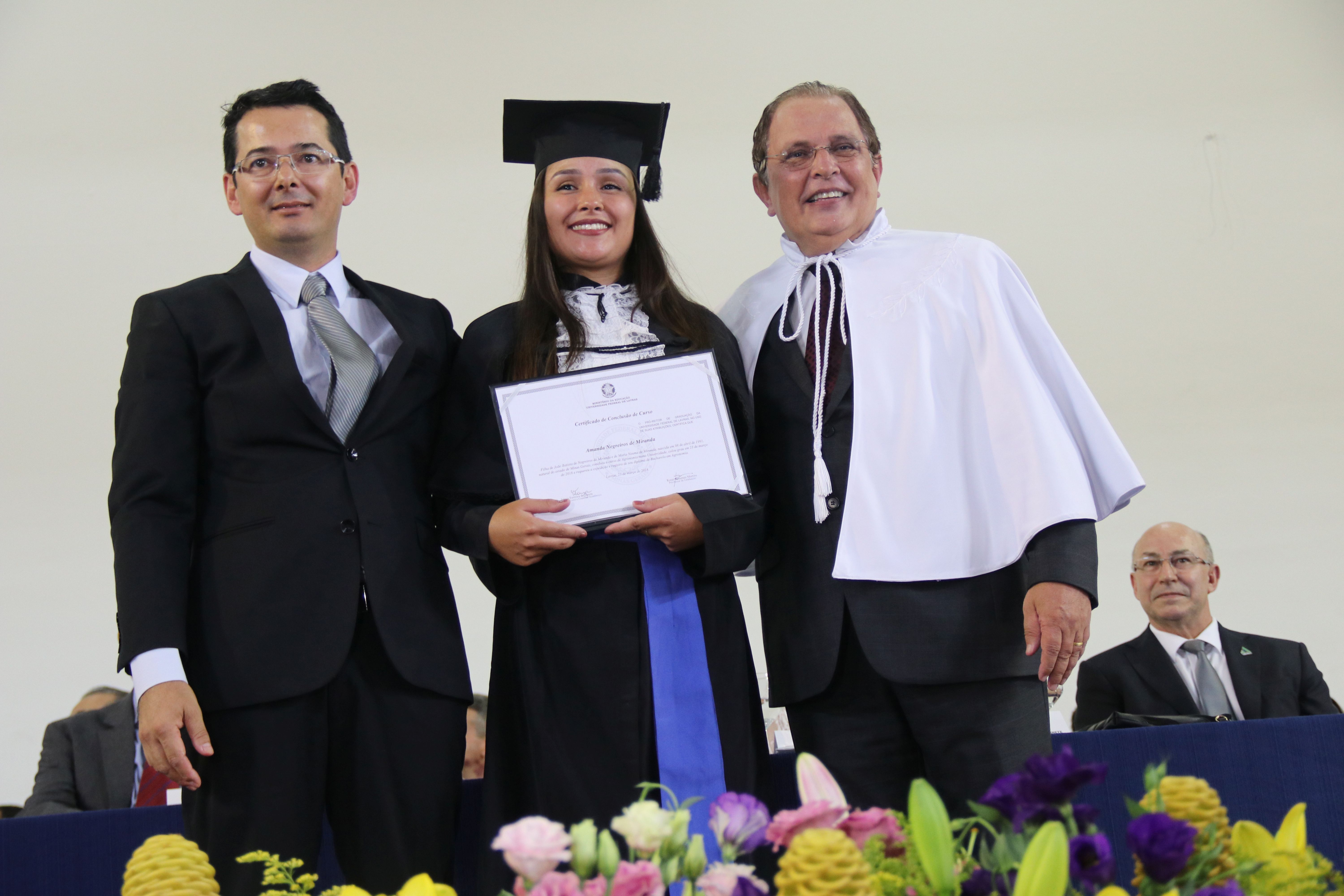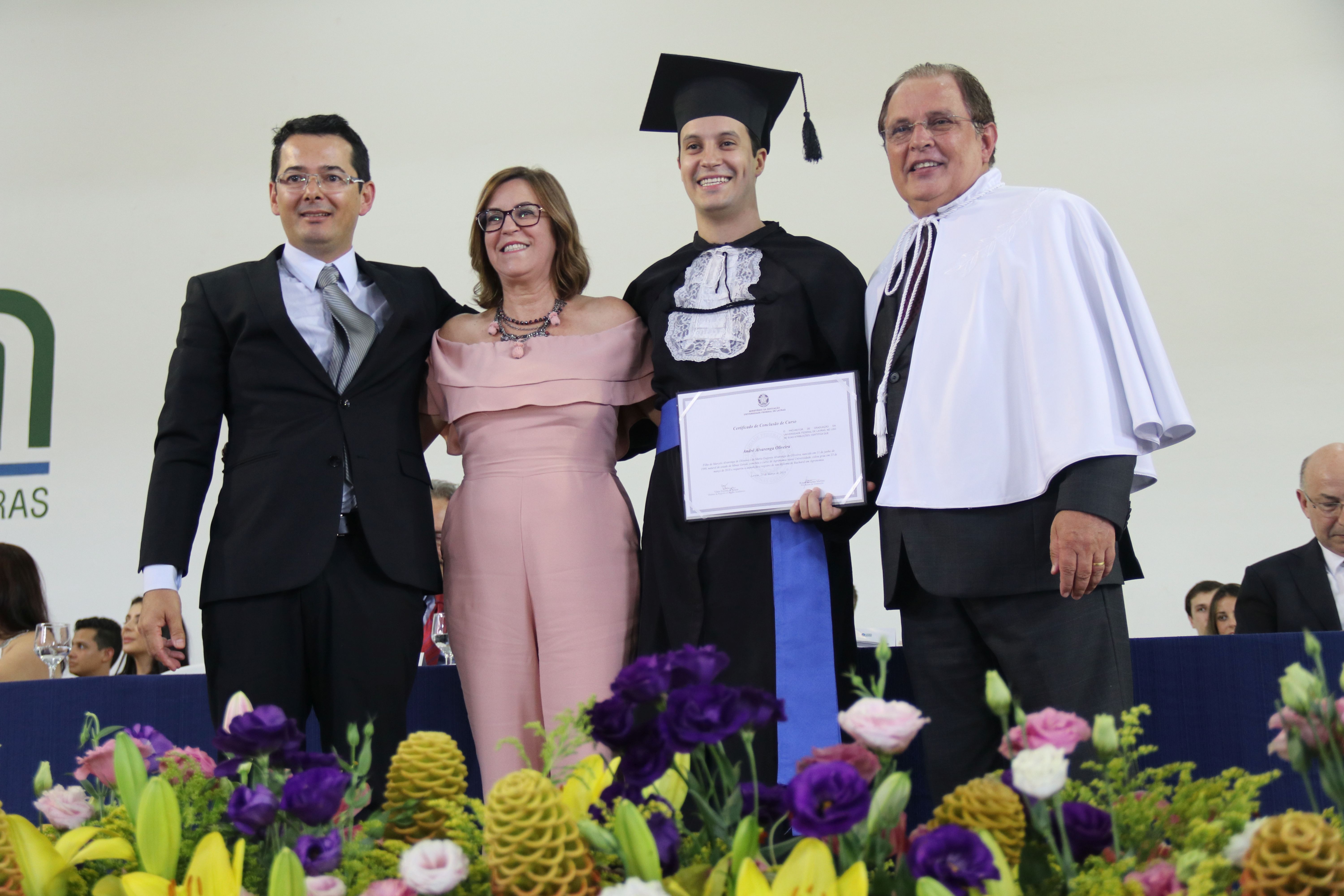 As solenidades foram presididas pelo reitor e presidente do CUNI, professor José Roberto Soares Scolforo. Após fazer referência à tradução das cerimônias na Língua Brasileira de Sinais (Libras), manifestou orgulho pelo fato de a UFLA trabalhar primando pela inclusão e pelo respeito às diversidades. Para os formandos, reforçou a importância do juramento que fizeram, especialmente pelo compromisso com a ética, a justiça e a defesa da liberdade e da paz. “Vocês tiveram a felicidade de se formar sob o investimento do povo brasileiro. Por isso devem se empenhar em cumprir esses compromissos carregados de valores que são hoje tão necessários à sociedade brasileira”. Scolforo também incentivou os novos profissionais a seguirem em frente: “vençam o medo deste momento posterior à conclusão do curso e lutem, busquem alcançar seus sonhos, sejam cidadãos de valor, pratiquem solidariedade e continuem a caminhada com garra e persistência, sempre respeitando as diferenças”.