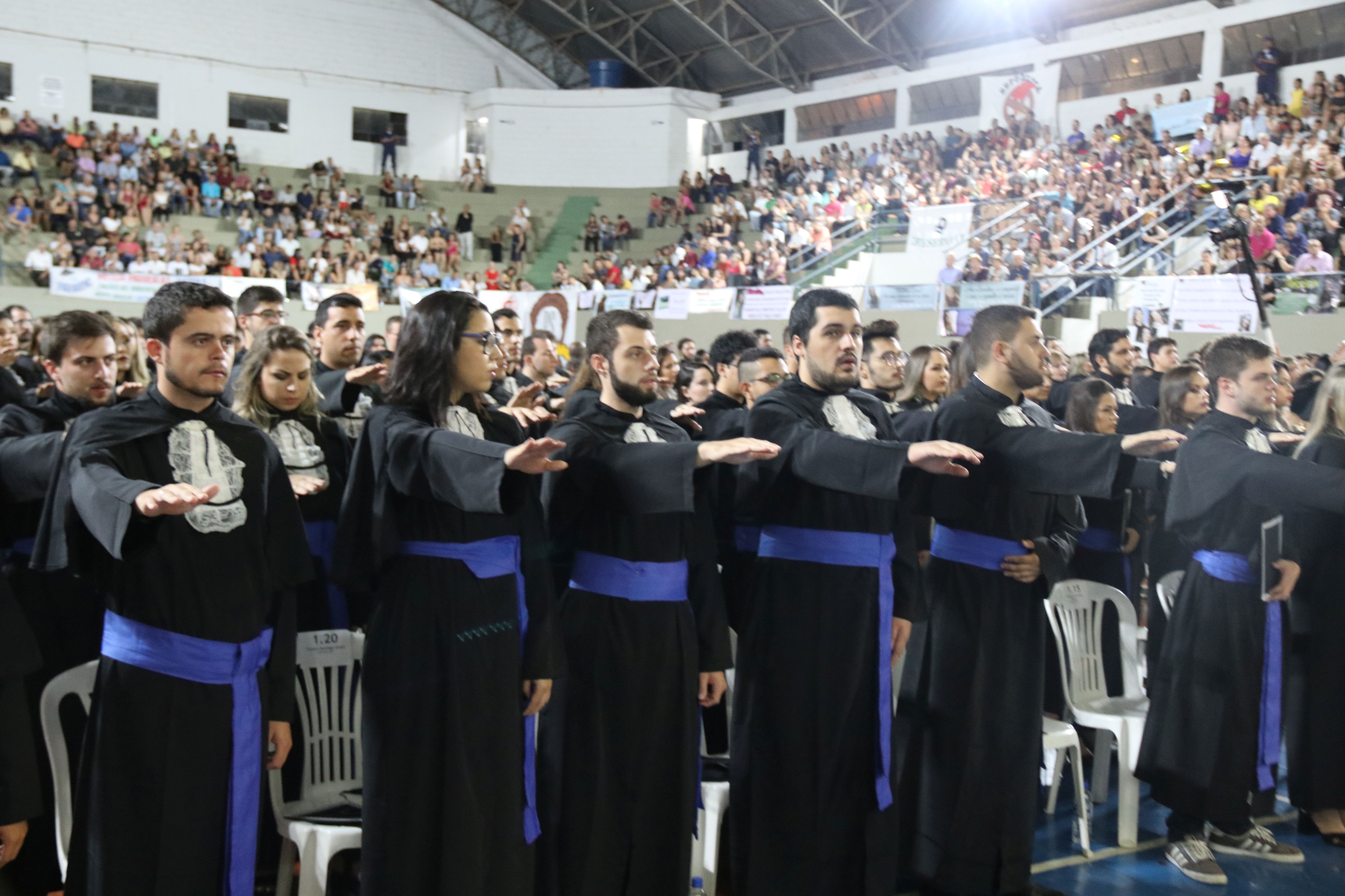 A sexta-feira (23/3) foi de celebração para a Universidade Federal de Lavras (UFLA) e para os 464 formandos que colaram grau durante sessão solene do Conselho Universitário (CUNI). A cerimônia foi realizada no ginásio poliesportivo da instituição, em dois horários – às 14h e às 18h. A outorga de grau garantiu o ingresso no mercado de trabalho de profissionais que concluíram sua formação em 24 cursos.