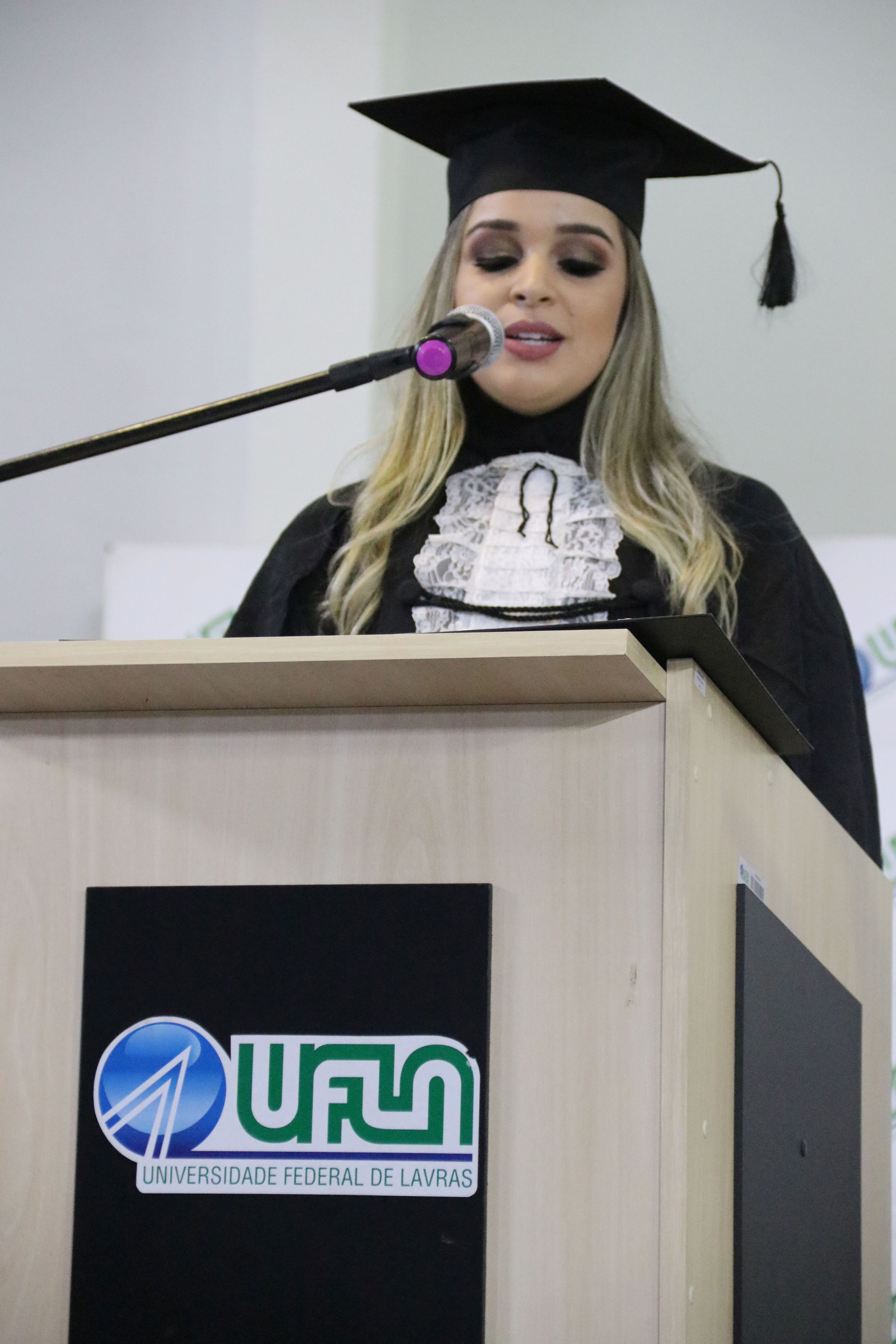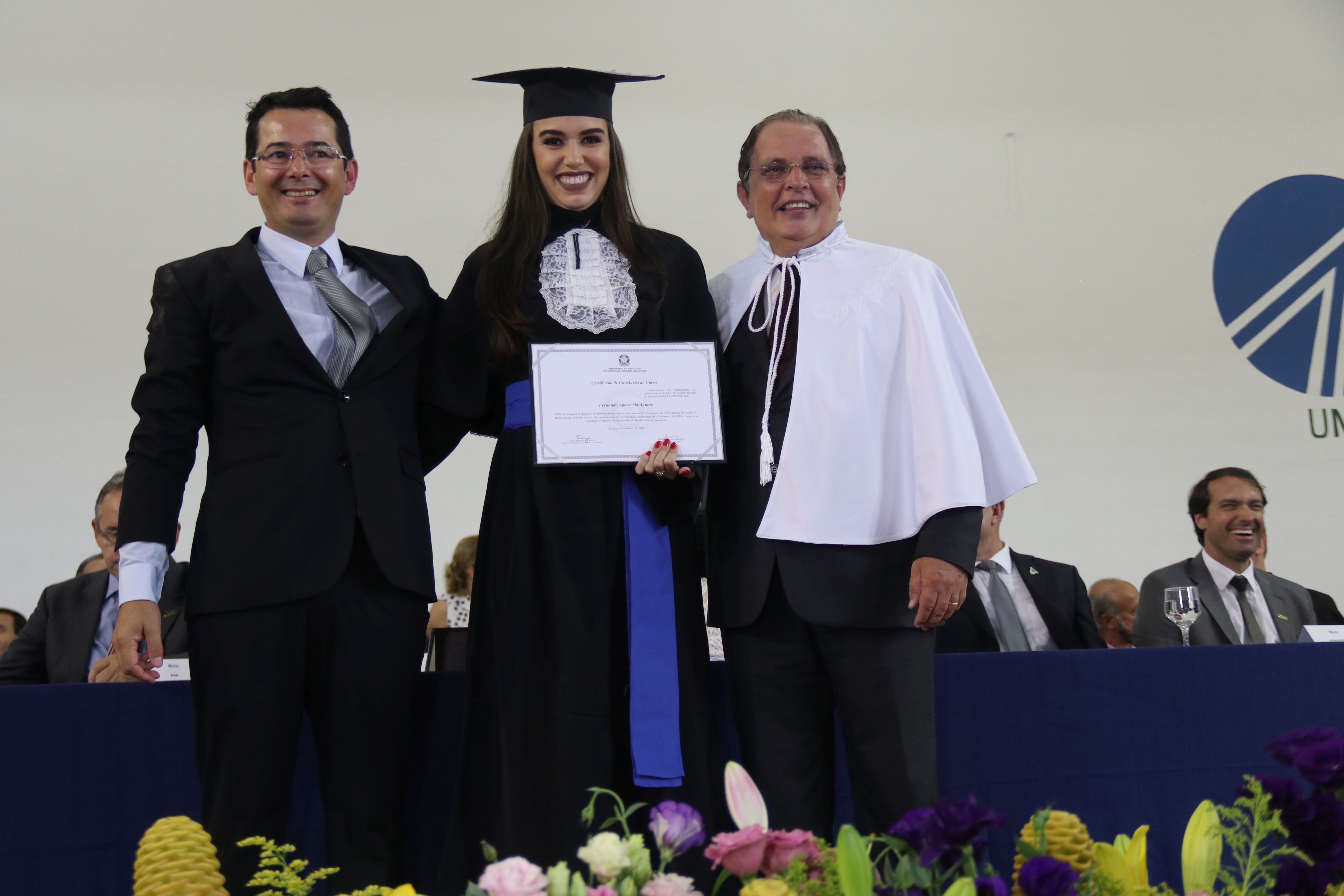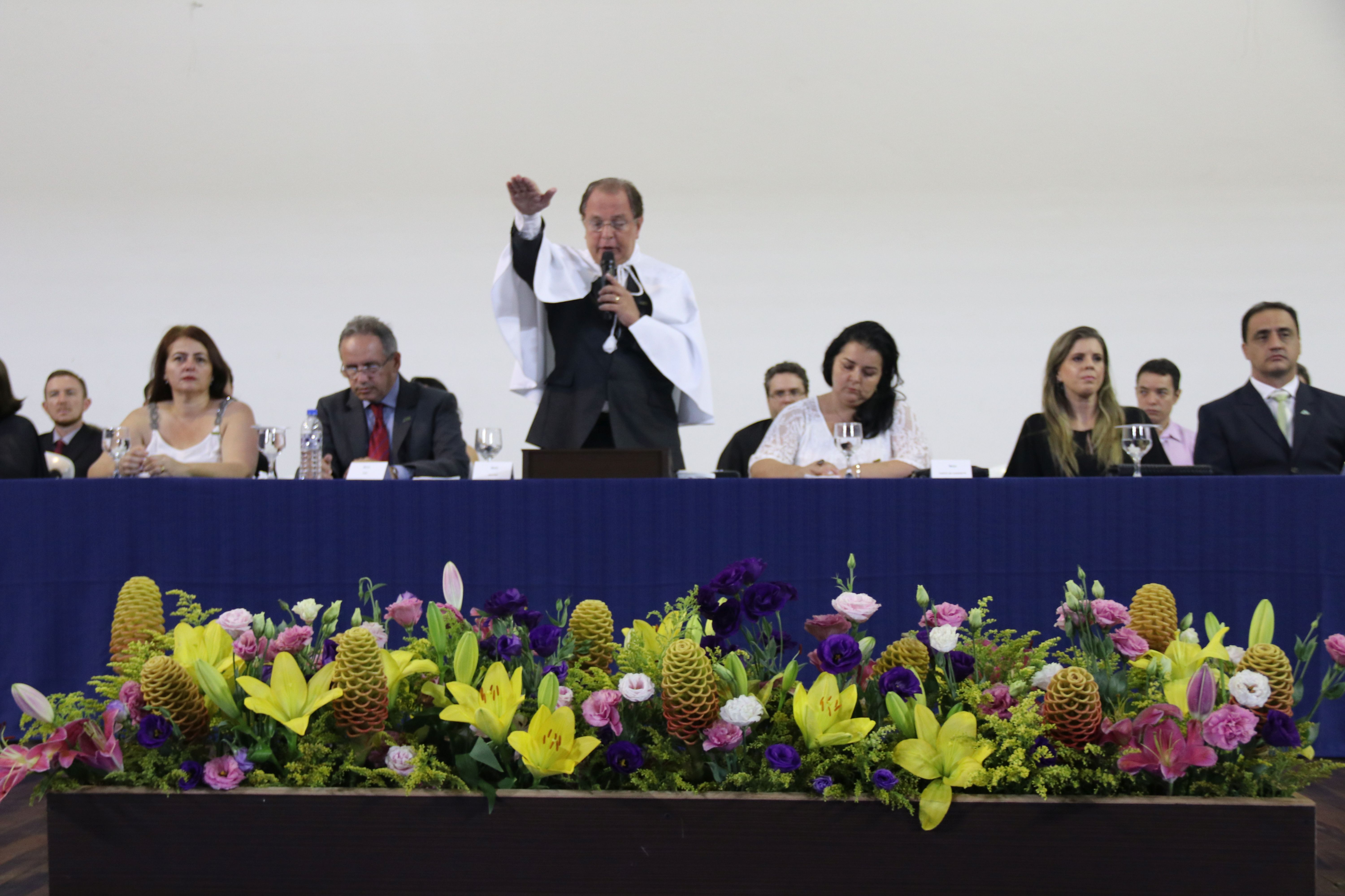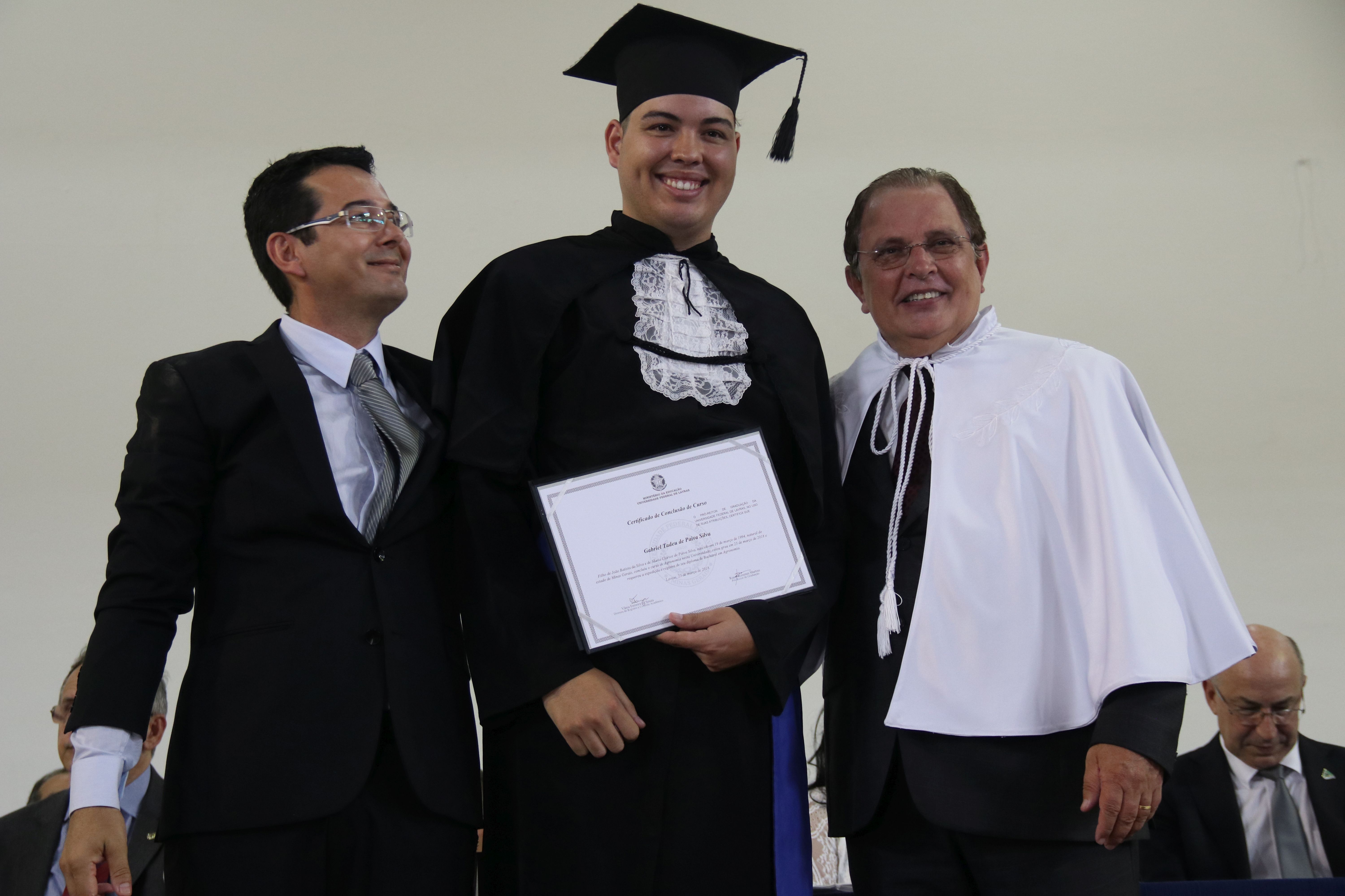 As solenidades foram presididas pelo reitor e presidente do CUNI, professor José Roberto Soares Scolforo. Após fazer referência à tradução das cerimônias na Língua Brasileira de Sinais (Libras), manifestou orgulho pelo fato de a UFLA trabalhar primando pela inclusão e pelo respeito às diversidades. Para os formandos, reforçou a importância do juramento que fizeram, especialmente pelo compromisso com a ética, a justiça e a defesa da liberdade e da paz. “Vocês tiveram a felicidade de se formar sob o investimento do povo brasileiro. Por isso devem se empenhar em cumprir esses compromissos carregados de valores que são hoje tão necessários à sociedade brasileira”. Scolforo também incentivou os novos profissionais a seguirem em frente: “vençam o medo deste momento posterior à conclusão do curso e lutem, busquem alcançar seus sonhos, sejam cidadãos de valor, pratiquem solidariedade e continuem a caminhada com garra e persistência, sempre respeitando as diferenças”.