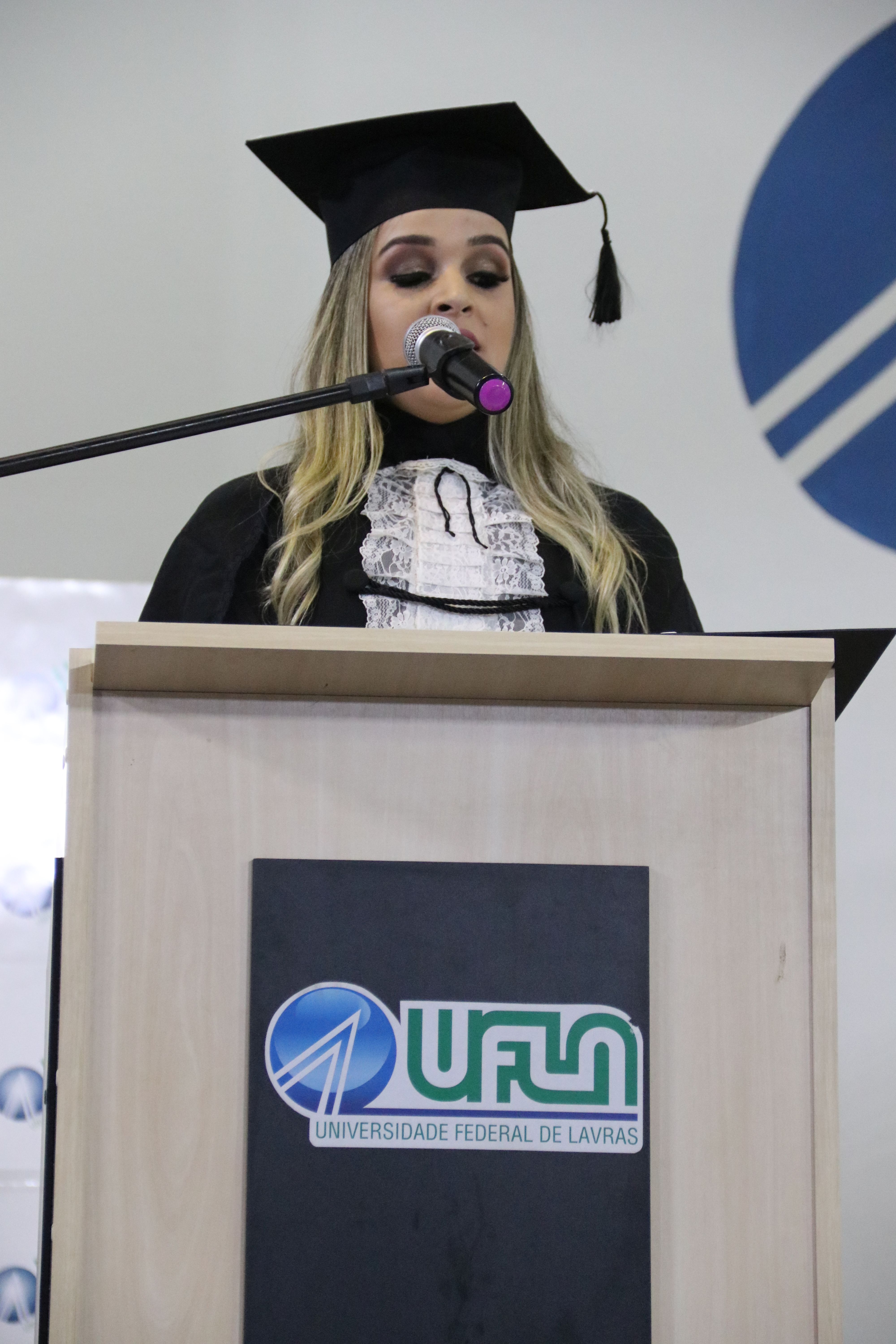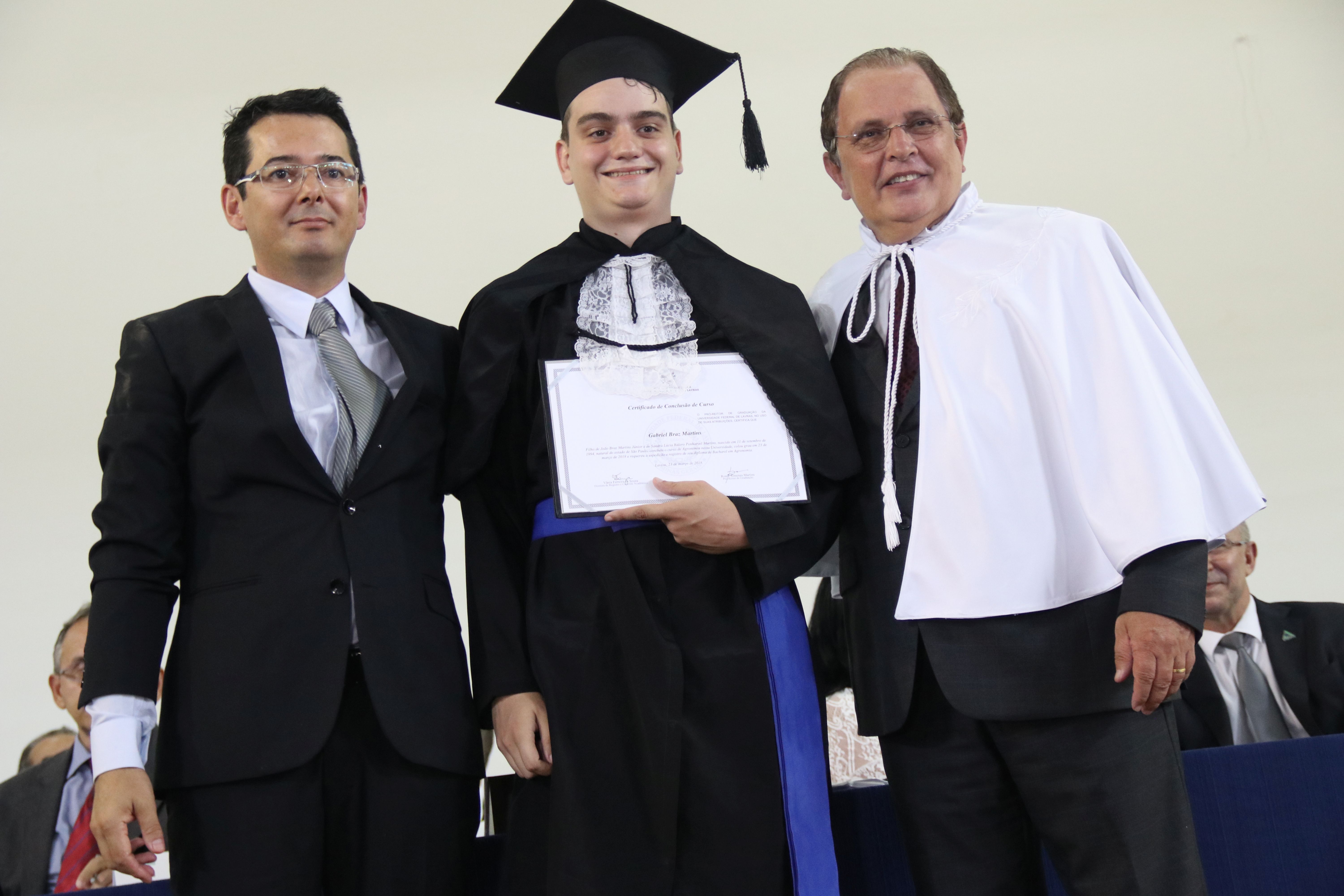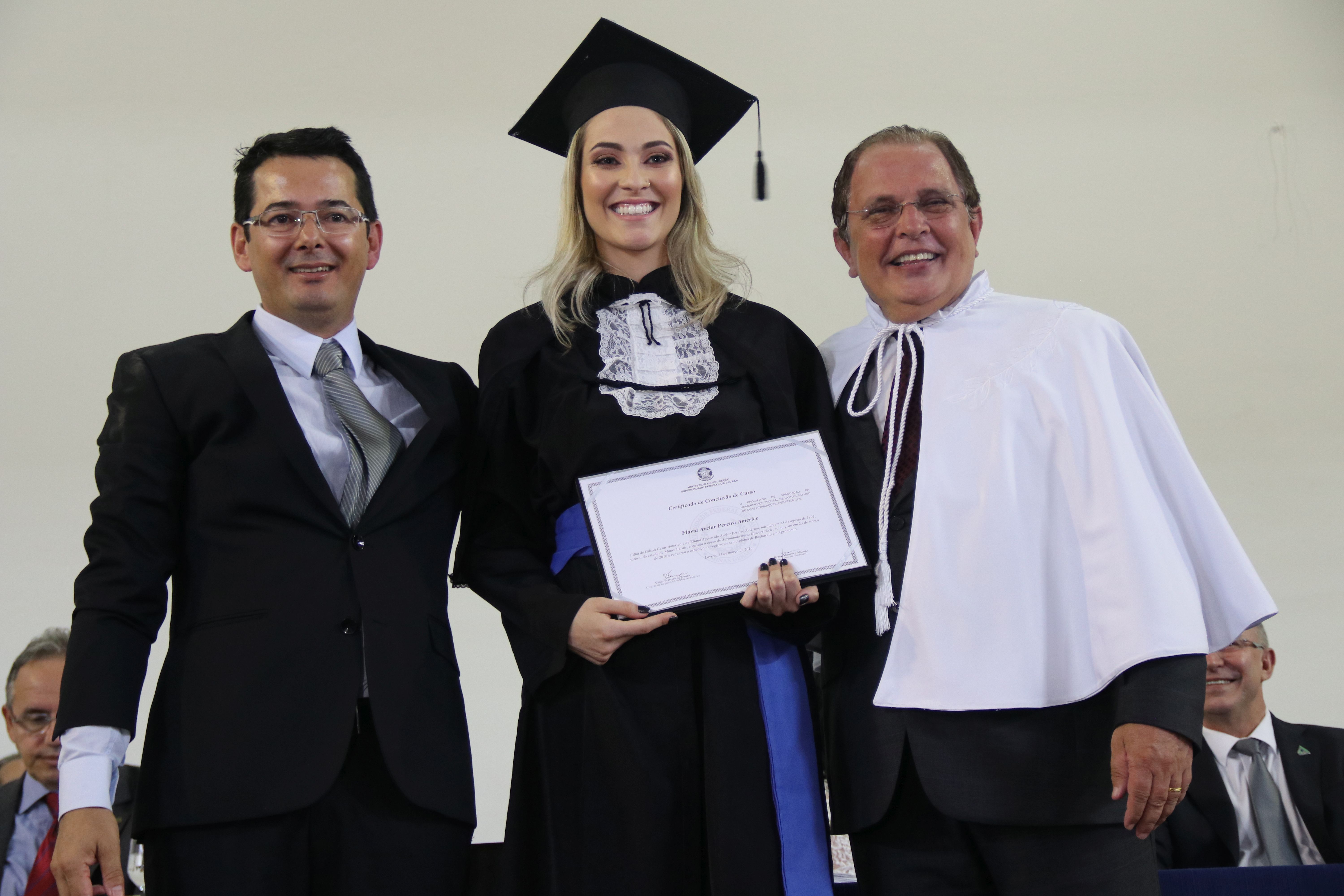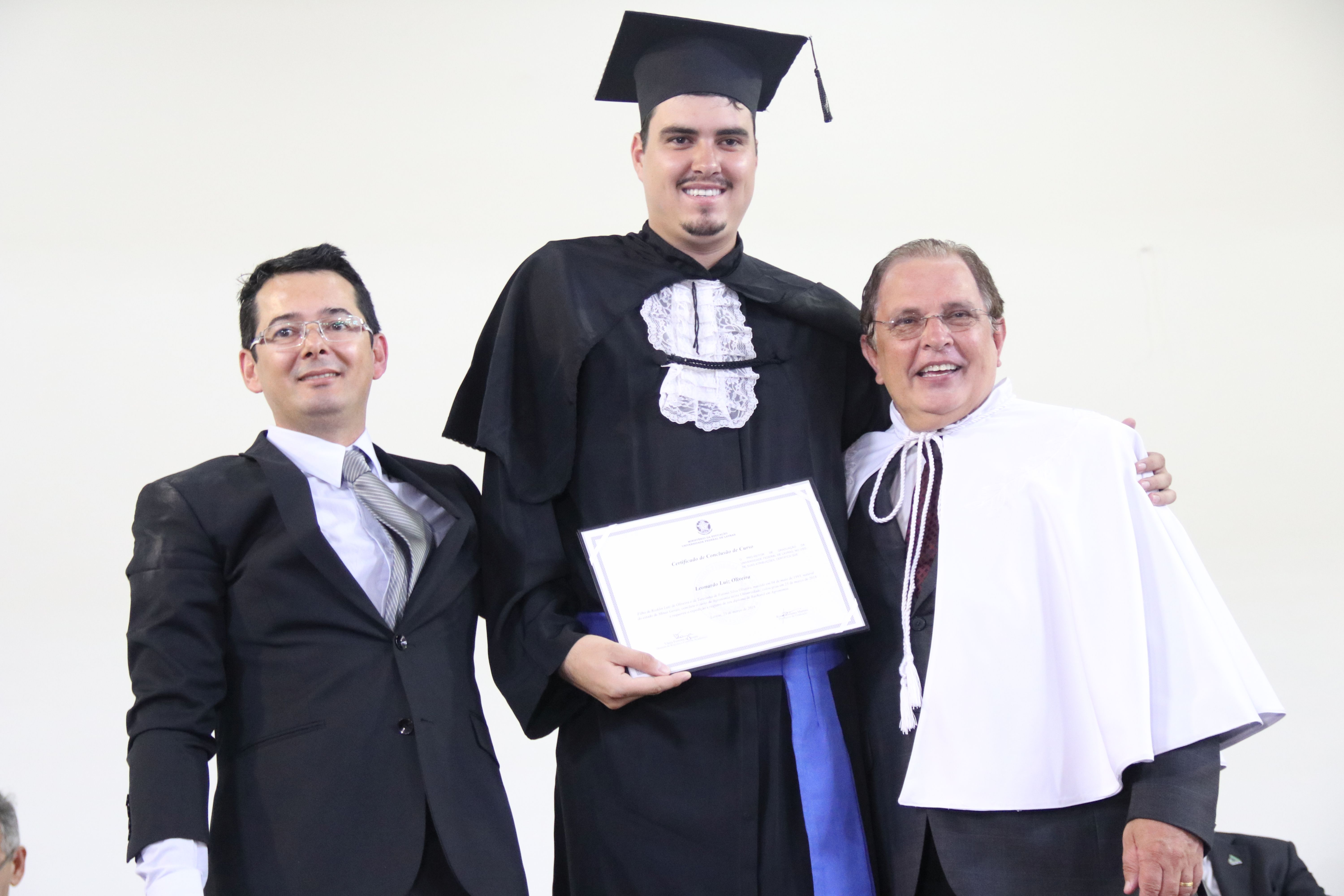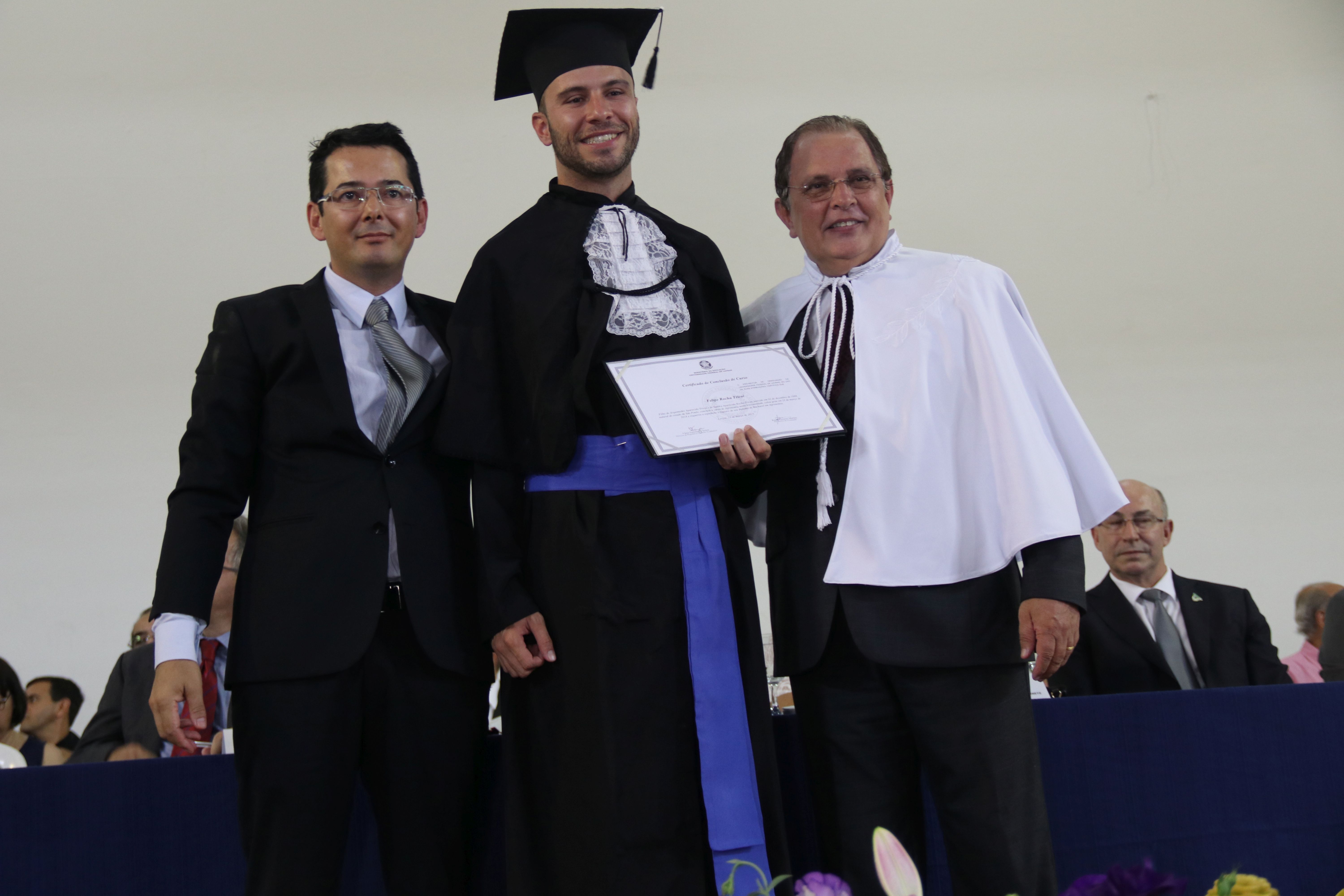 As solenidades foram presididas pelo reitor e presidente do CUNI, professor José Roberto Soares Scolforo. Após fazer referência à tradução das cerimônias na Língua Brasileira de Sinais (Libras), manifestou orgulho pelo fato de a UFLA trabalhar primando pela inclusão e pelo respeito às diversidades. Para os formandos, reforçou a importância do juramento que fizeram, especialmente pelo compromisso com a ética, a justiça e a defesa da liberdade e da paz. “Vocês tiveram a felicidade de se formar sob o investimento do povo brasileiro. Por isso devem se empenhar em cumprir esses compromissos carregados de valores que são hoje tão necessários à sociedade brasileira”. Scolforo também incentivou os novos profissionais a seguirem em frente: “vençam o medo deste momento posterior à conclusão do curso e lutem, busquem alcançar seus sonhos, sejam cidadãos de valor, pratiquem solidariedade e continuem a caminhada com garra e persistência, sempre respeitando as diferenças”.