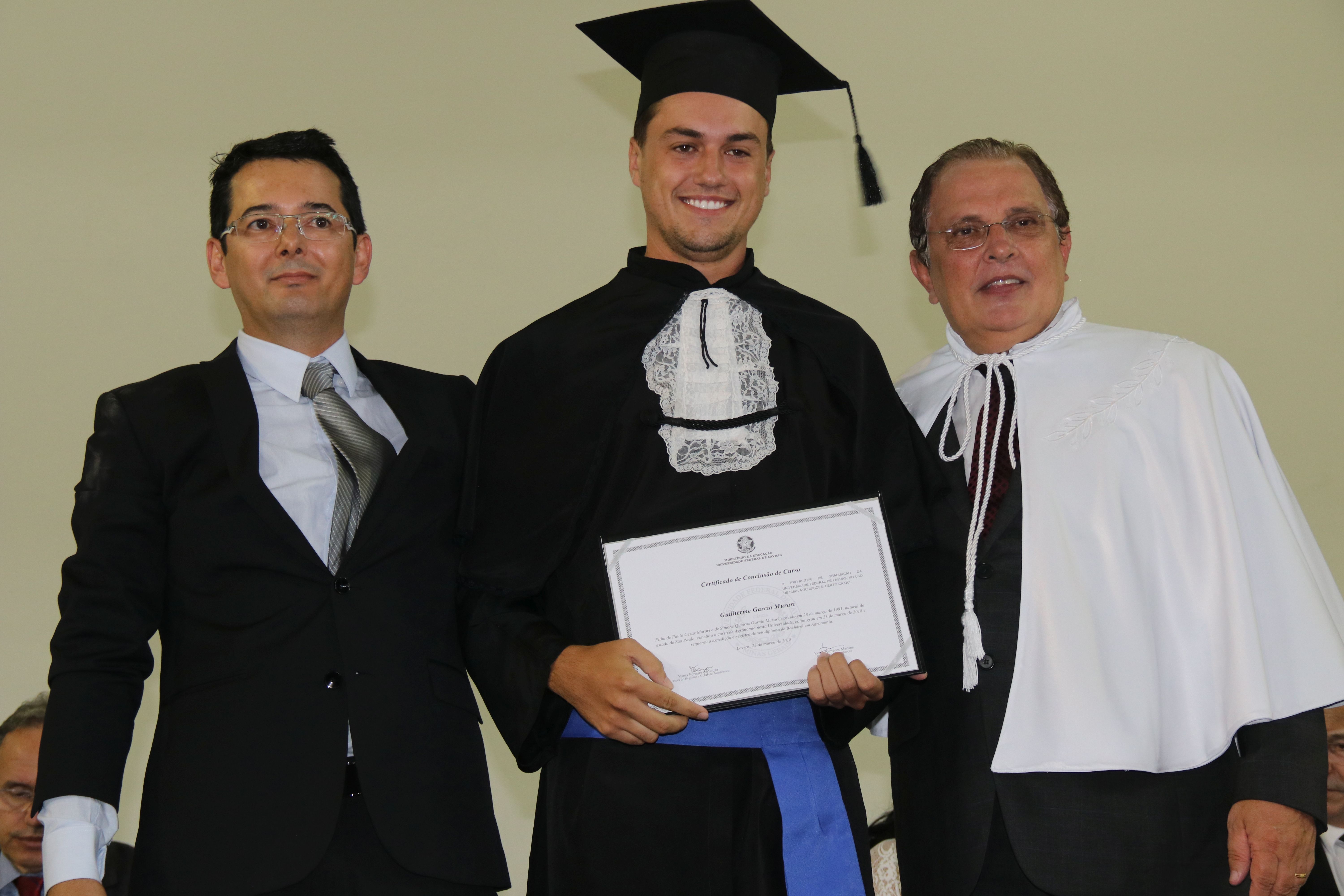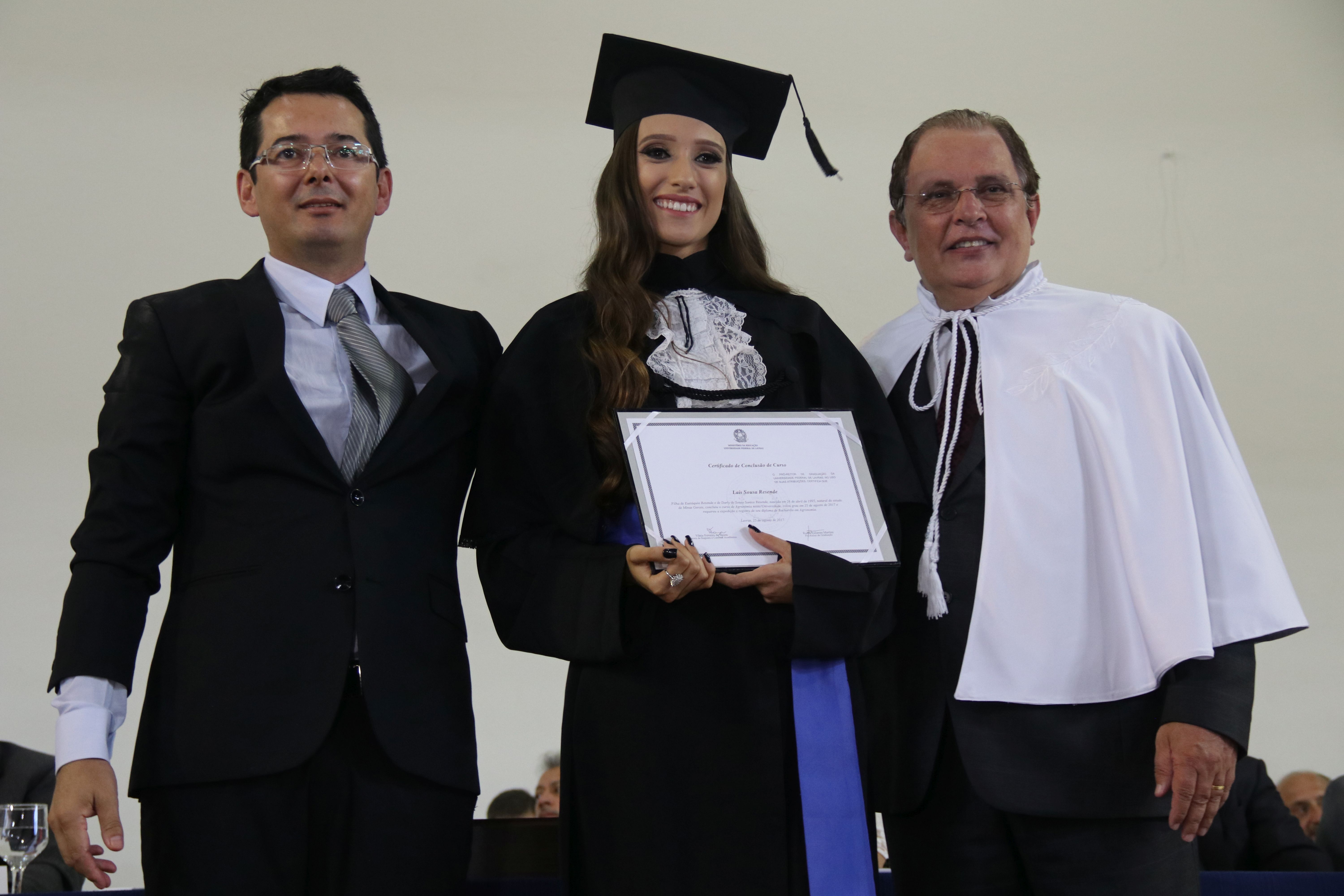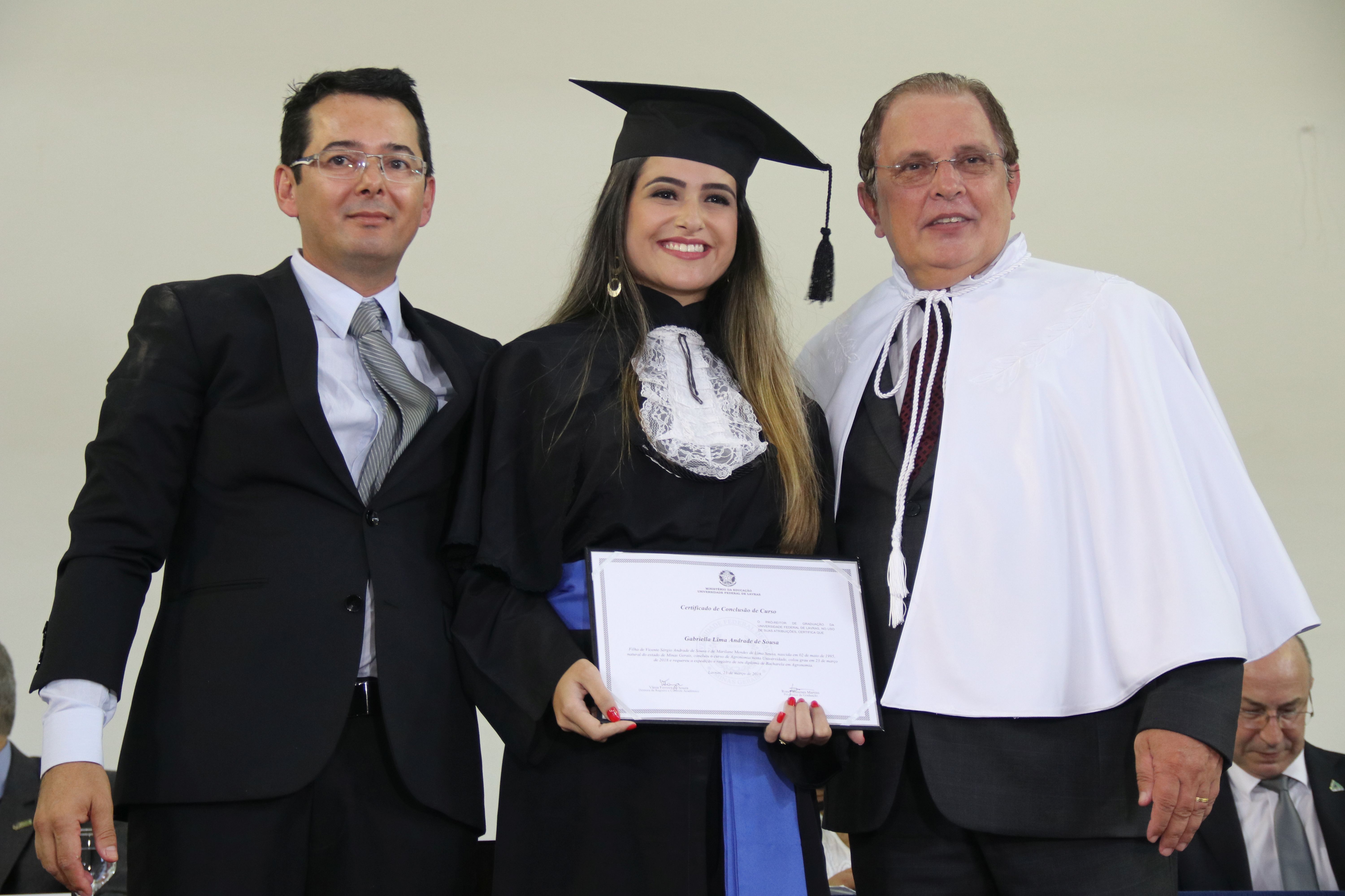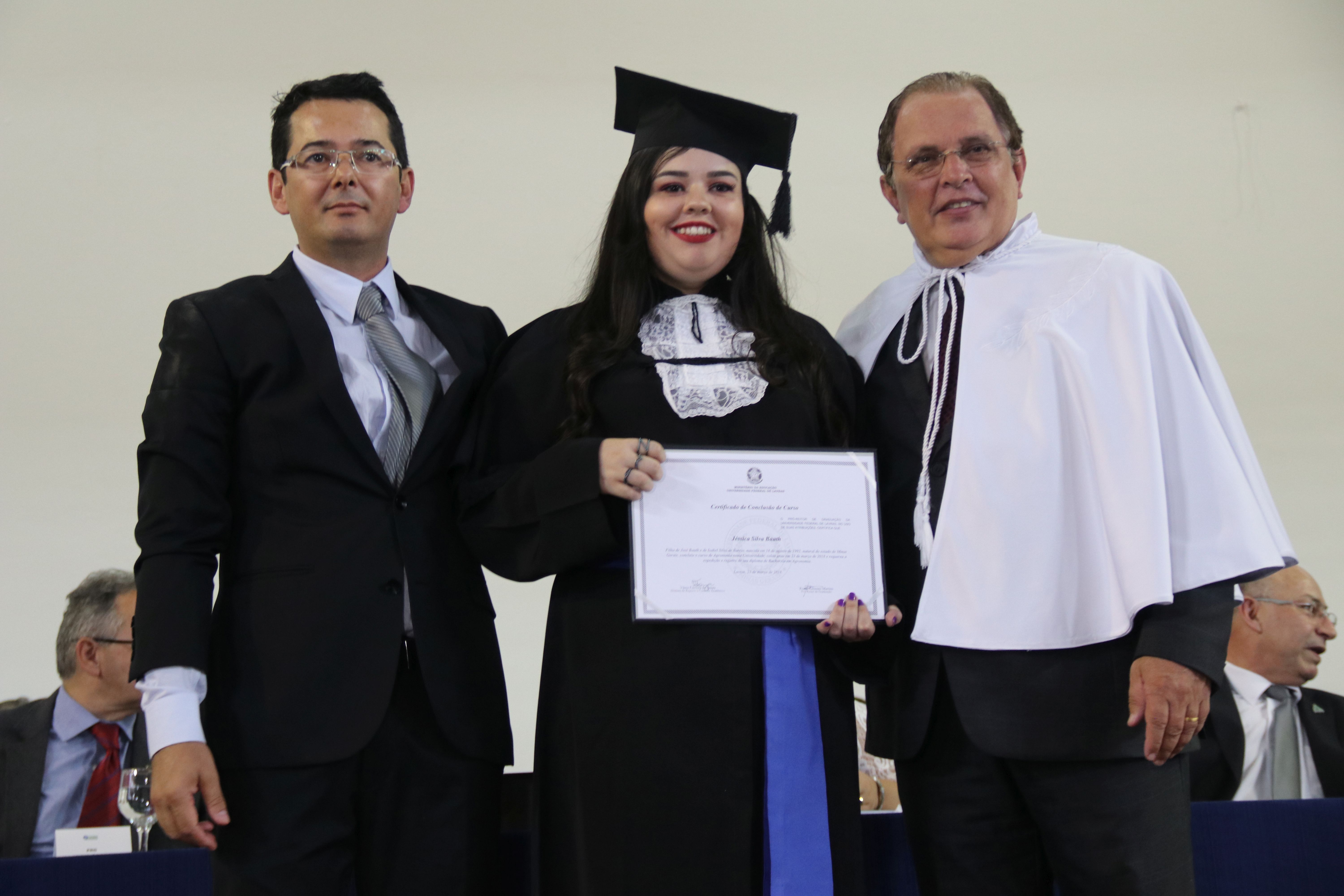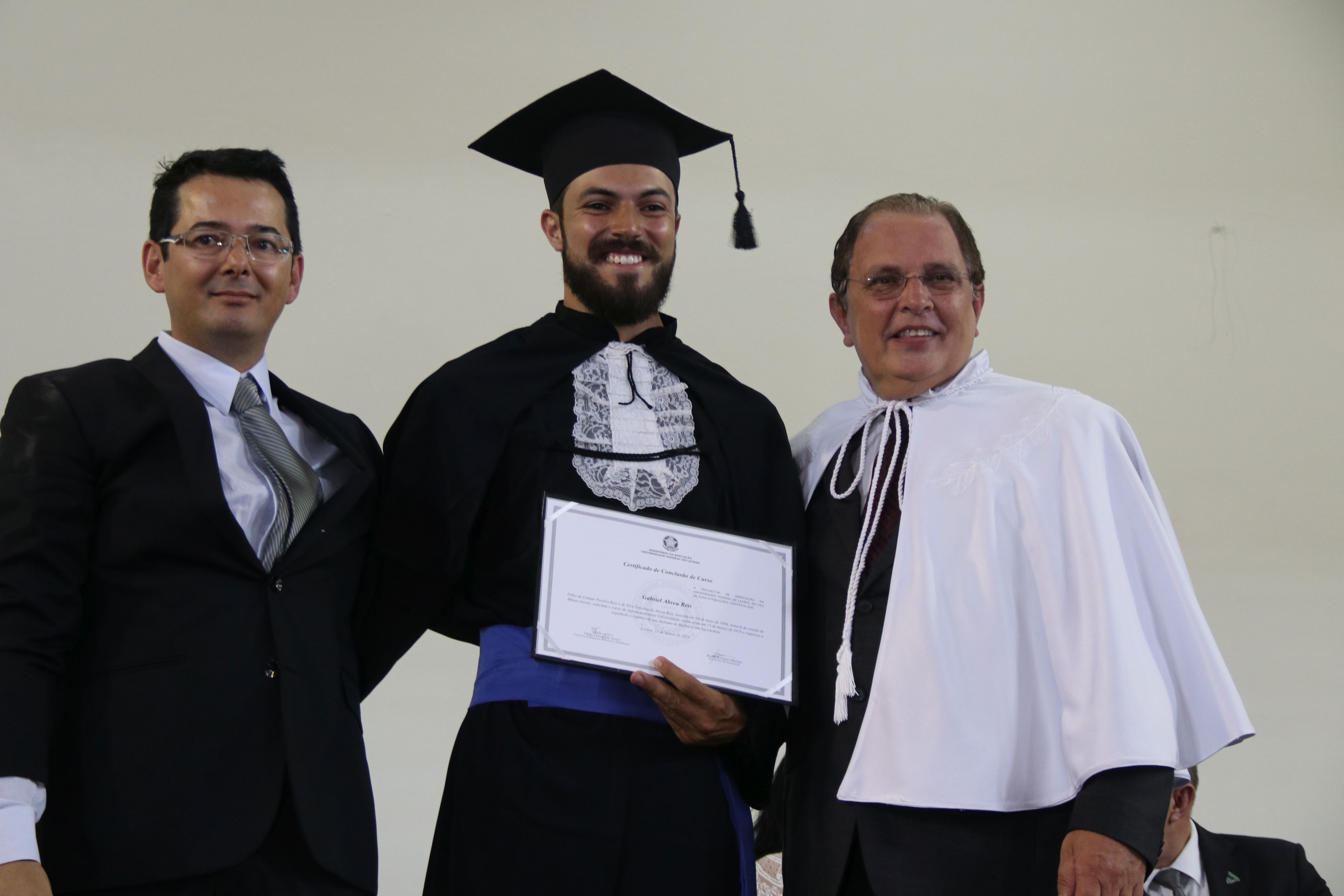 As solenidades foram presididas pelo reitor e presidente do CUNI, professor José Roberto Soares Scolforo. Após fazer referência à tradução das cerimônias na Língua Brasileira de Sinais (Libras), manifestou orgulho pelo fato de a UFLA trabalhar primando pela inclusão e pelo respeito às diversidades. Para os formandos, reforçou a importância do juramento que fizeram, especialmente pelo compromisso com a ética, a justiça e a defesa da liberdade e da paz. “Vocês tiveram a felicidade de se formar sob o investimento do povo brasileiro. Por isso devem se empenhar em cumprir esses compromissos carregados de valores que são hoje tão necessários à sociedade brasileira”. Scolforo também incentivou os novos profissionais a seguirem em frente: “vençam o medo deste momento posterior à conclusão do curso e lutem, busquem alcançar seus sonhos, sejam cidadãos de valor, pratiquem solidariedade e continuem a caminhada com garra e persistência, sempre respeitando as diferenças”.