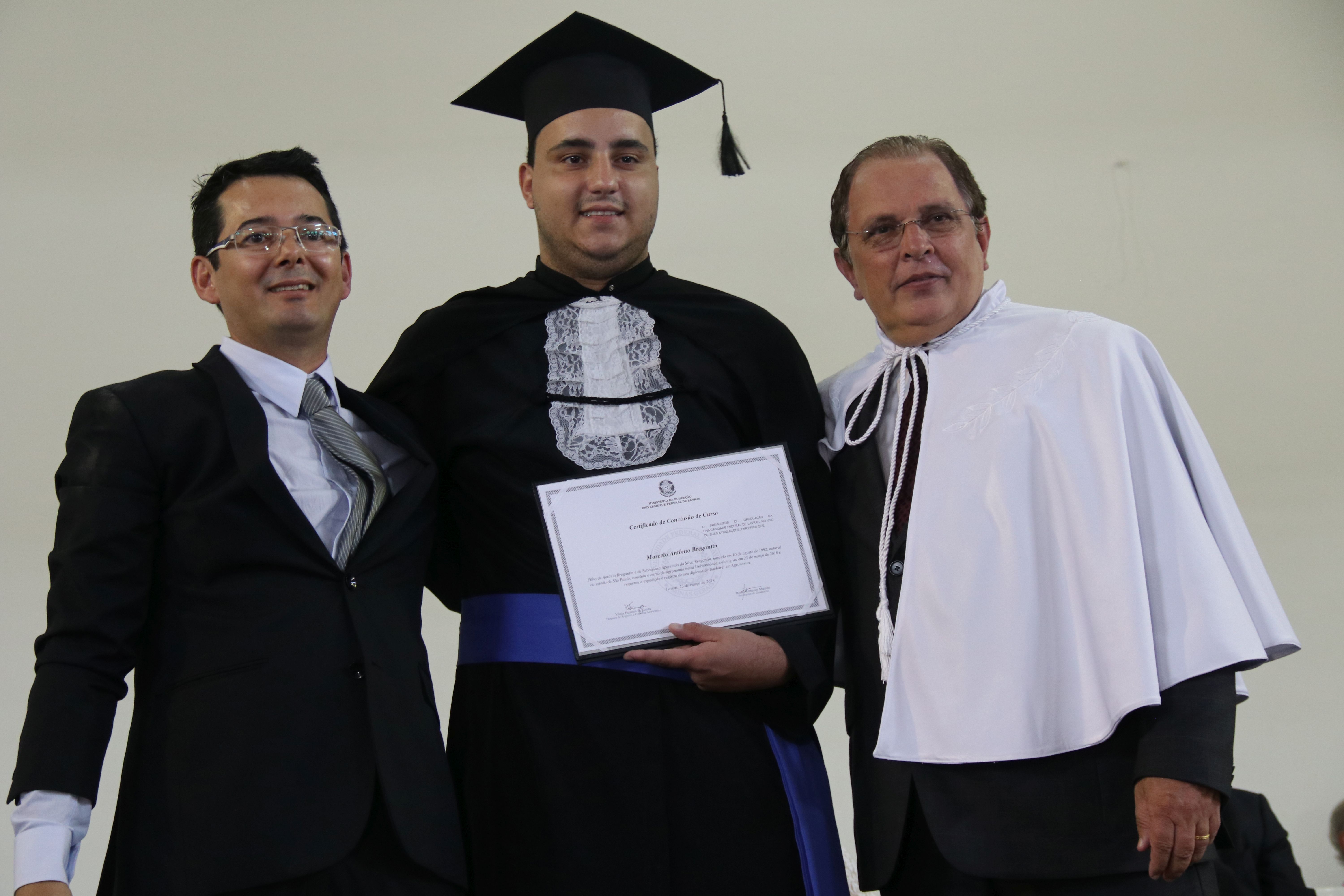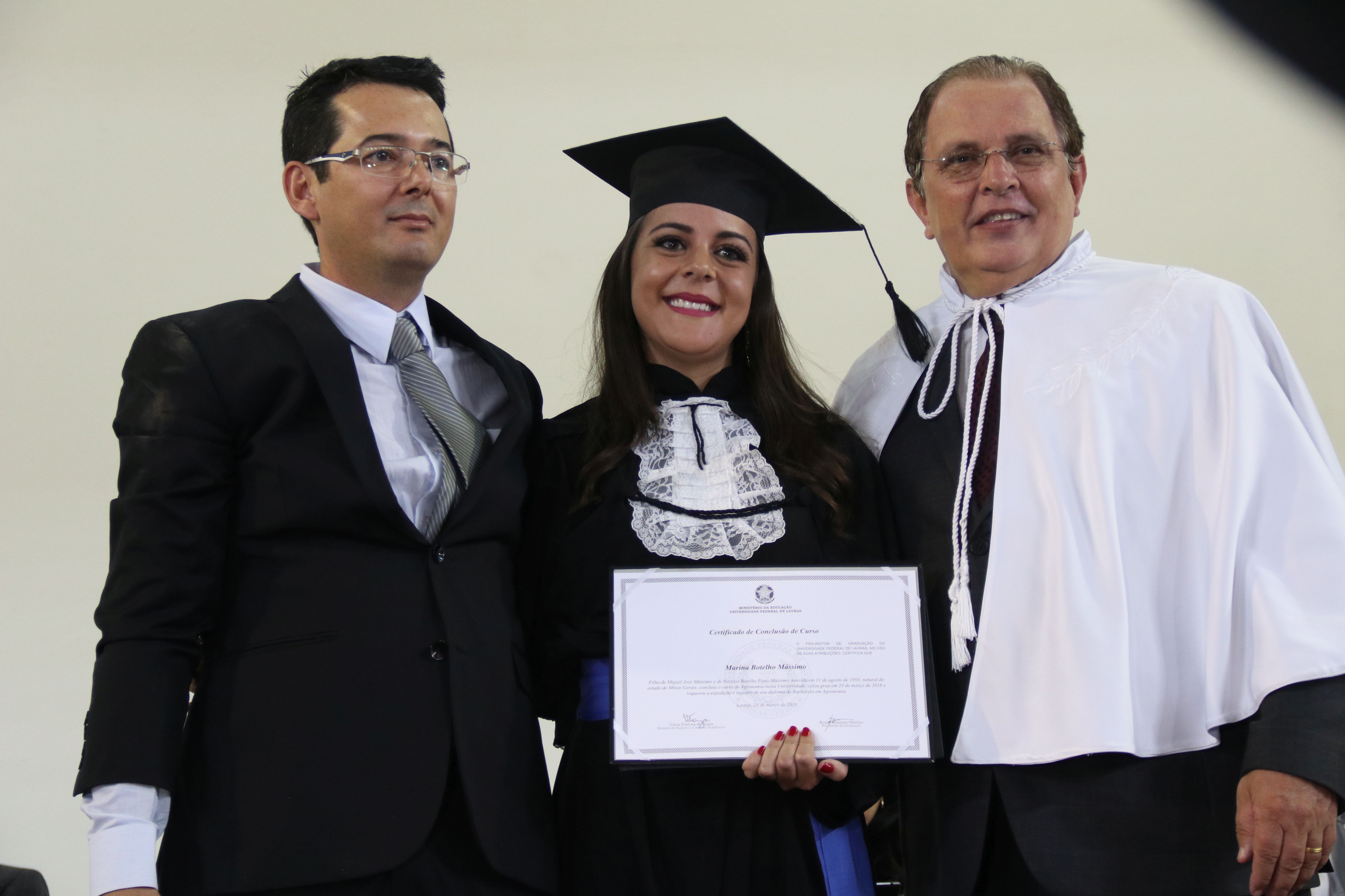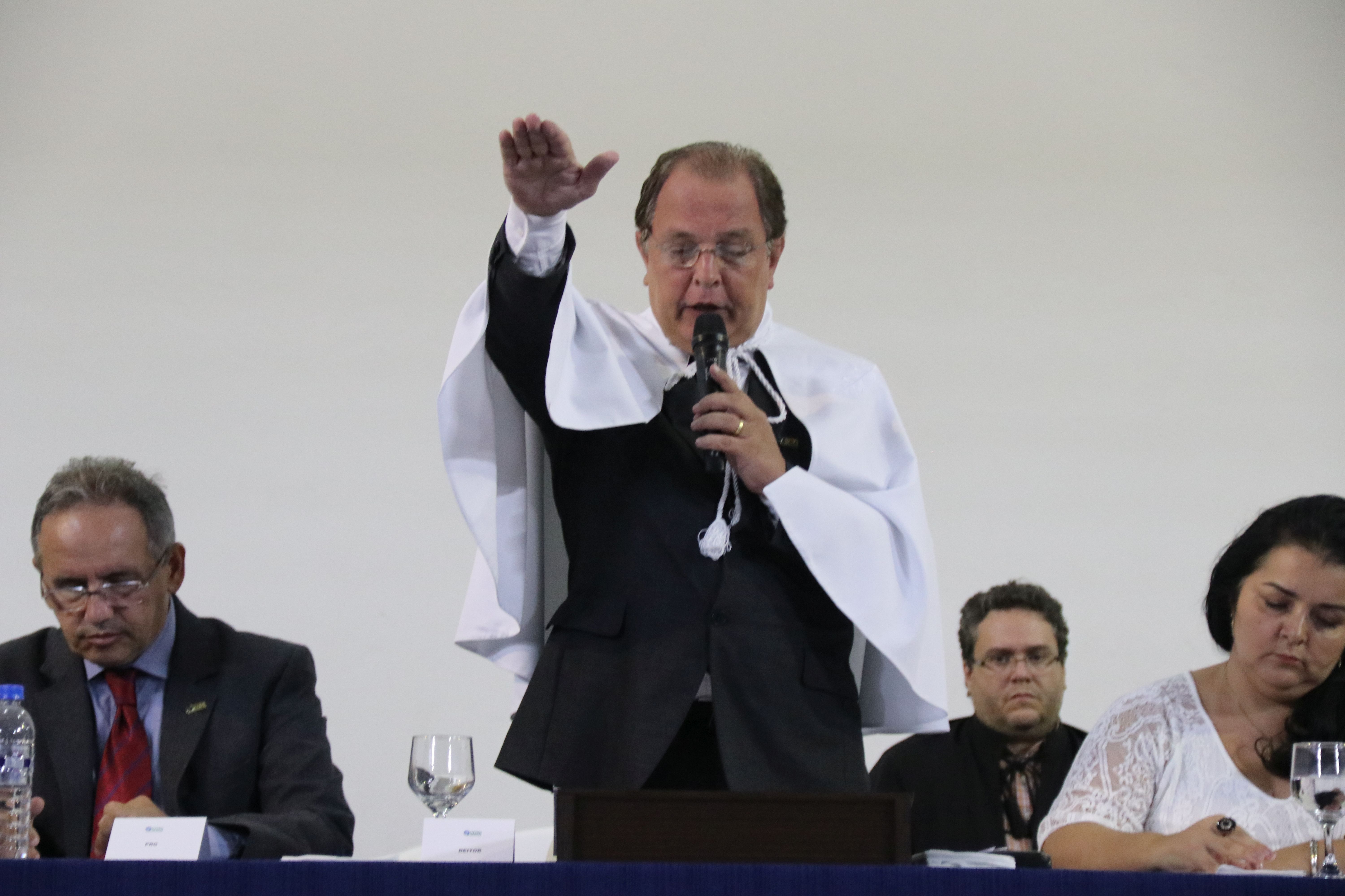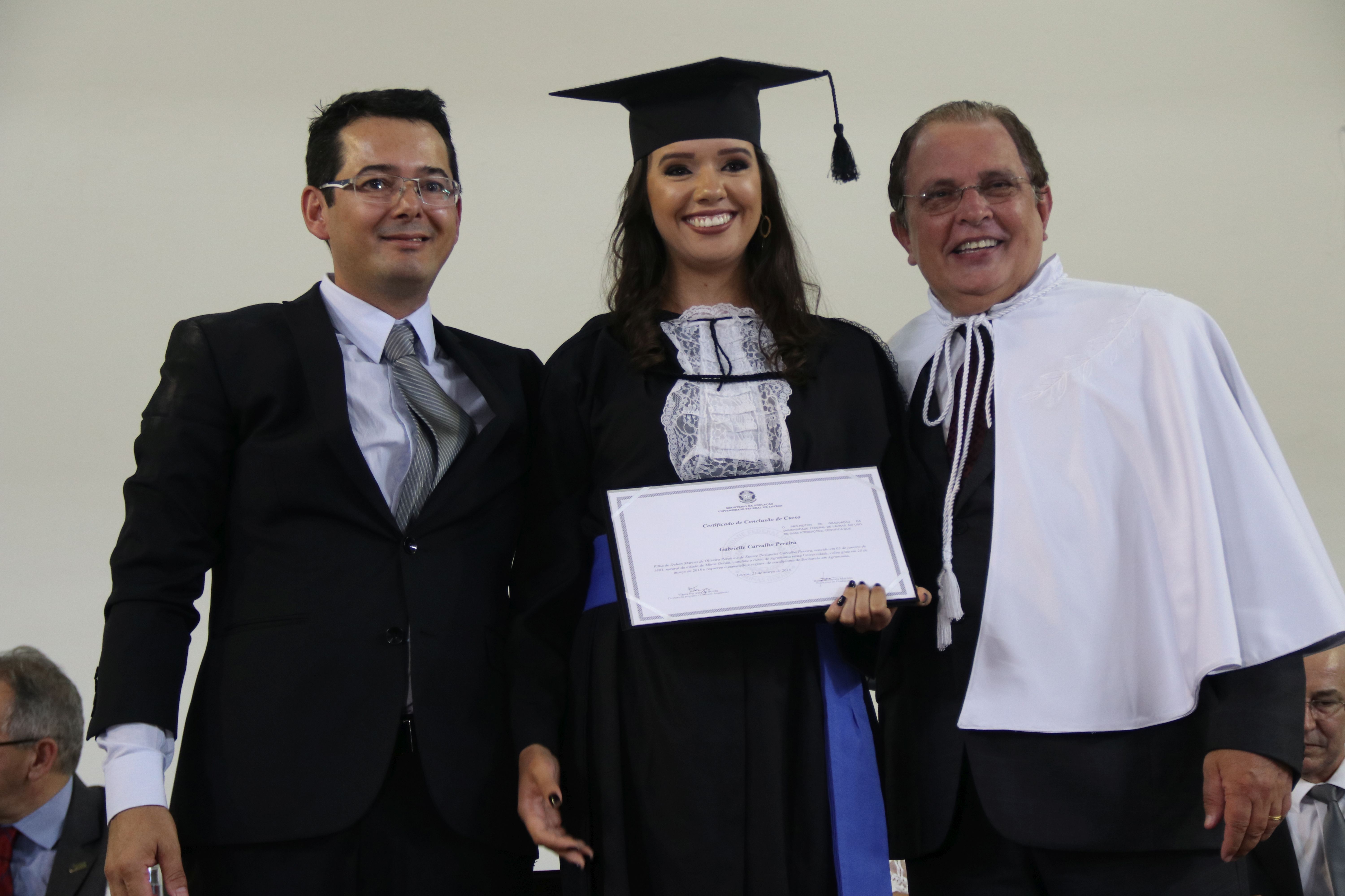 As solenidades foram presididas pelo reitor e presidente do CUNI, professor José Roberto Soares Scolforo. Após fazer referência à tradução das cerimônias na Língua Brasileira de Sinais (Libras), manifestou orgulho pelo fato de a UFLA trabalhar primando pela inclusão e pelo respeito às diversidades. Para os formandos, reforçou a importância do juramento que fizeram, especialmente pelo compromisso com a ética, a justiça e a defesa da liberdade e da paz. “Vocês tiveram a felicidade de se formar sob o investimento do povo brasileiro. Por isso devem se empenhar em cumprir esses compromissos carregados de valores que são hoje tão necessários à sociedade brasileira”. Scolforo também incentivou os novos profissionais a seguirem em frente: “vençam o medo deste momento posterior à conclusão do curso e lutem, busquem alcançar seus sonhos, sejam cidadãos de valor, pratiquem solidariedade e continuem a caminhada com garra e persistência, sempre respeitando as diferenças”.