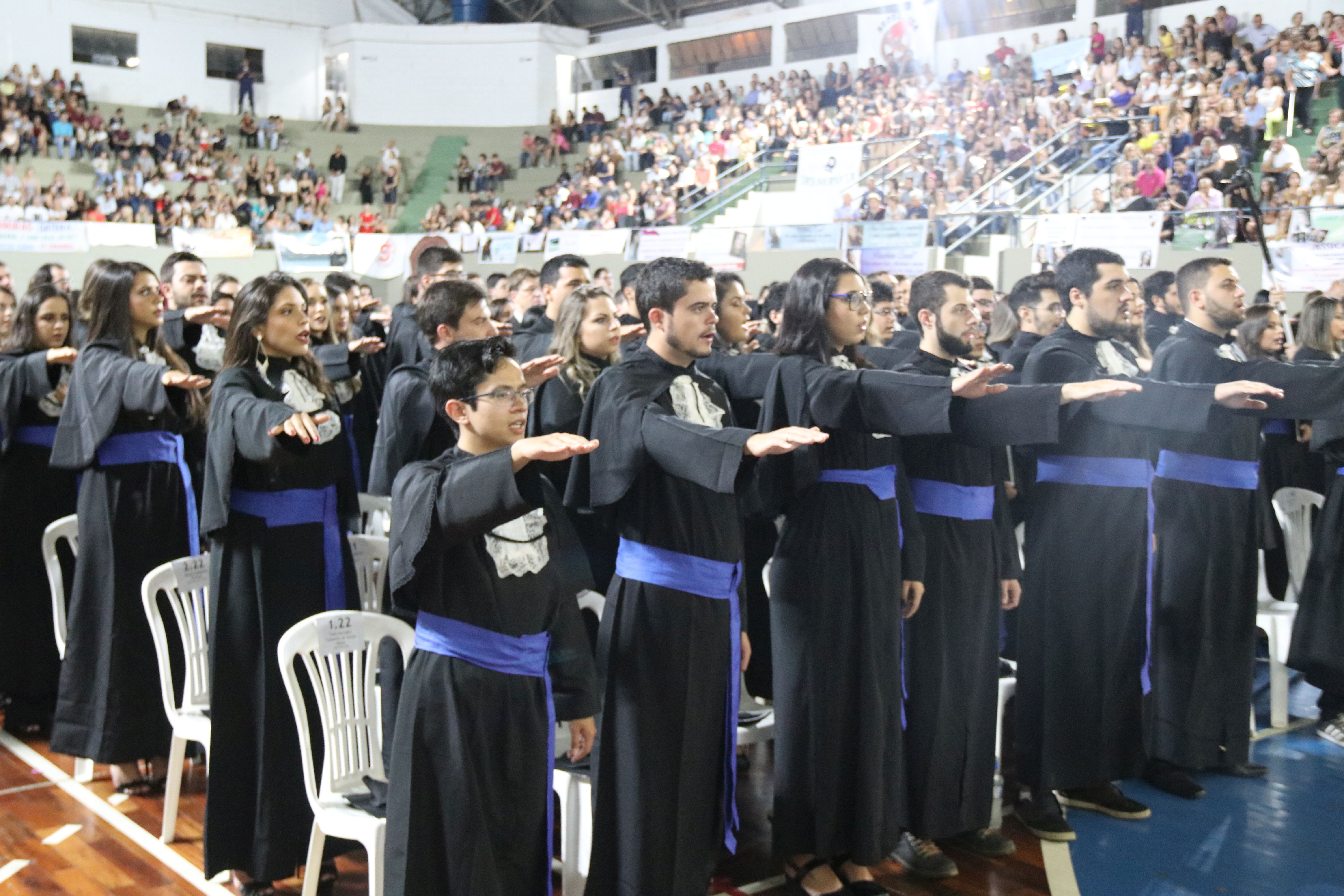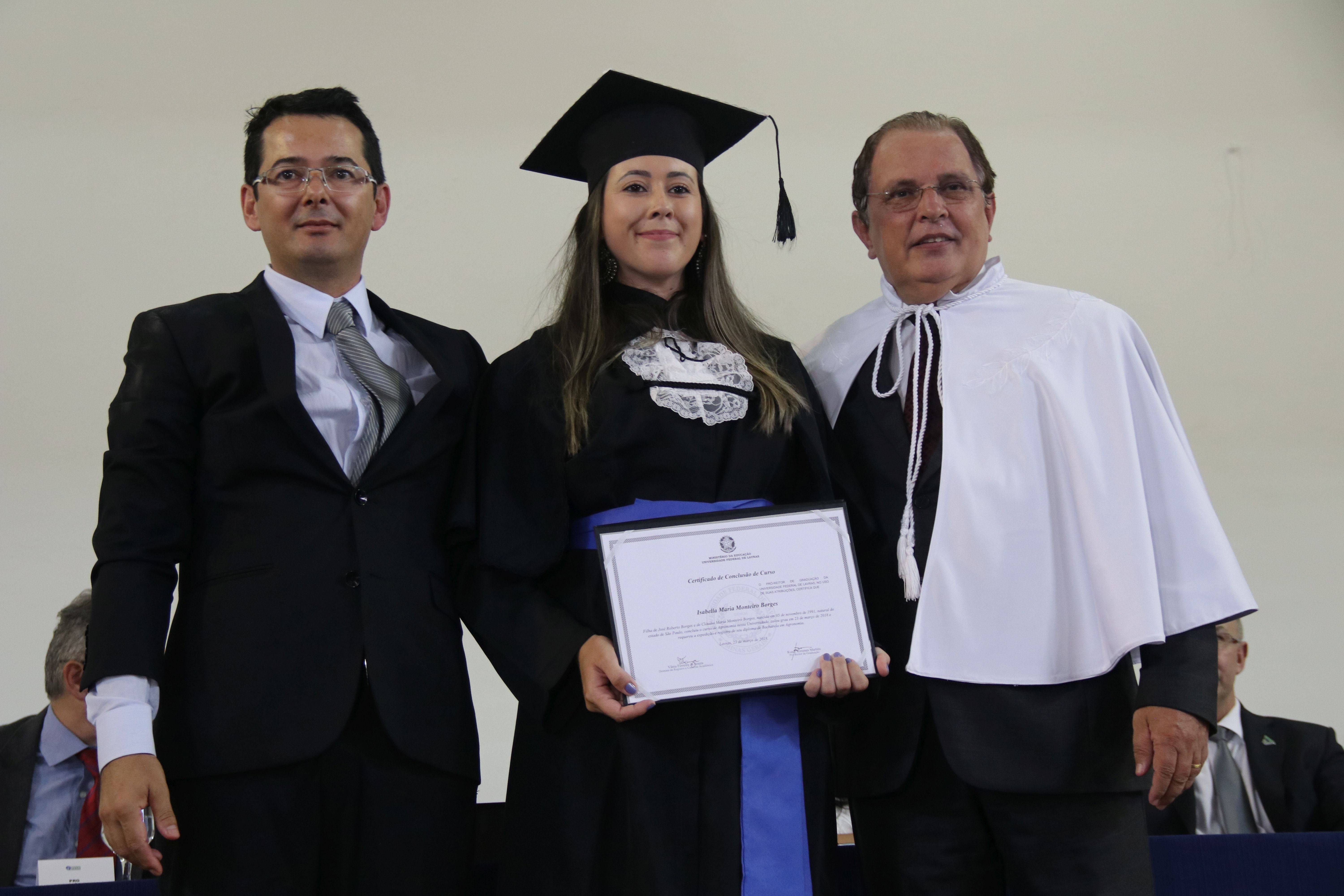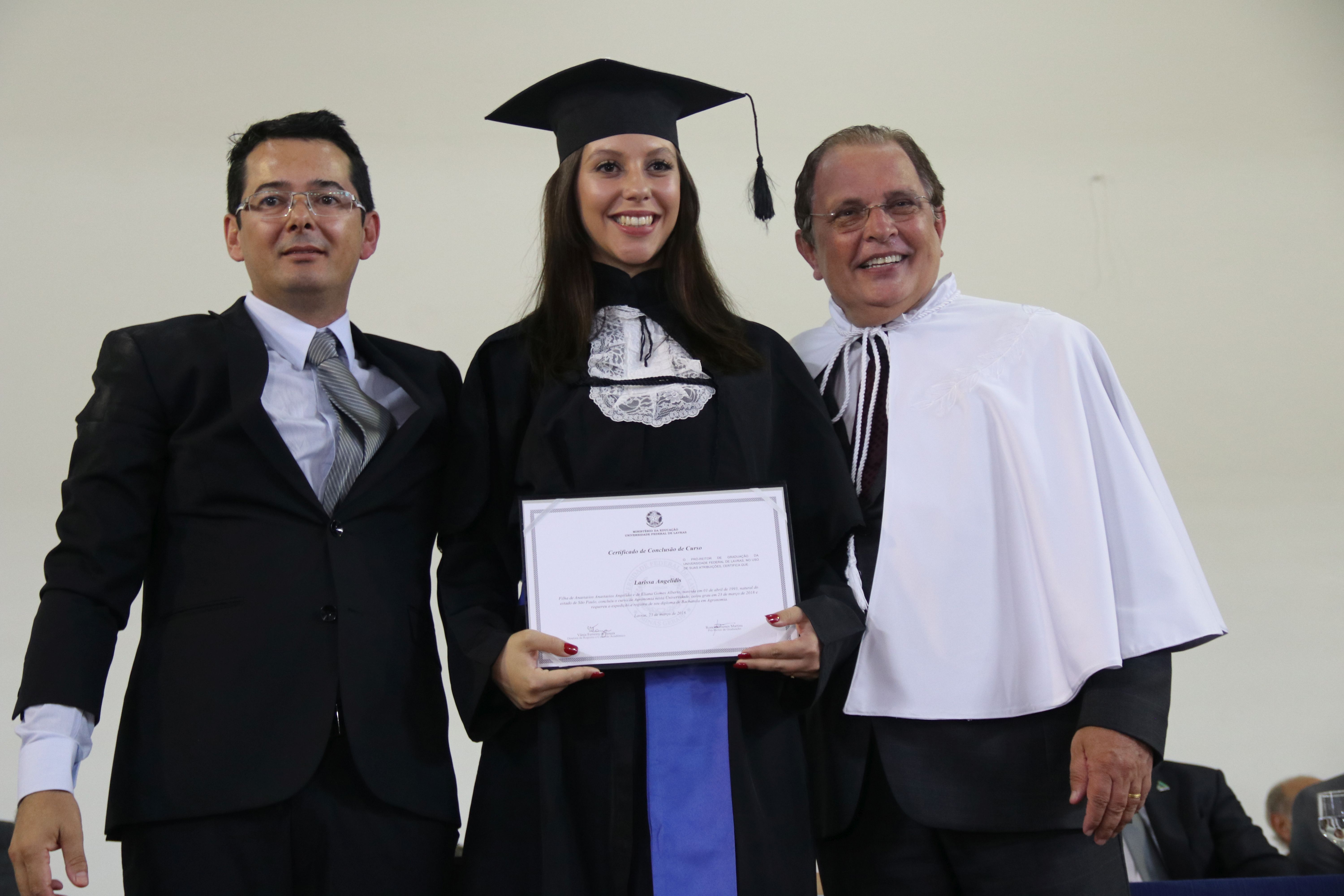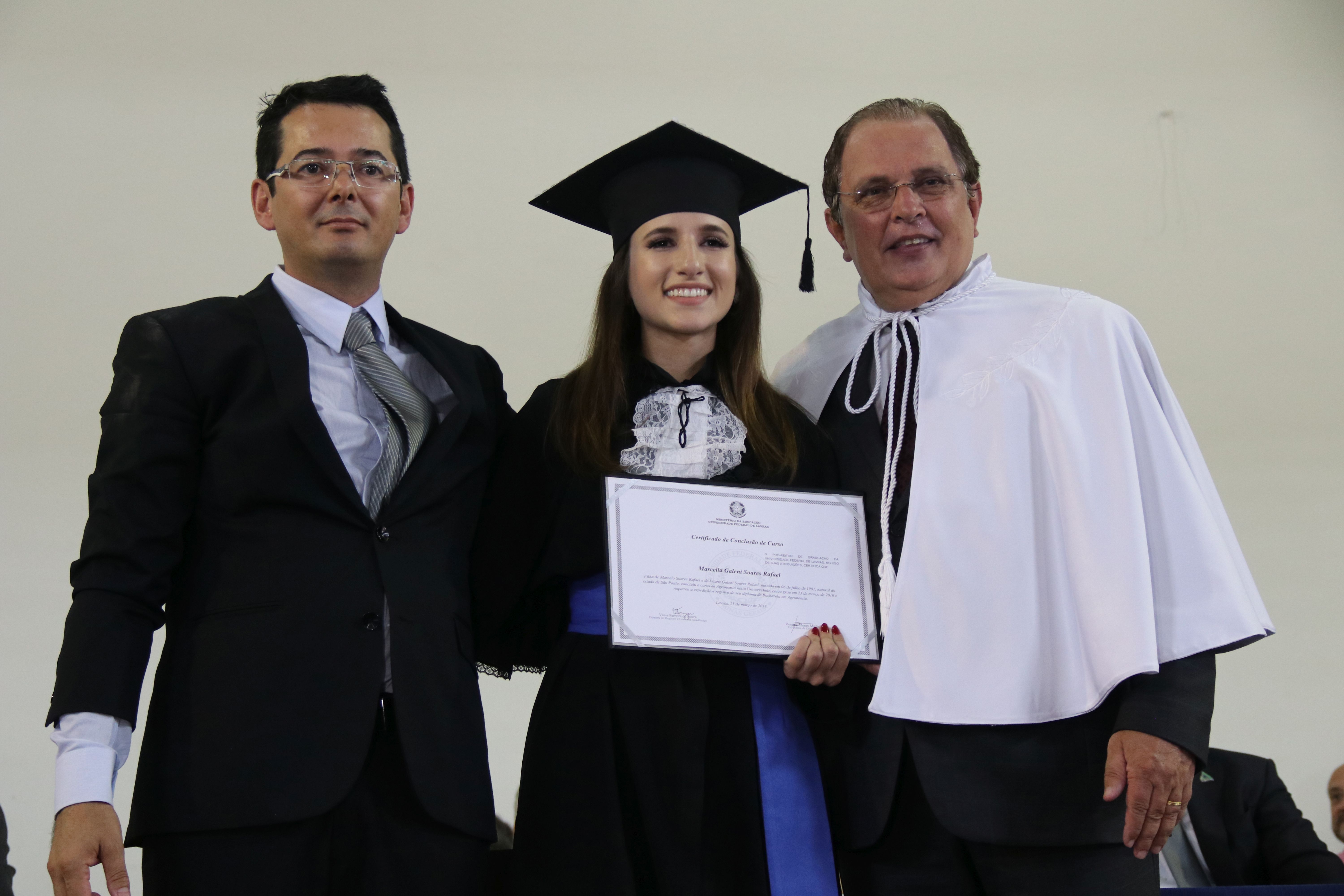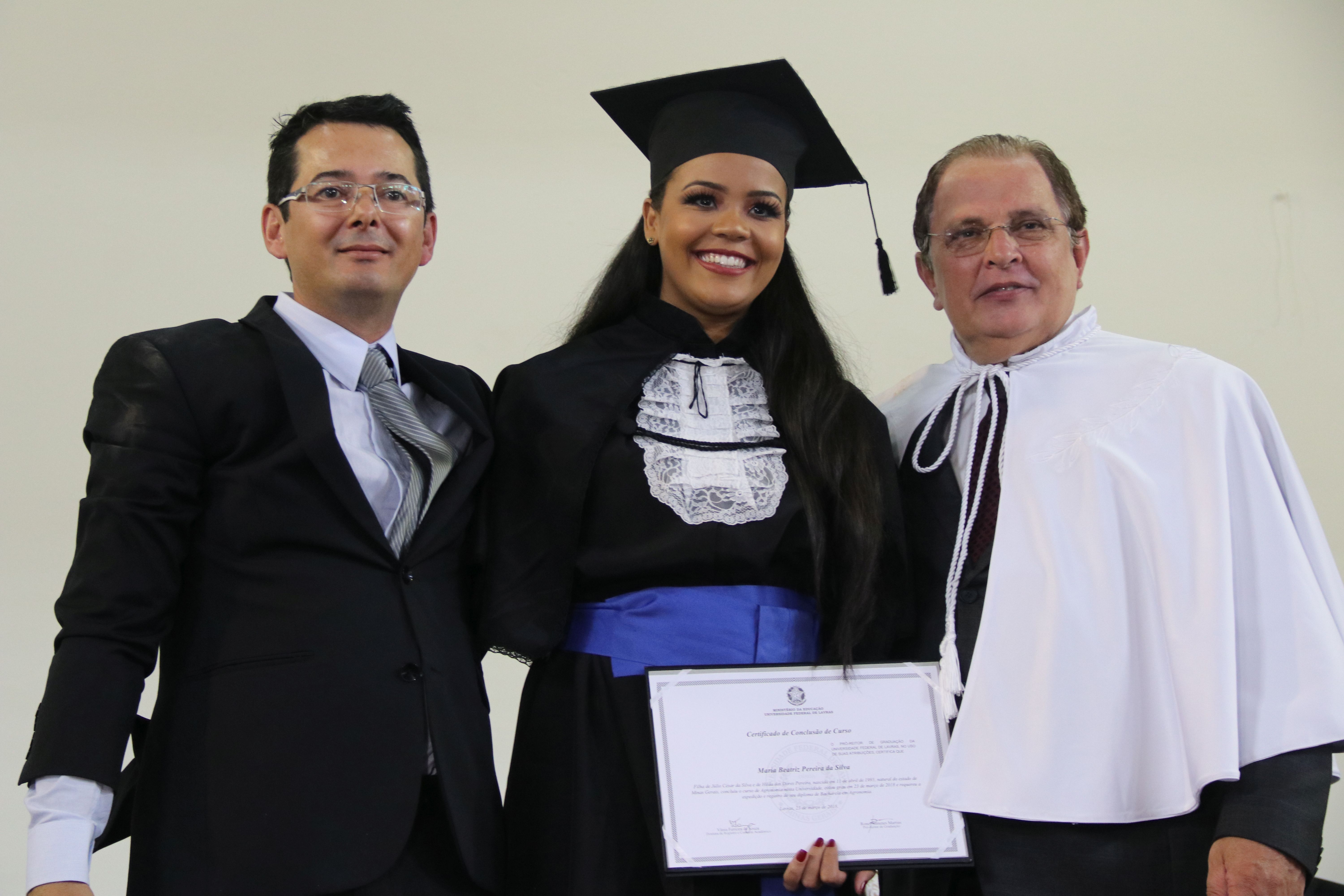 As solenidades foram presididas pelo reitor e presidente do CUNI, professor José Roberto Soares Scolforo. Após fazer referência à tradução das cerimônias na Língua Brasileira de Sinais (Libras), manifestou orgulho pelo fato de a UFLA trabalhar primando pela inclusão e pelo respeito às diversidades. Para os formandos, reforçou a importância do juramento que fizeram, especialmente pelo compromisso com a ética, a justiça e a defesa da liberdade e da paz. “Vocês tiveram a felicidade de se formar sob o investimento do povo brasileiro. Por isso devem se empenhar em cumprir esses compromissos carregados de valores que são hoje tão necessários à sociedade brasileira”. Scolforo também incentivou os novos profissionais a seguirem em frente: “vençam o medo deste momento posterior à conclusão do curso e lutem, busquem alcançar seus sonhos, sejam cidadãos de valor, pratiquem solidariedade e continuem a caminhada com garra e persistência, sempre respeitando as diferenças”.