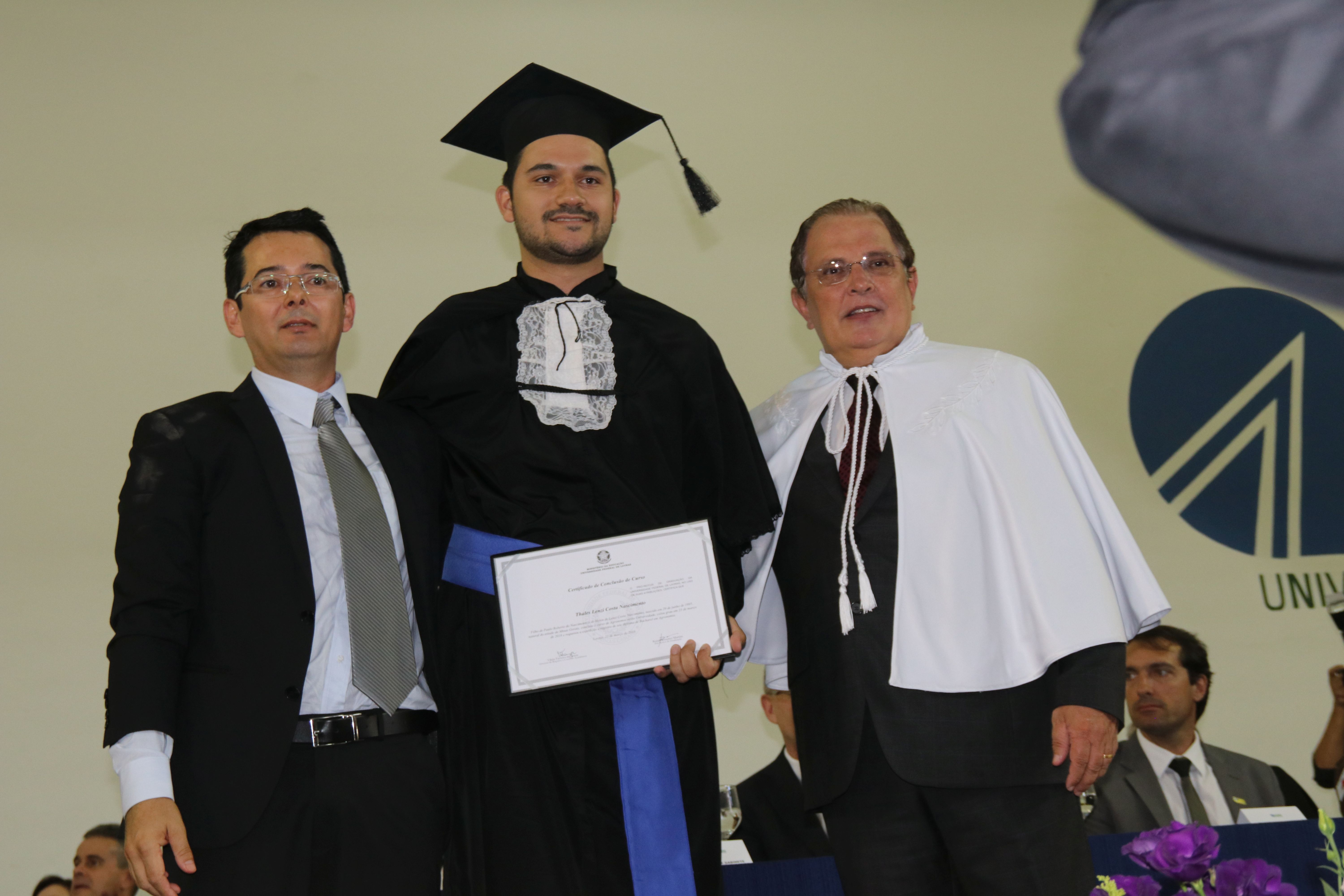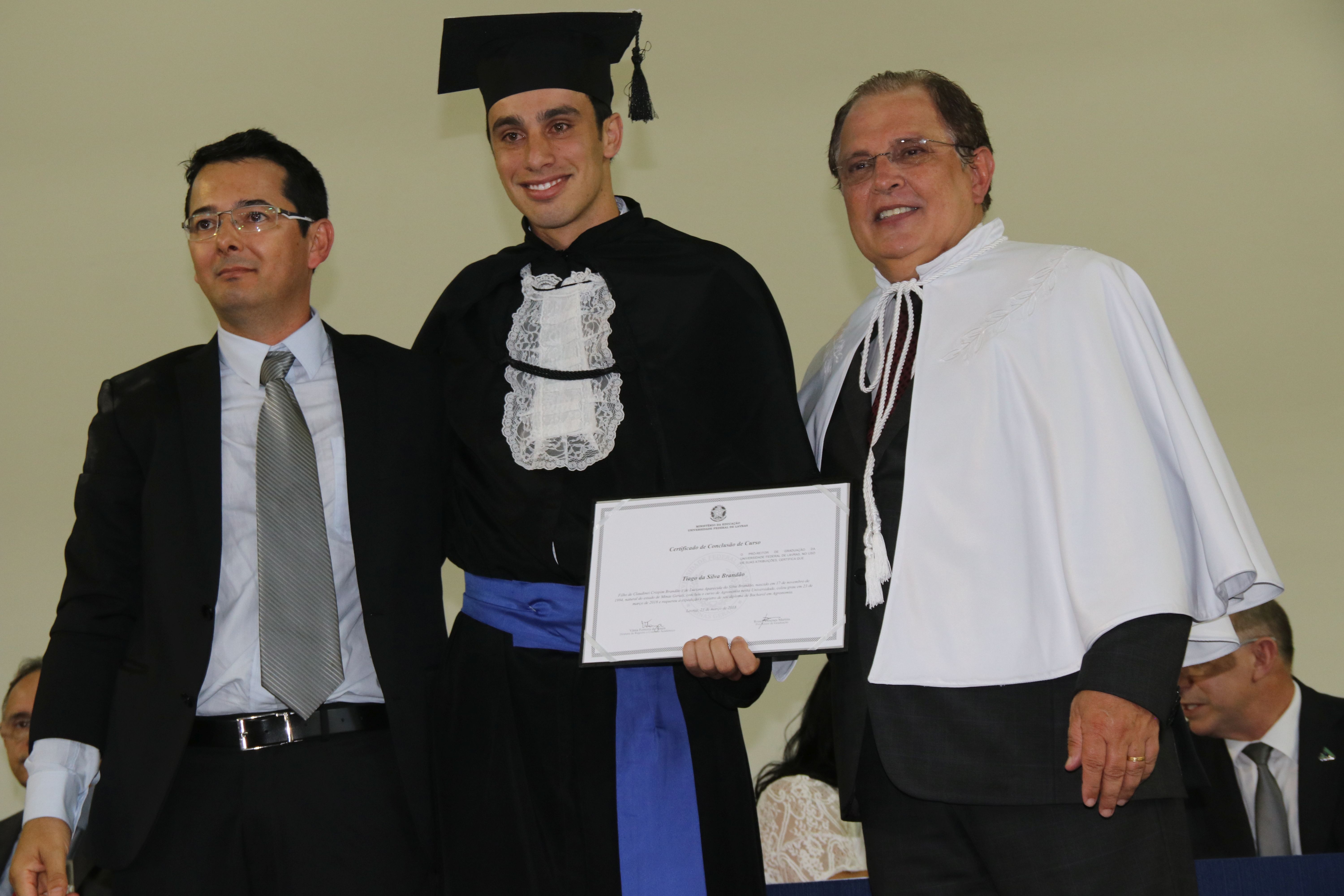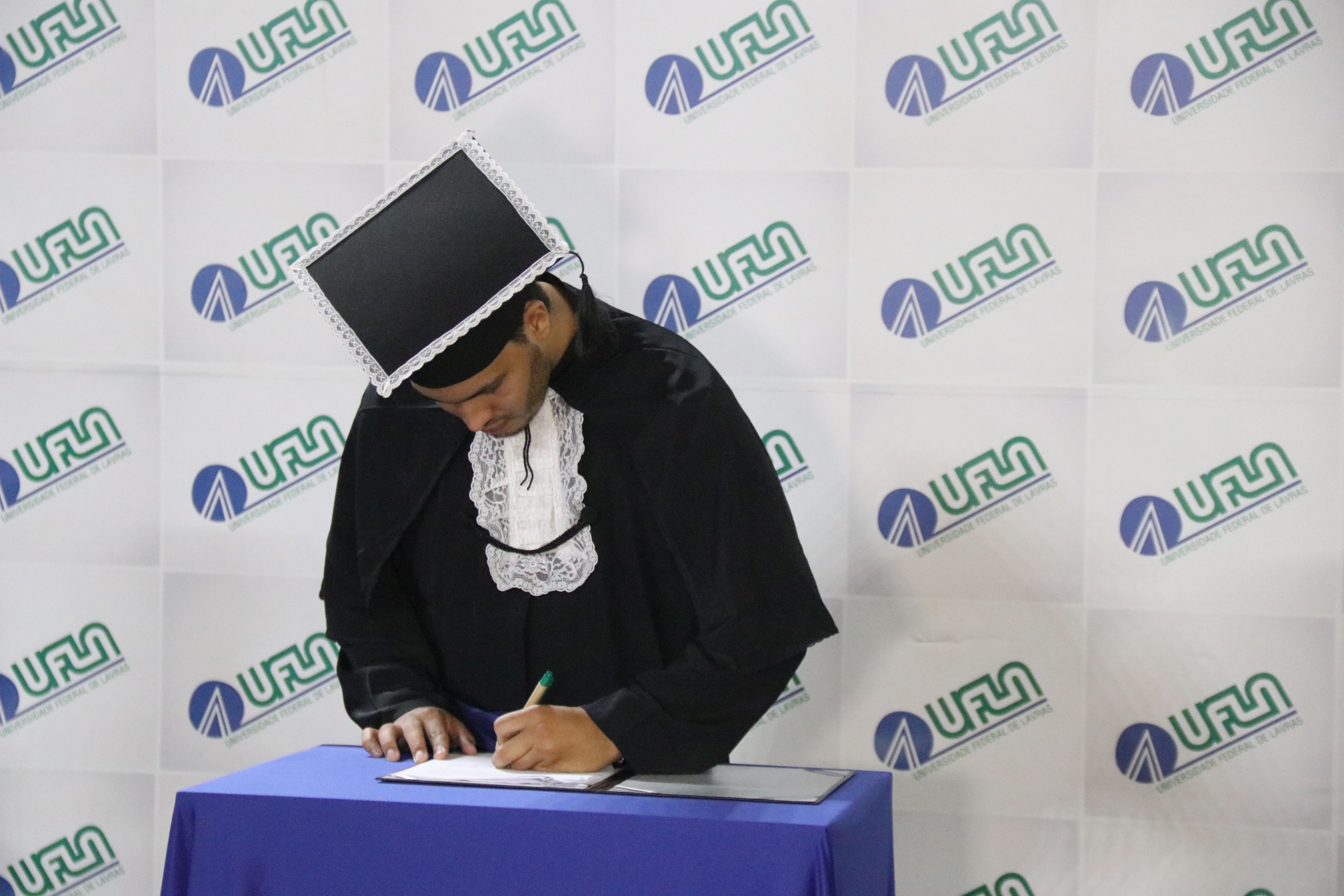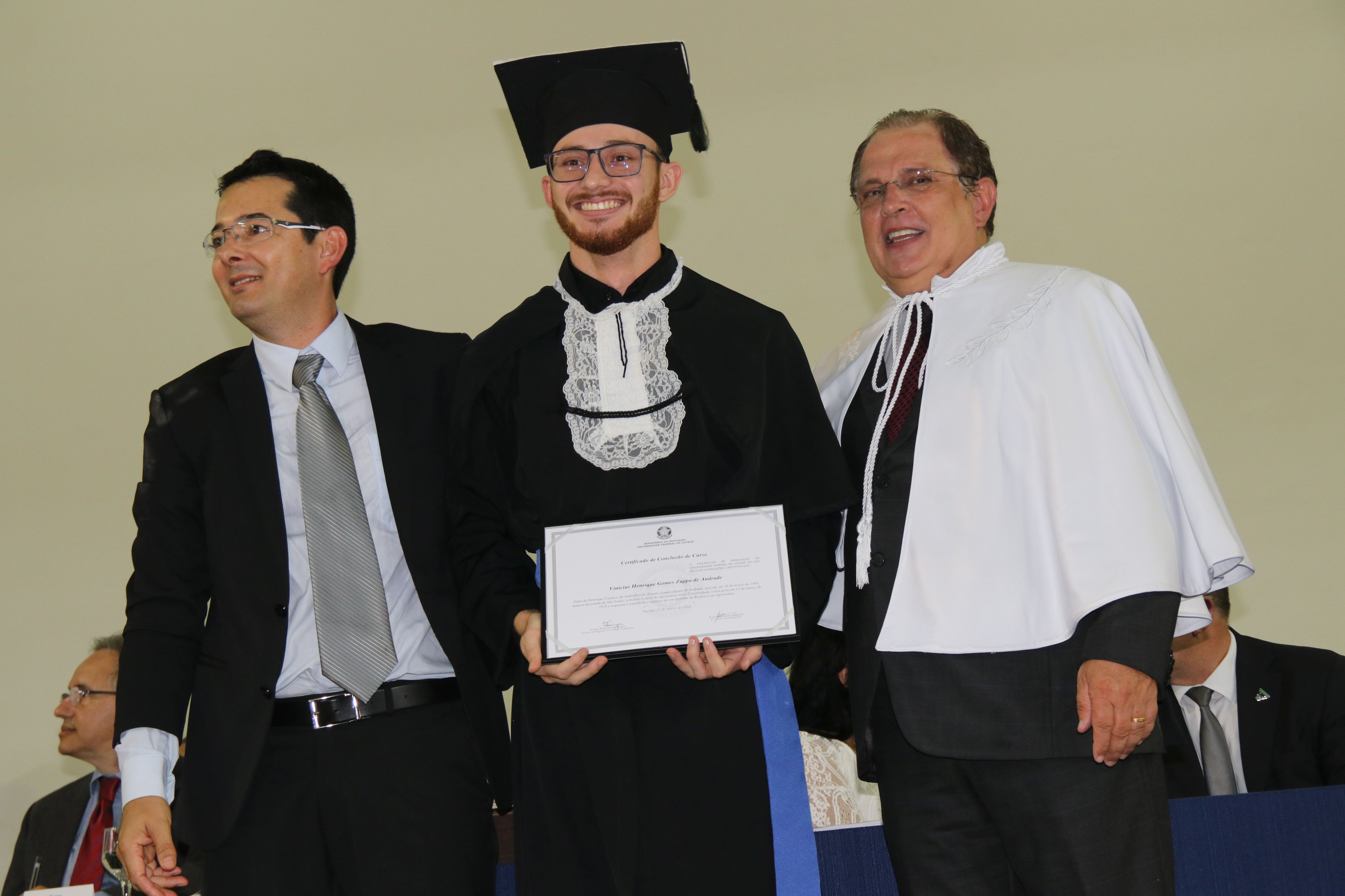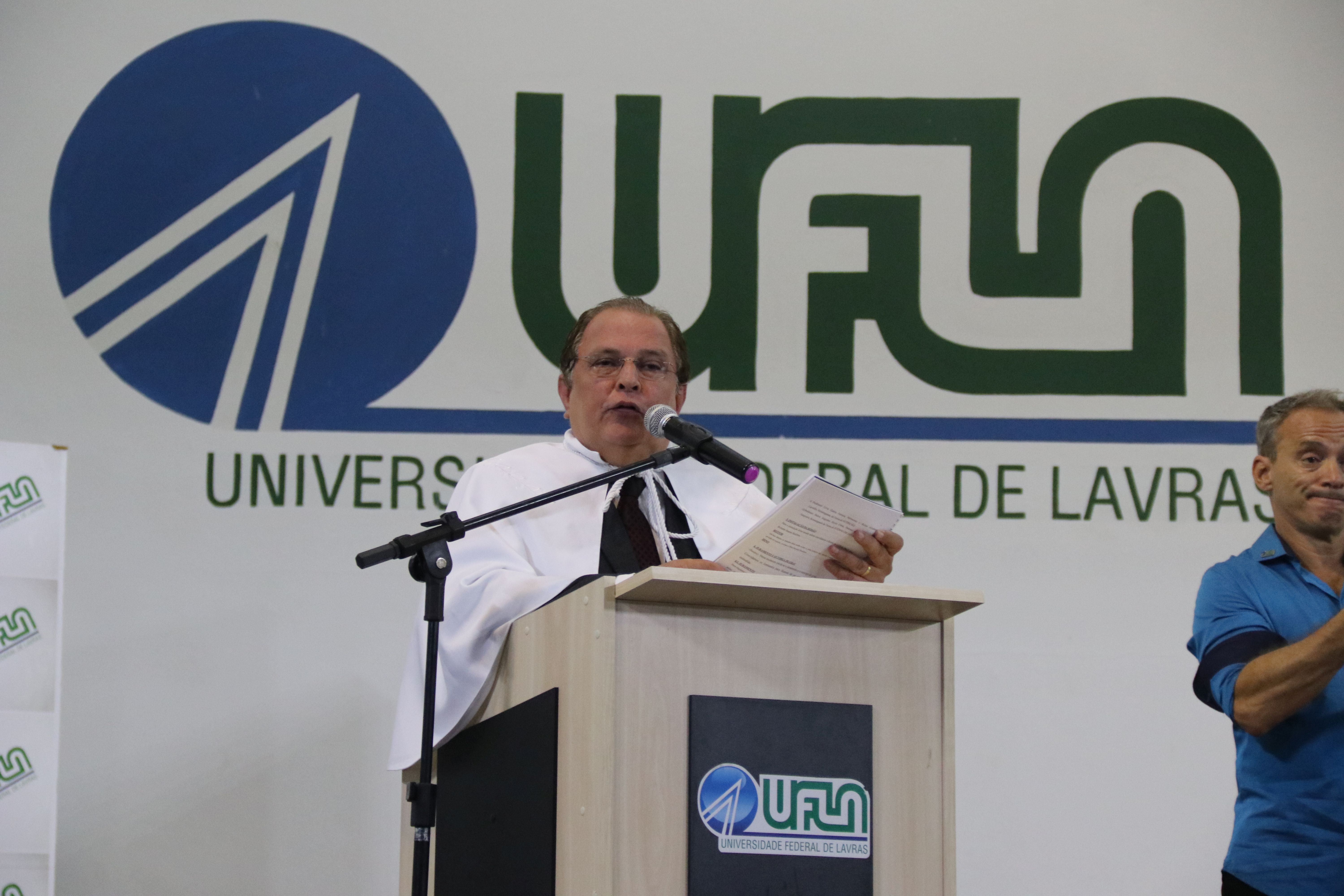 As solenidades foram presididas pelo reitor e presidente do CUNI, professor José Roberto Soares Scolforo. Após fazer referência à tradução das cerimônias na Língua Brasileira de Sinais (Libras), manifestou orgulho pelo fato de a UFLA trabalhar primando pela inclusão e pelo respeito às diversidades. Para os formandos, reforçou a importância do juramento que fizeram, especialmente pelo compromisso com a ética, a justiça e a defesa da liberdade e da paz. “Vocês tiveram a felicidade de se formar sob o investimento do povo brasileiro. Por isso devem se empenhar em cumprir esses compromissos carregados de valores que são hoje tão necessários à sociedade brasileira”. Scolforo também incentivou os novos profissionais a seguirem em frente: “vençam o medo deste momento posterior à conclusão do curso e lutem, busquem alcançar seus sonhos, sejam cidadãos de valor, pratiquem solidariedade e continuem a caminhada com garra e persistência, sempre respeitando as diferenças”.