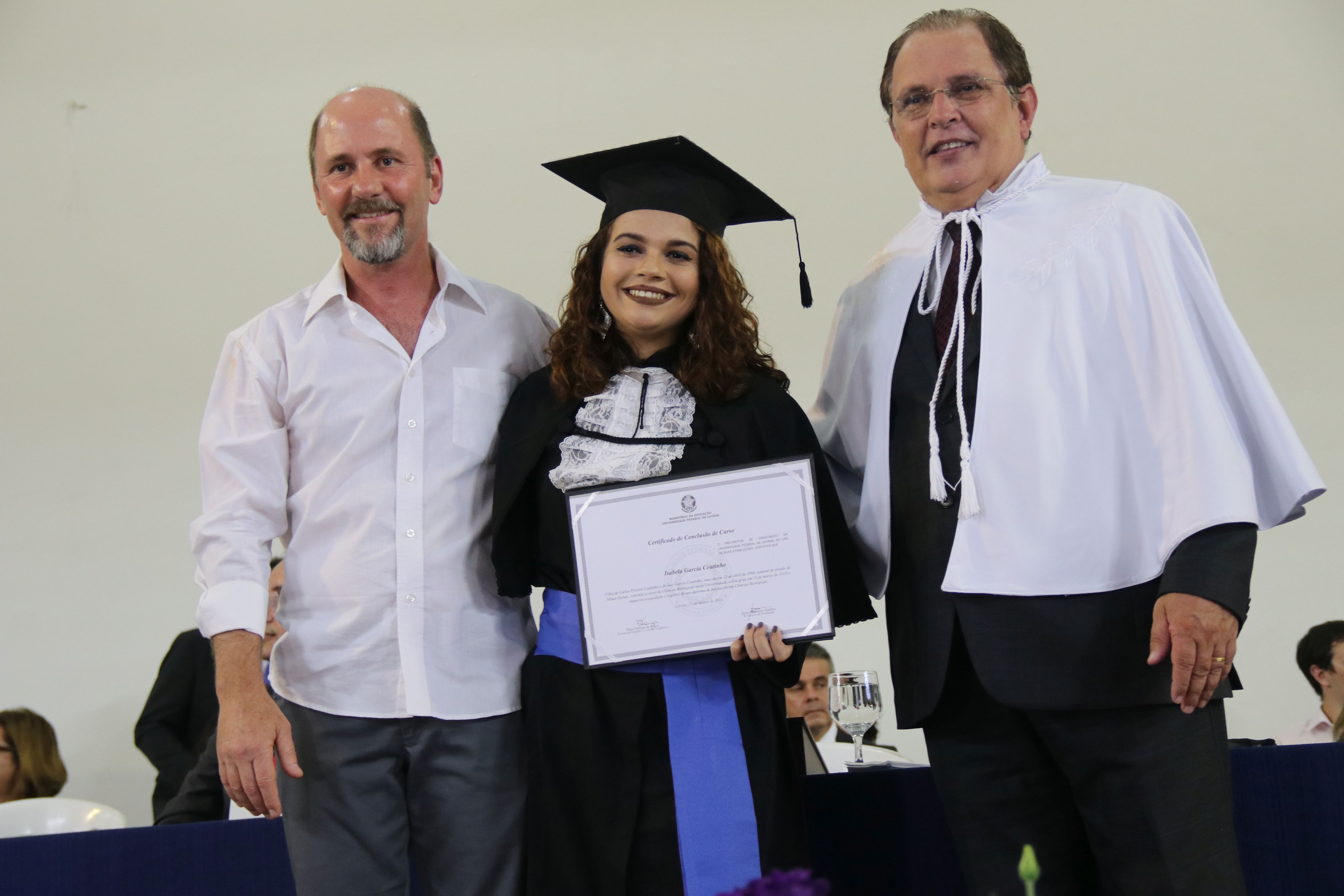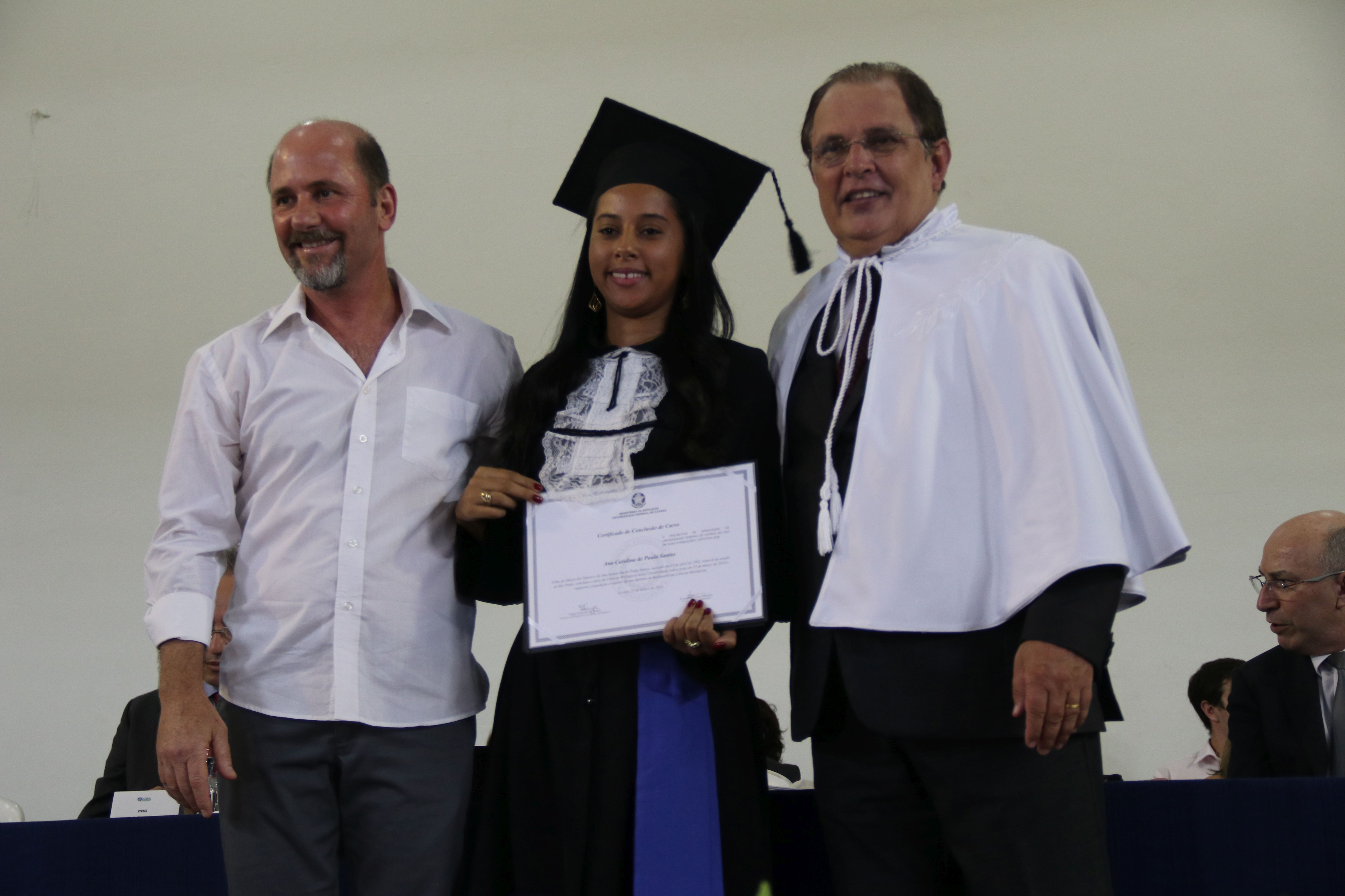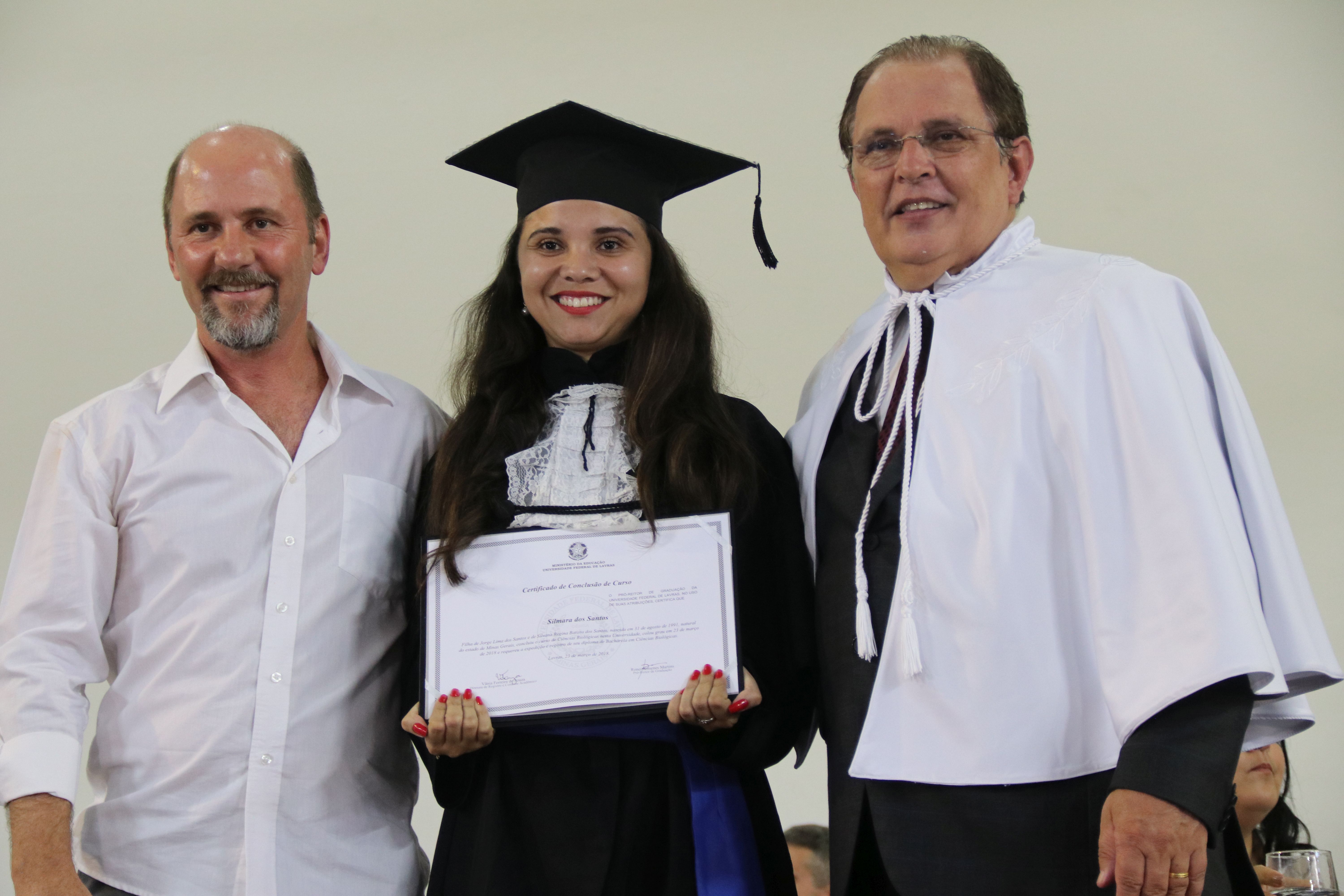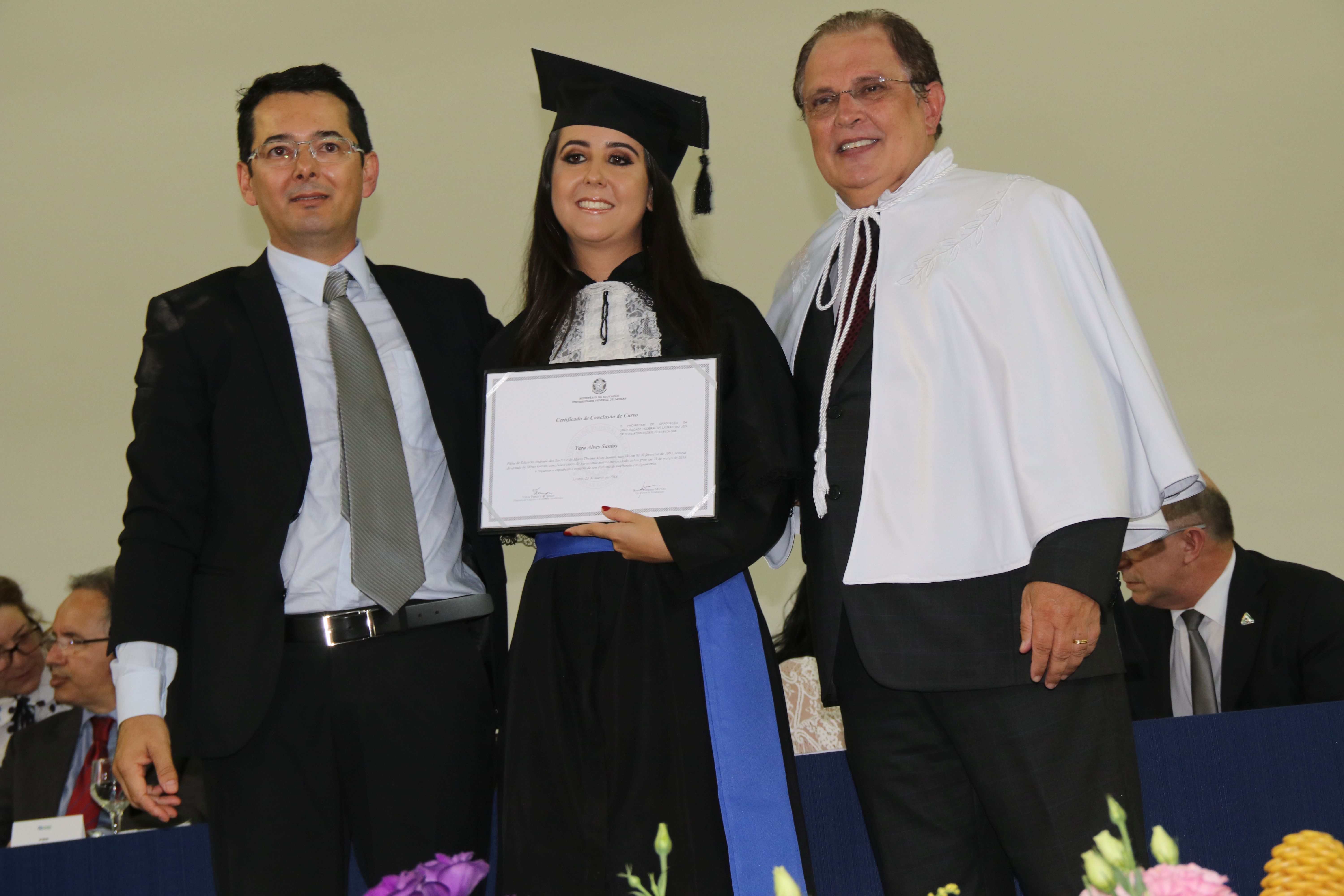 As solenidades foram presididas pelo reitor e presidente do CUNI, professor José Roberto Soares Scolforo. Após fazer referência à tradução das cerimônias na Língua Brasileira de Sinais (Libras), manifestou orgulho pelo fato de a UFLA trabalhar primando pela inclusão e pelo respeito às diversidades. Para os formandos, reforçou a importância do juramento que fizeram, especialmente pelo compromisso com a ética, a justiça e a defesa da liberdade e da paz. “Vocês tiveram a felicidade de se formar sob o investimento do povo brasileiro. Por isso devem se empenhar em cumprir esses compromissos carregados de valores que são hoje tão necessários à sociedade brasileira”. Scolforo também incentivou os novos profissionais a seguirem em frente: “vençam o medo deste momento posterior à conclusão do curso e lutem, busquem alcançar seus sonhos, sejam cidadãos de valor, pratiquem solidariedade e continuem a caminhada com garra e persistência, sempre respeitando as diferenças”.