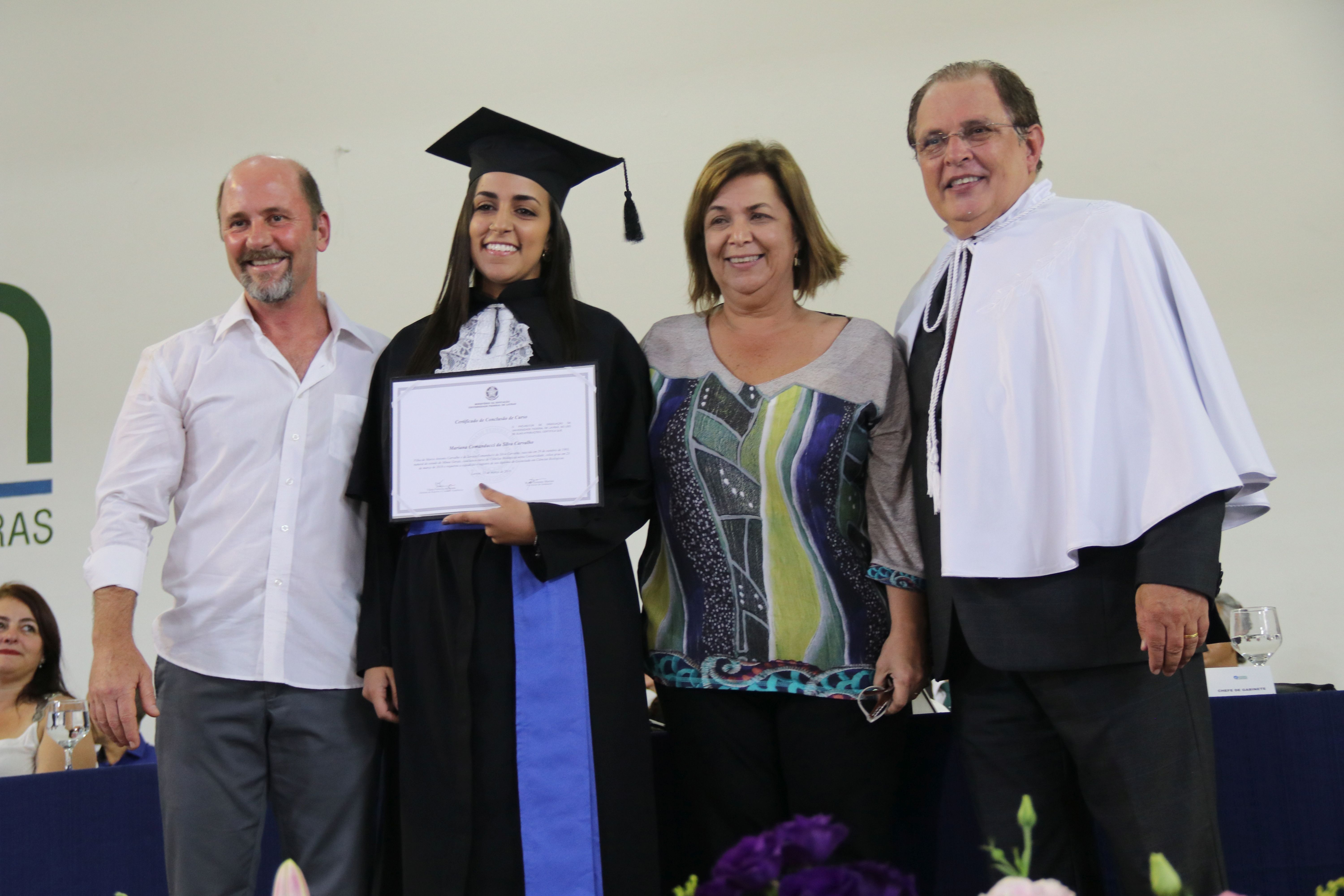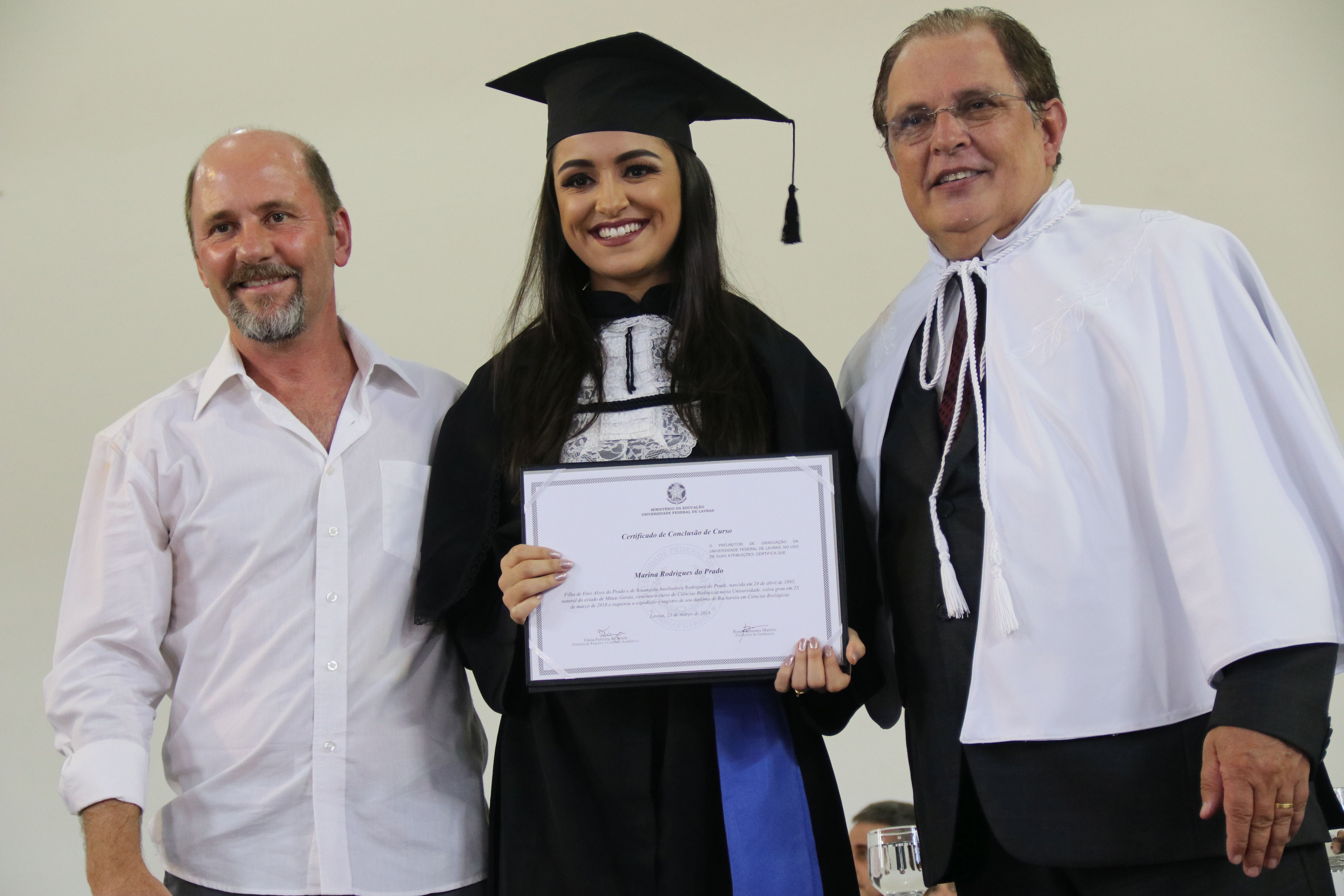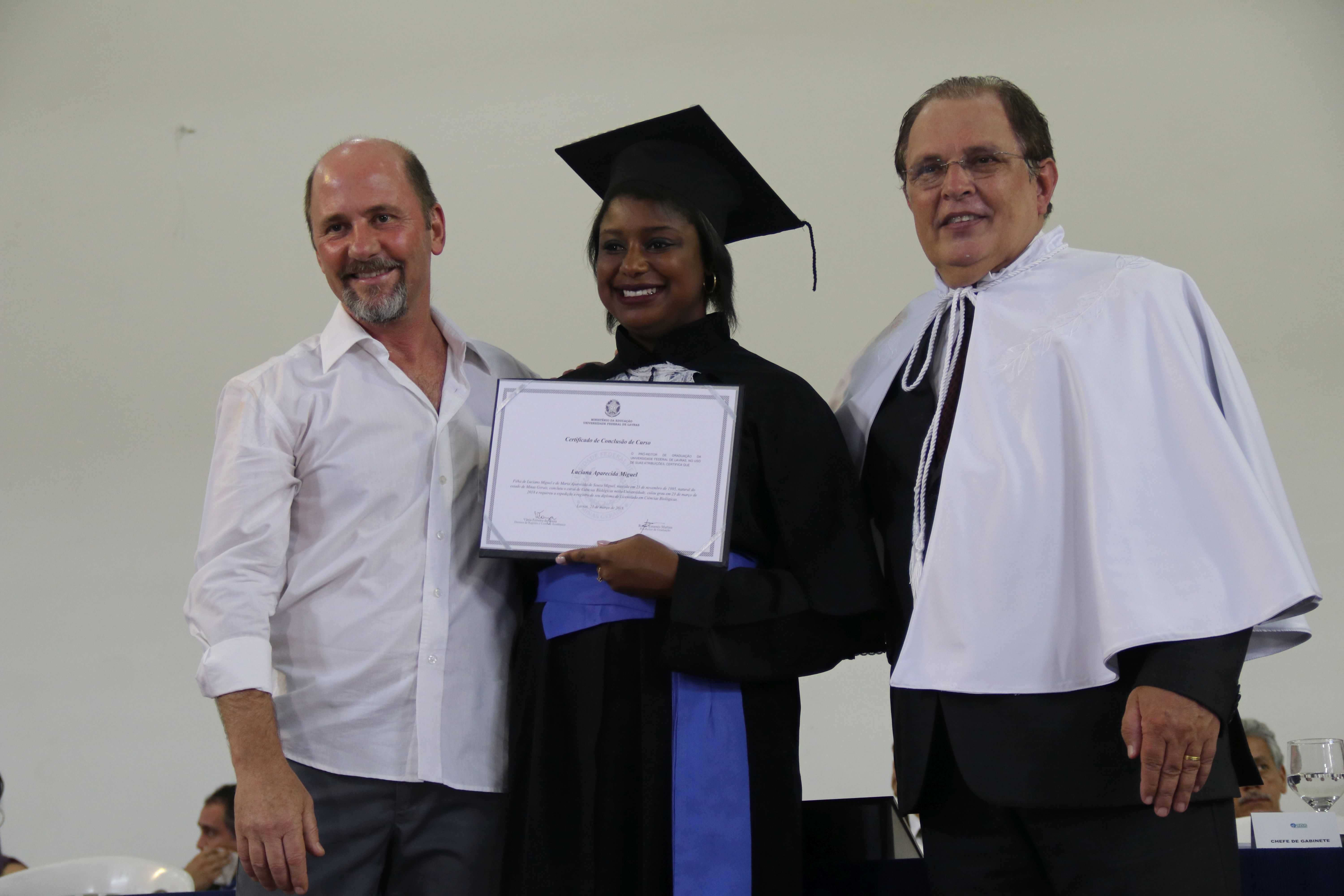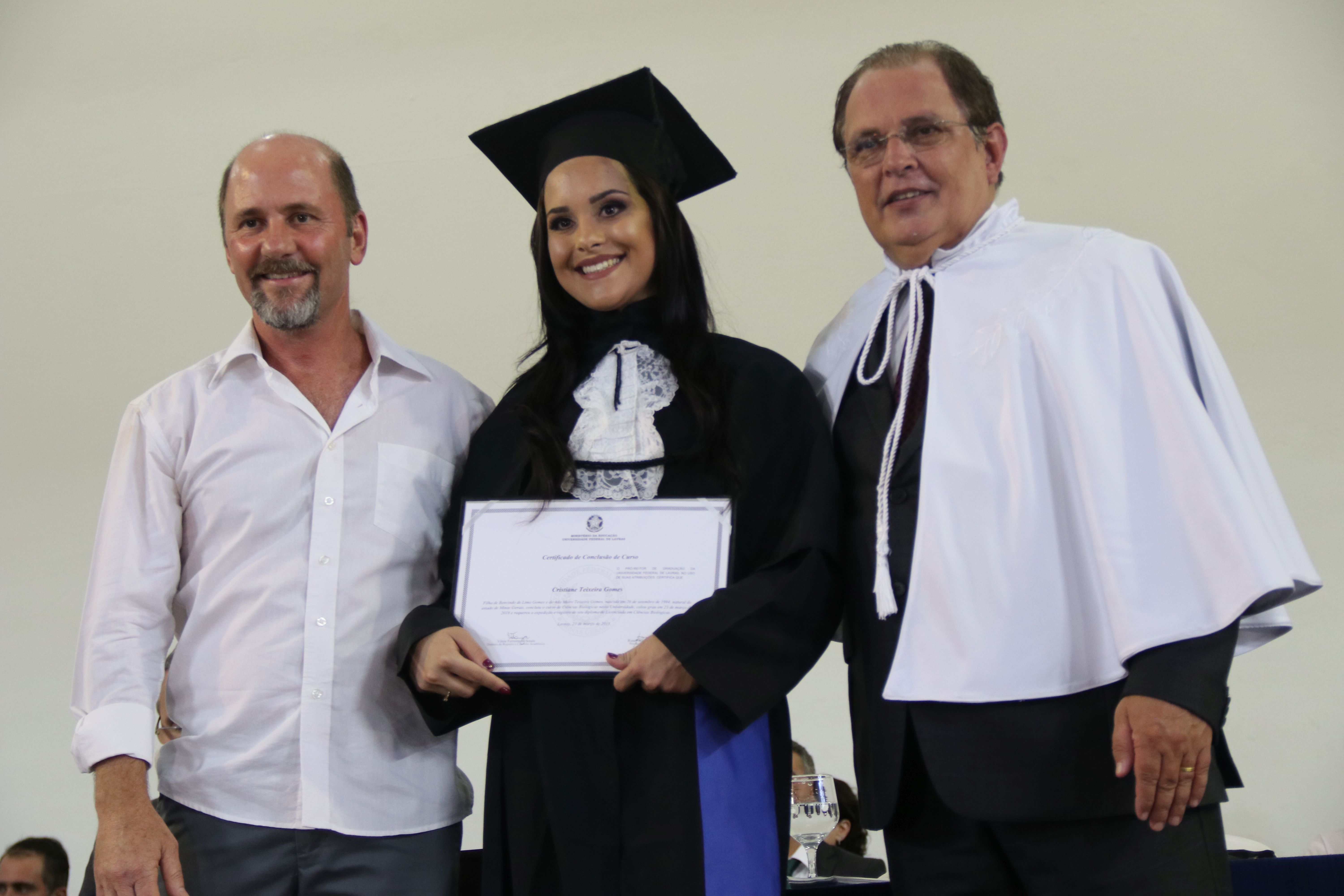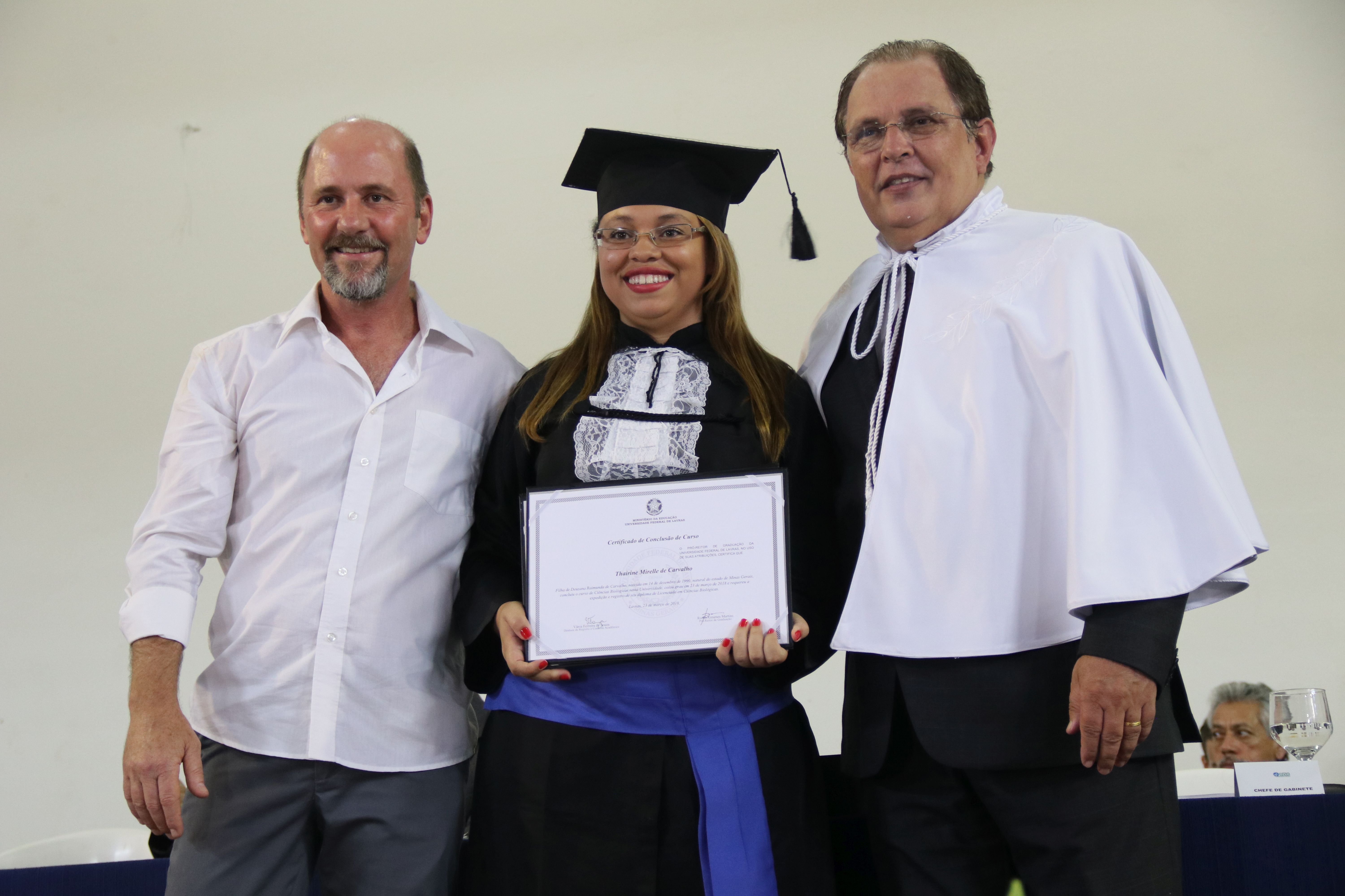 As solenidades foram presididas pelo reitor e presidente do CUNI, professor José Roberto Soares Scolforo. Após fazer referência à tradução das cerimônias na Língua Brasileira de Sinais (Libras), manifestou orgulho pelo fato de a UFLA trabalhar primando pela inclusão e pelo respeito às diversidades. Para os formandos, reforçou a importância do juramento que fizeram, especialmente pelo compromisso com a ética, a justiça e a defesa da liberdade e da paz. “Vocês tiveram a felicidade de se formar sob o investimento do povo brasileiro. Por isso devem se empenhar em cumprir esses compromissos carregados de valores que são hoje tão necessários à sociedade brasileira”. Scolforo também incentivou os novos profissionais a seguirem em frente: “vençam o medo deste momento posterior à conclusão do curso e lutem, busquem alcançar seus sonhos, sejam cidadãos de valor, pratiquem solidariedade e continuem a caminhada com garra e persistência, sempre respeitando as diferenças”.