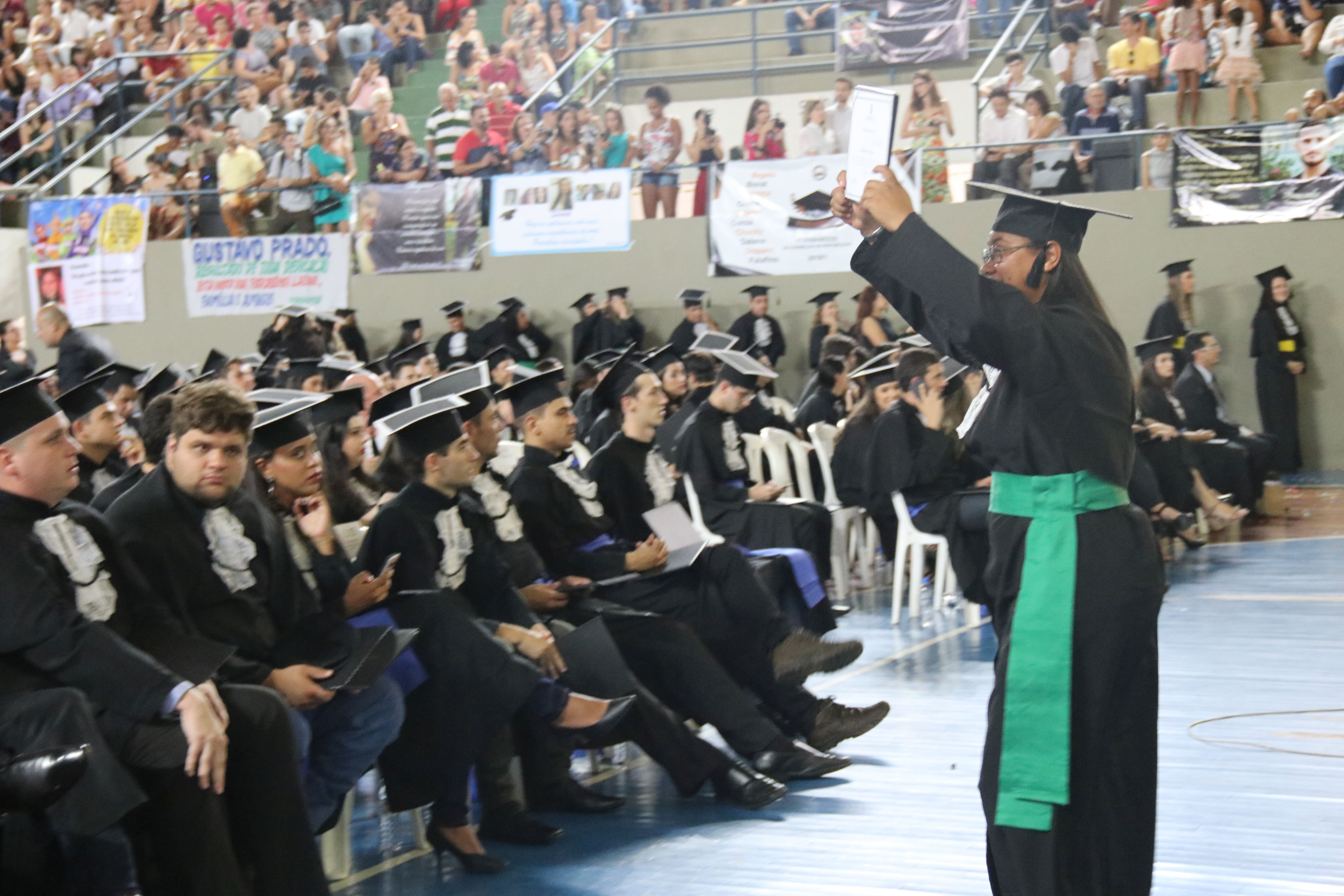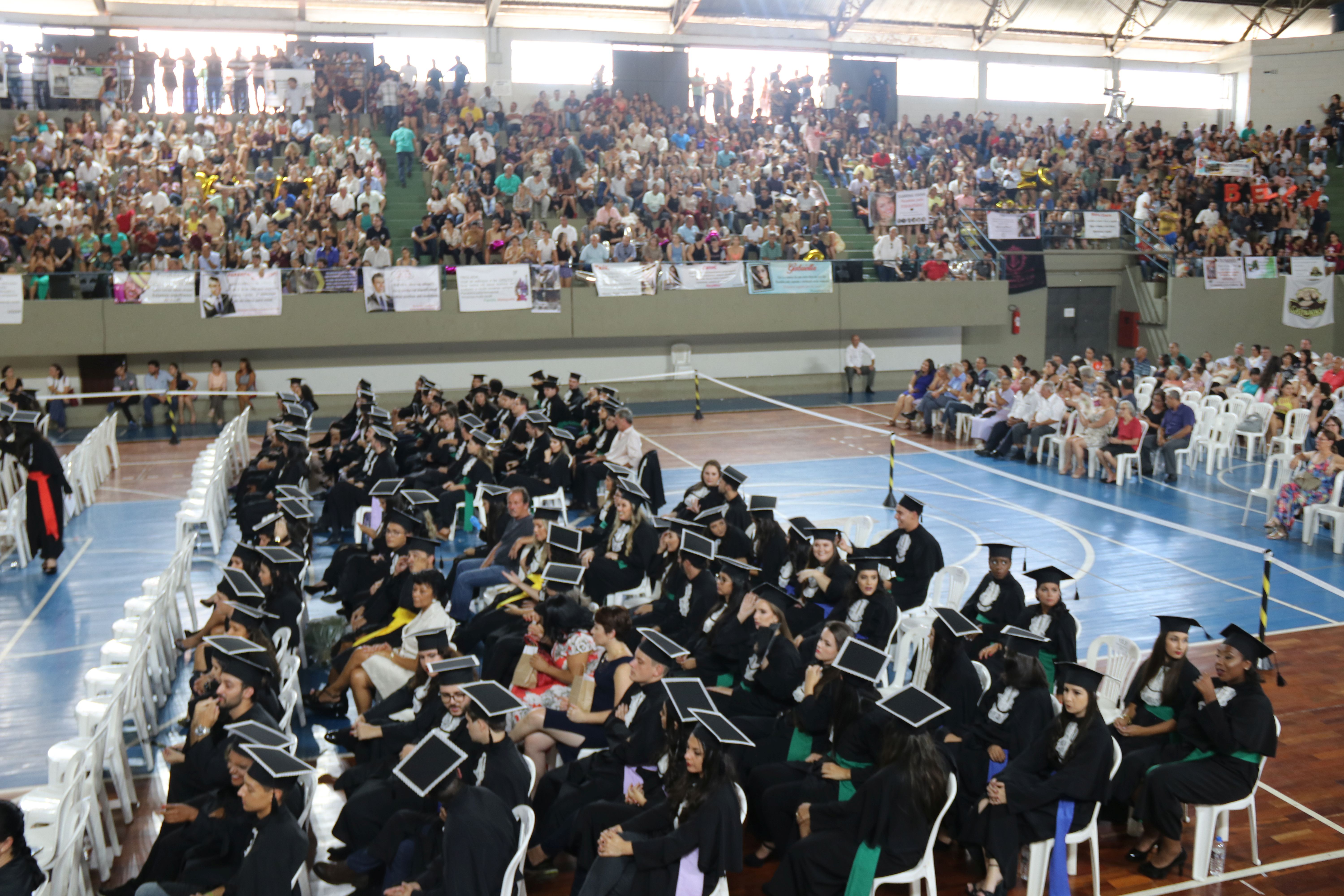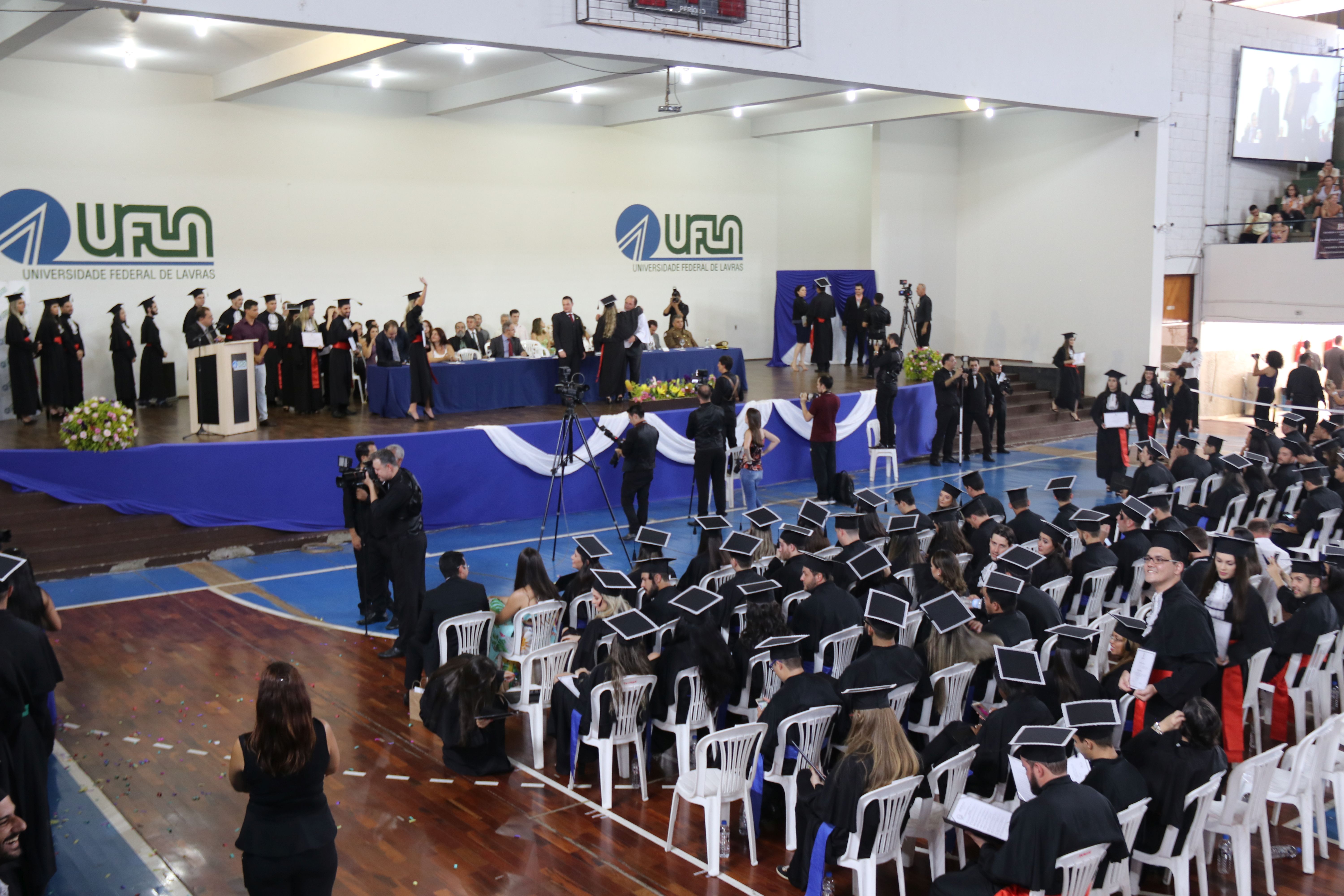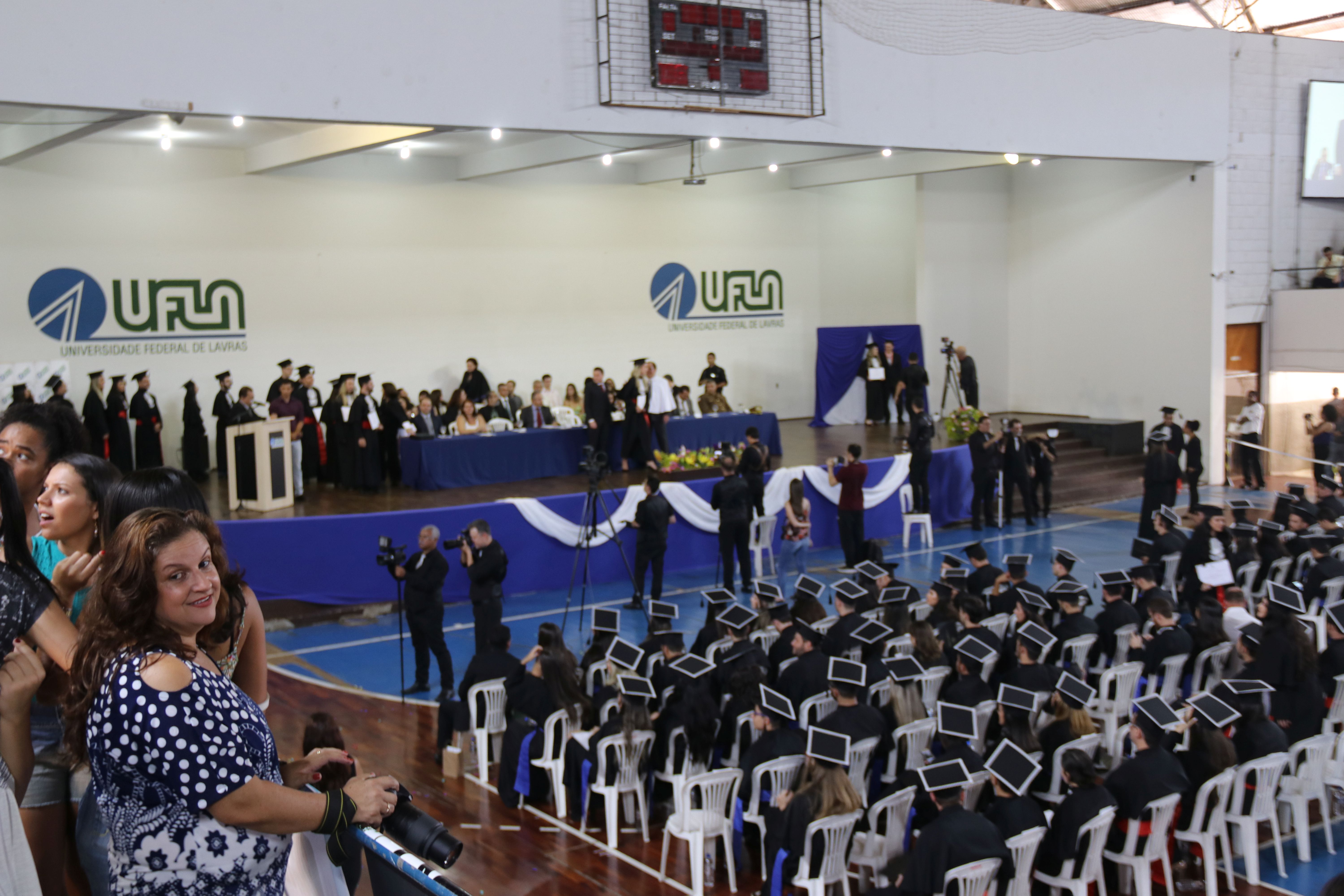 A sexta-feira (23/3) foi de celebração para a Universidade Federal de Lavras (UFLA) e para os 464 formandos que colaram grau durante sessão solene do Conselho Universitário (CUNI). A cerimônia foi realizada no ginásio poliesportivo da instituição, em dois horários – às 14h e às 18h. A outorga de grau garantiu o ingresso no mercado de trabalho de profissionais que concluíram sua formação em 24 cursos.