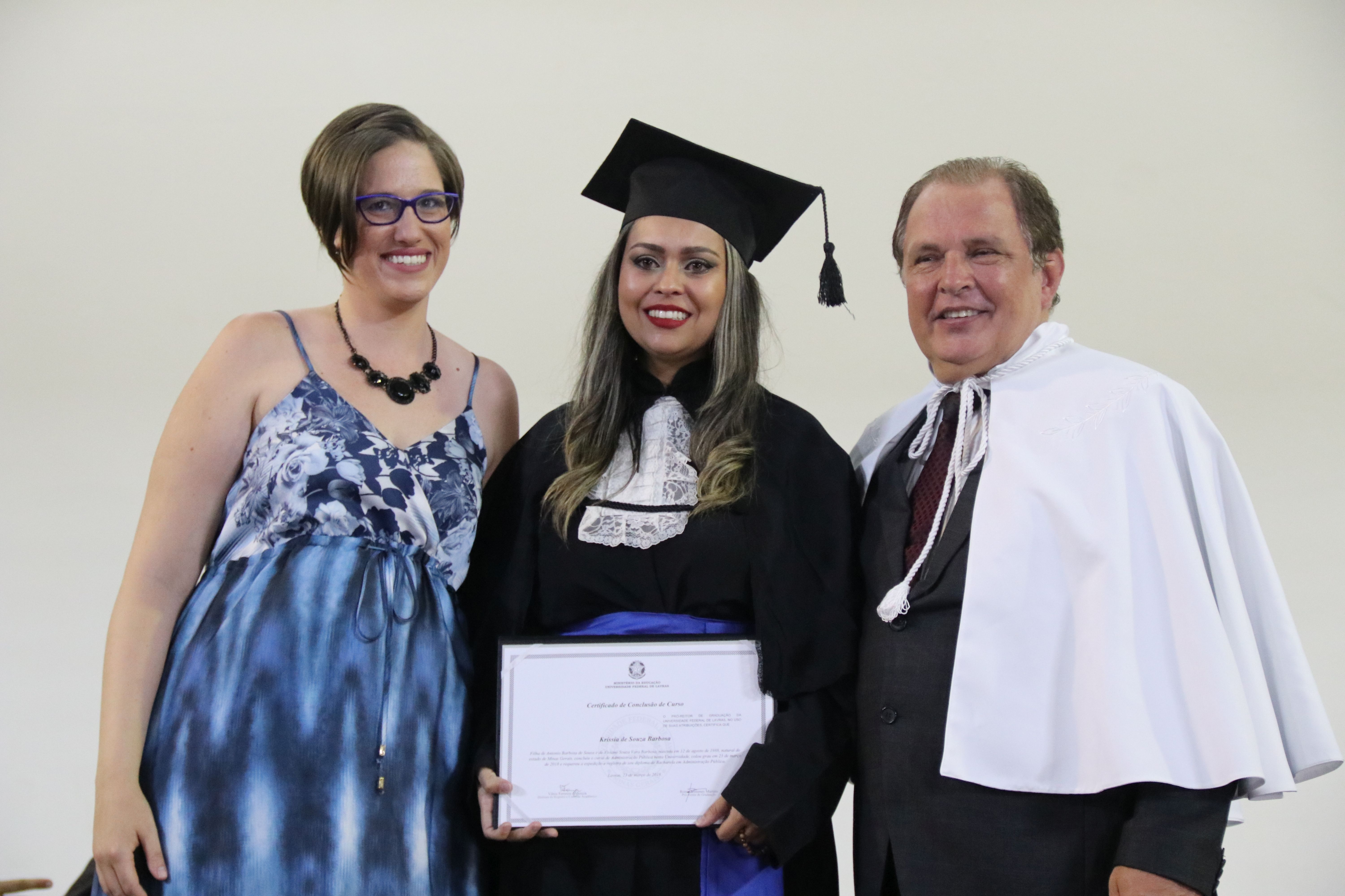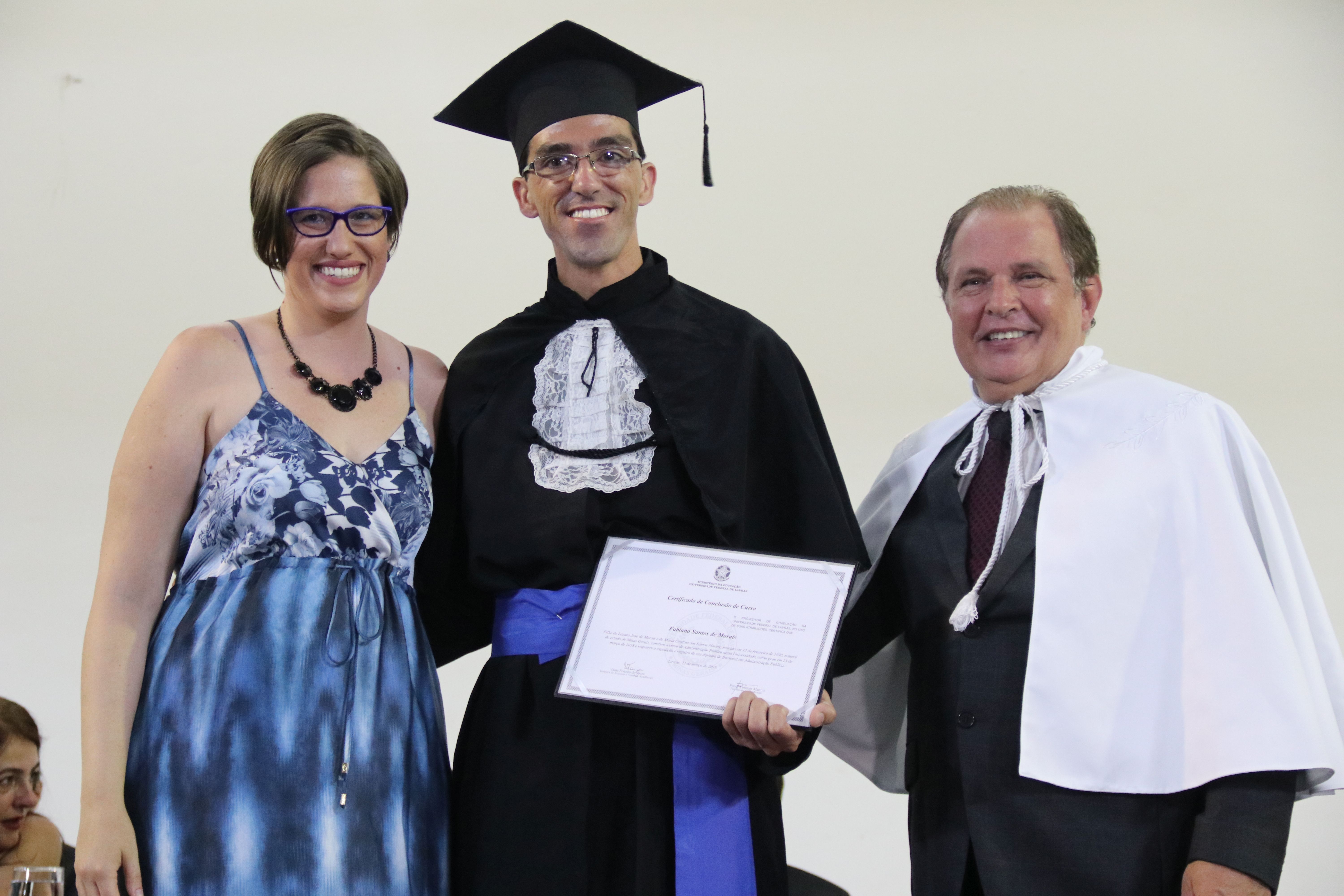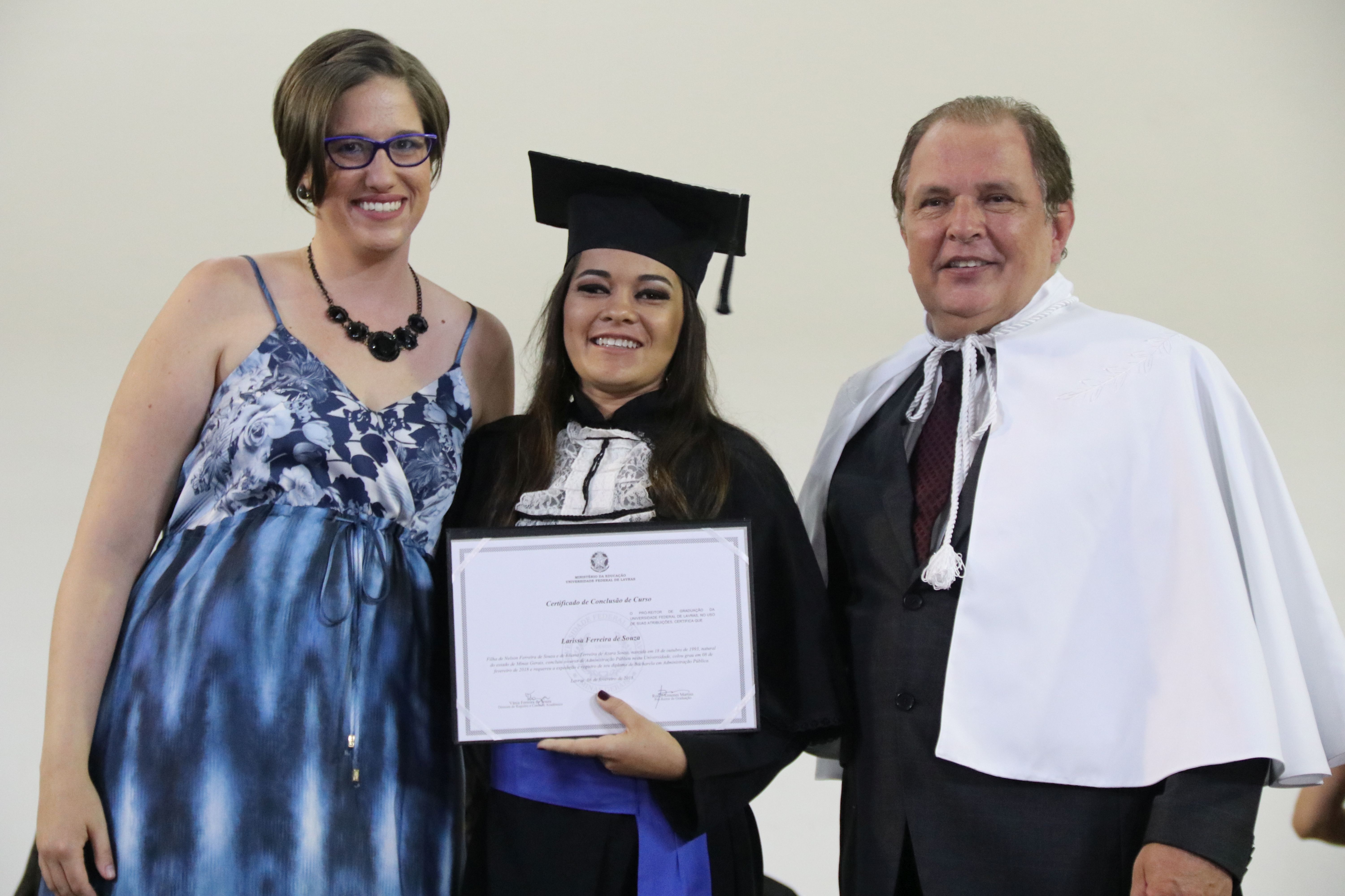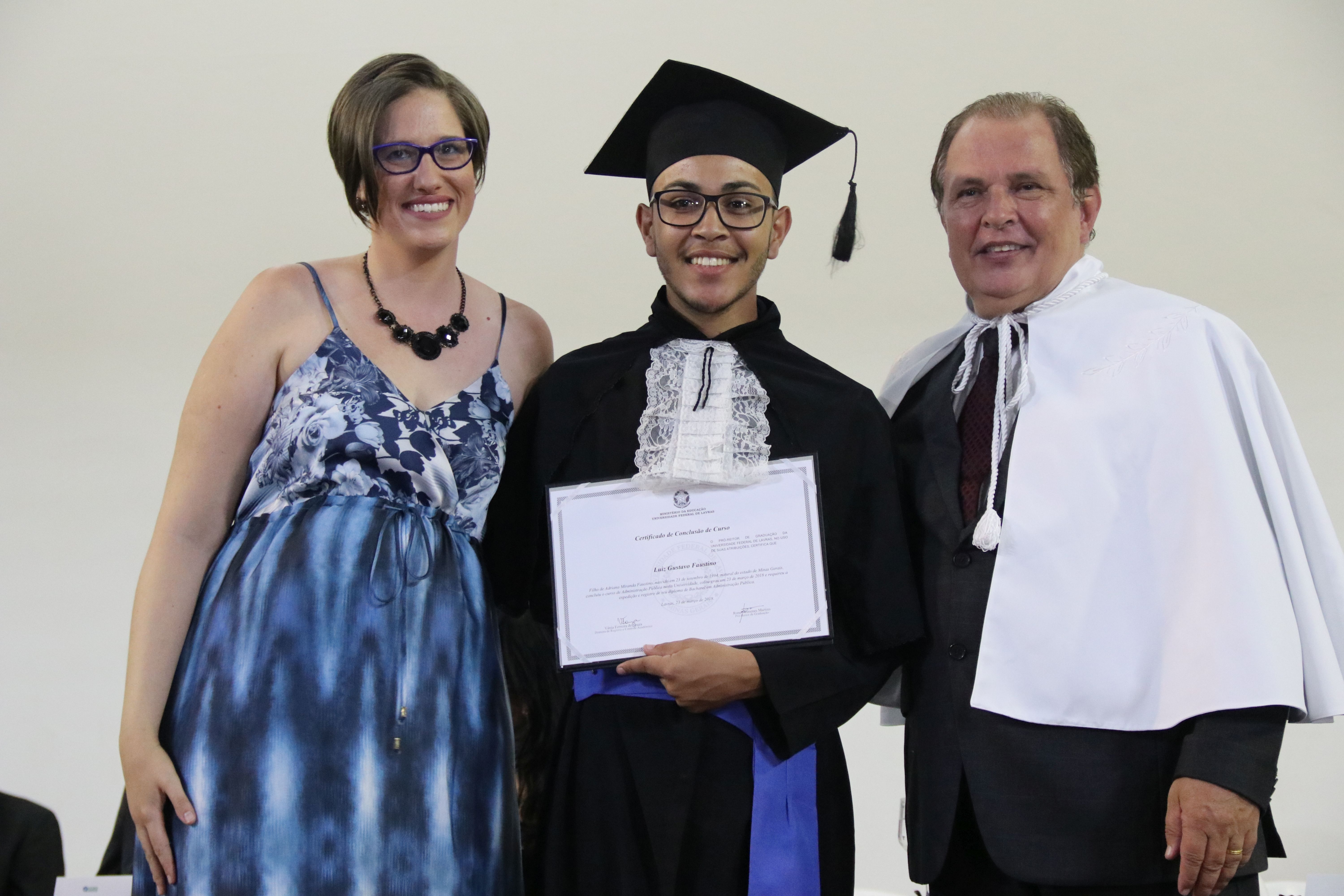 As solenidades foram presididas pelo reitor e presidente do CUNI, professor José Roberto Soares Scolforo. Após fazer referência à tradução das cerimônias na Língua Brasileira de Sinais (Libras), manifestou orgulho pelo fato de a UFLA trabalhar primando pela inclusão e pelo respeito às diversidades. Para os formandos, reforçou a importância do juramento que fizeram, especialmente pelo compromisso com a ética, a justiça e a defesa da liberdade e da paz. “Vocês tiveram a felicidade de se formar sob o investimento do povo brasileiro. Por isso devem se empenhar em cumprir esses compromissos carregados de valores que são hoje tão necessários à sociedade brasileira”. Scolforo também incentivou os novos profissionais a seguirem em frente: “vençam o medo deste momento posterior à conclusão do curso e lutem, busquem alcançar seus sonhos, sejam cidadãos de valor, pratiquem solidariedade e continuem a caminhada com garra e persistência, sempre respeitando as diferenças”.