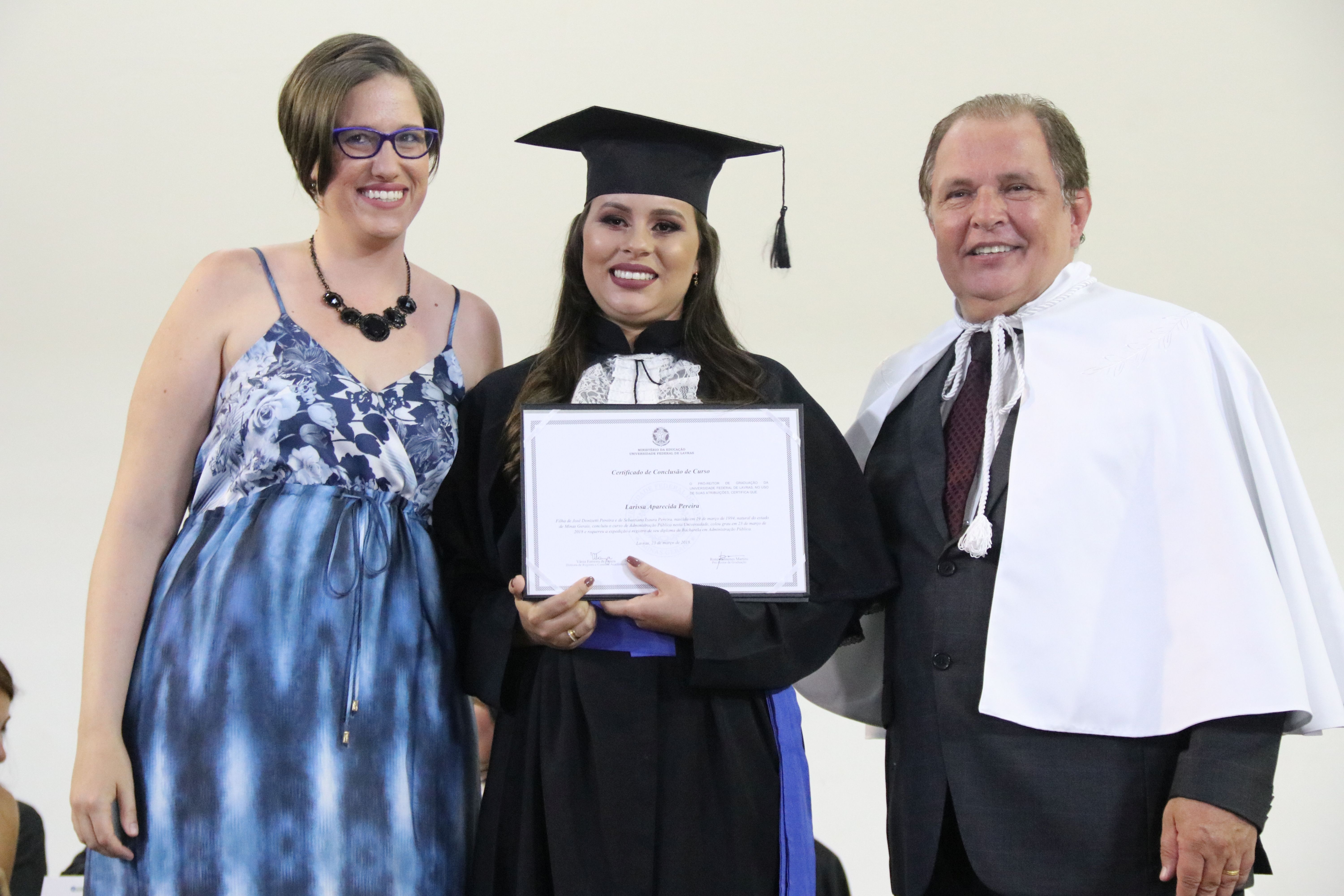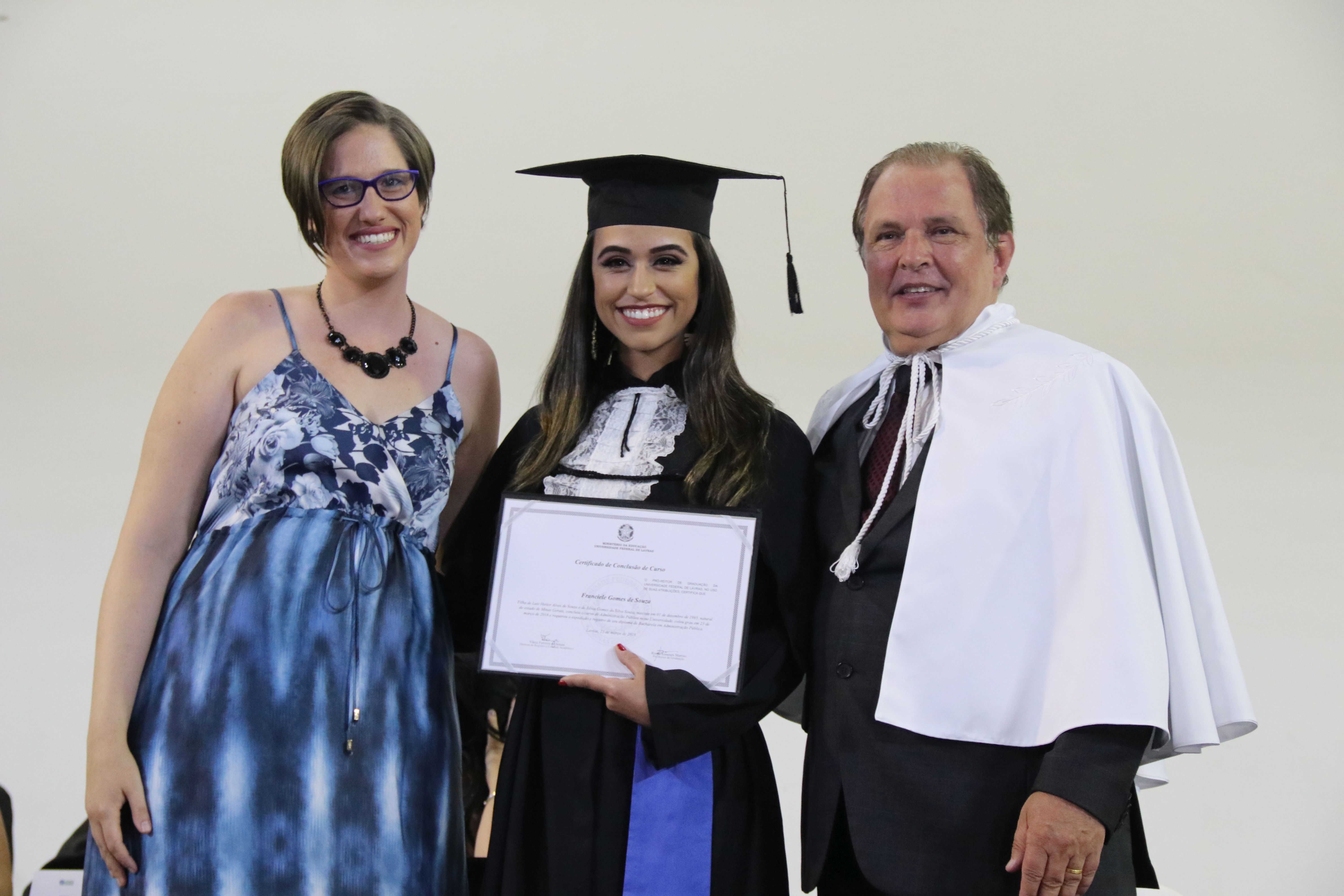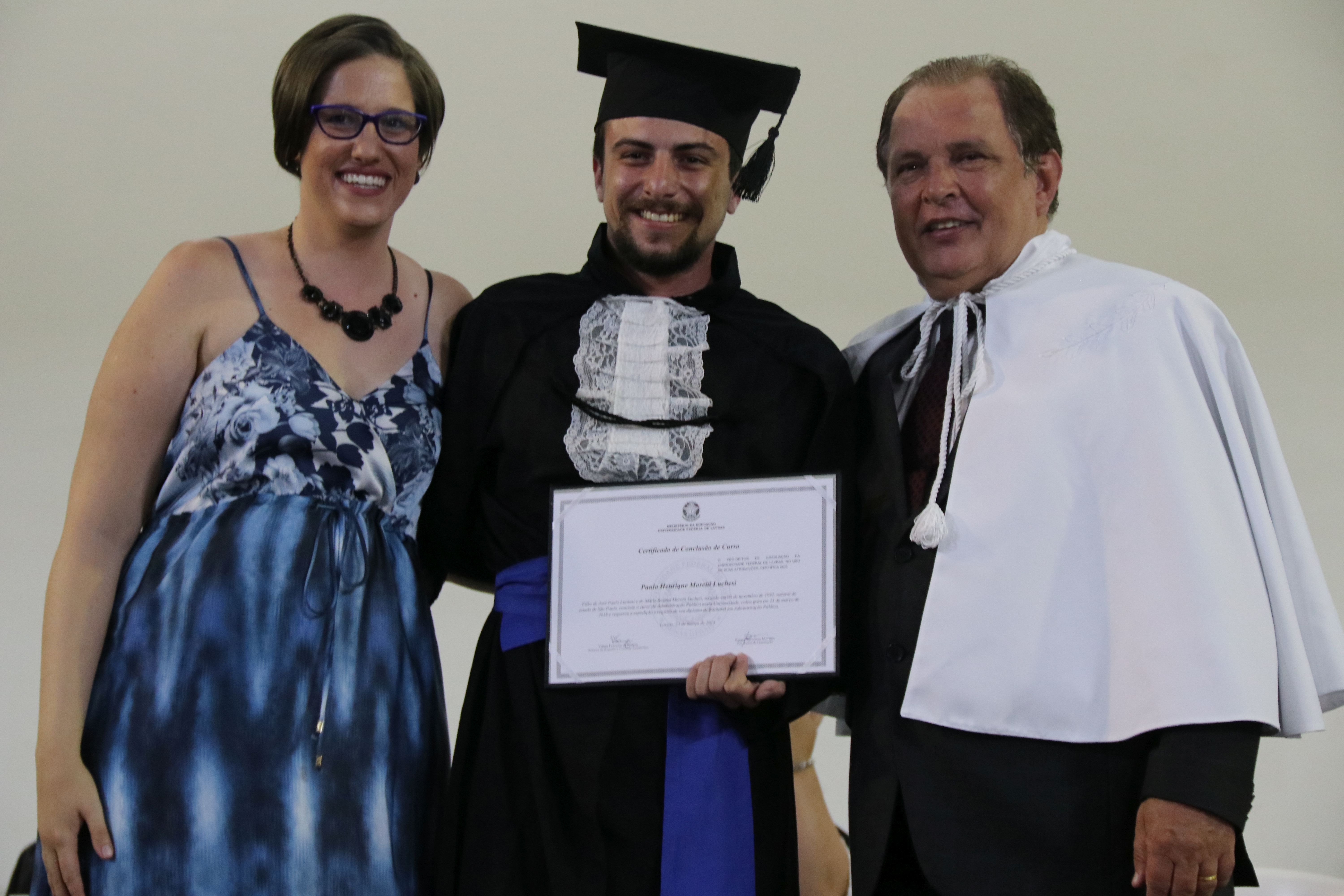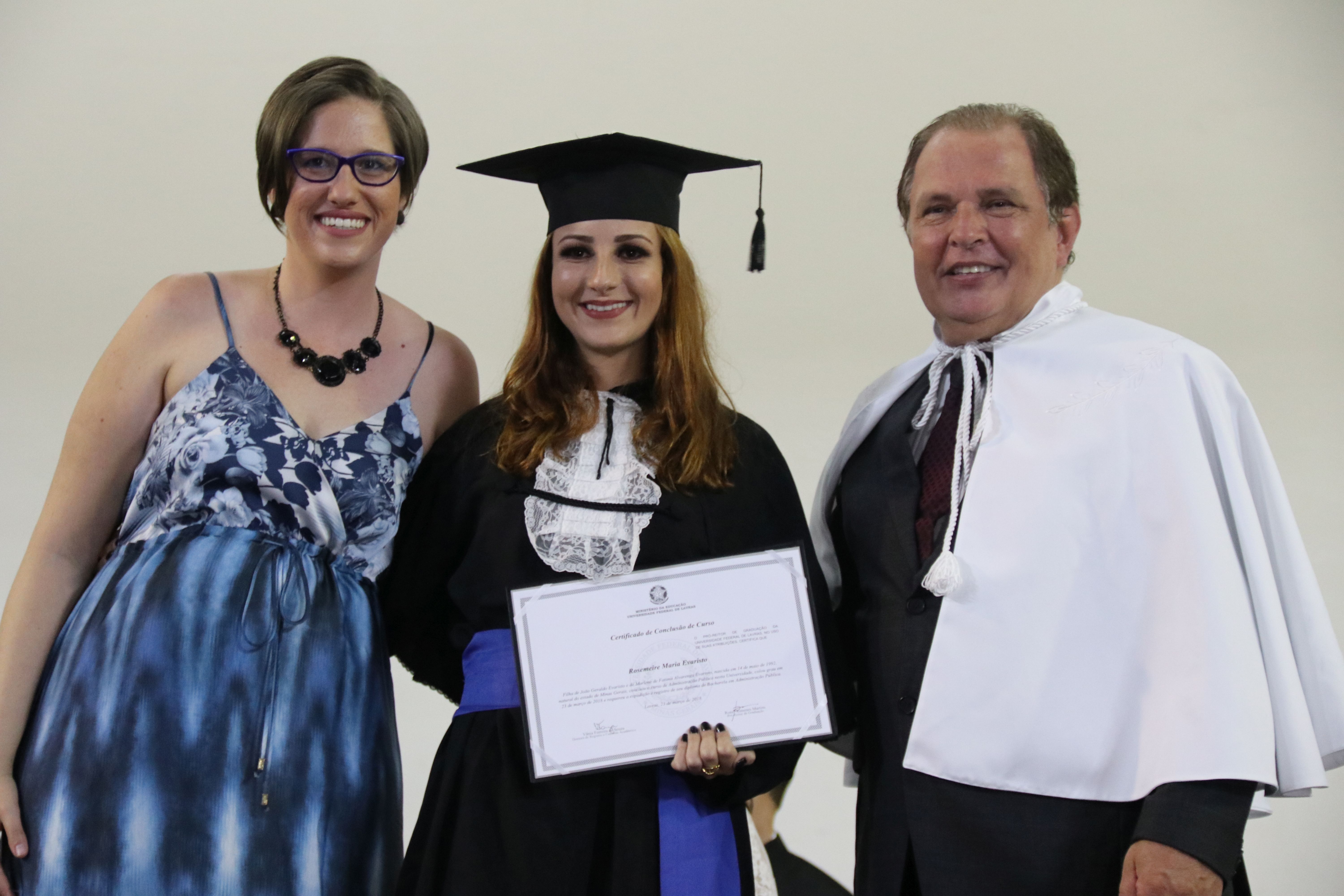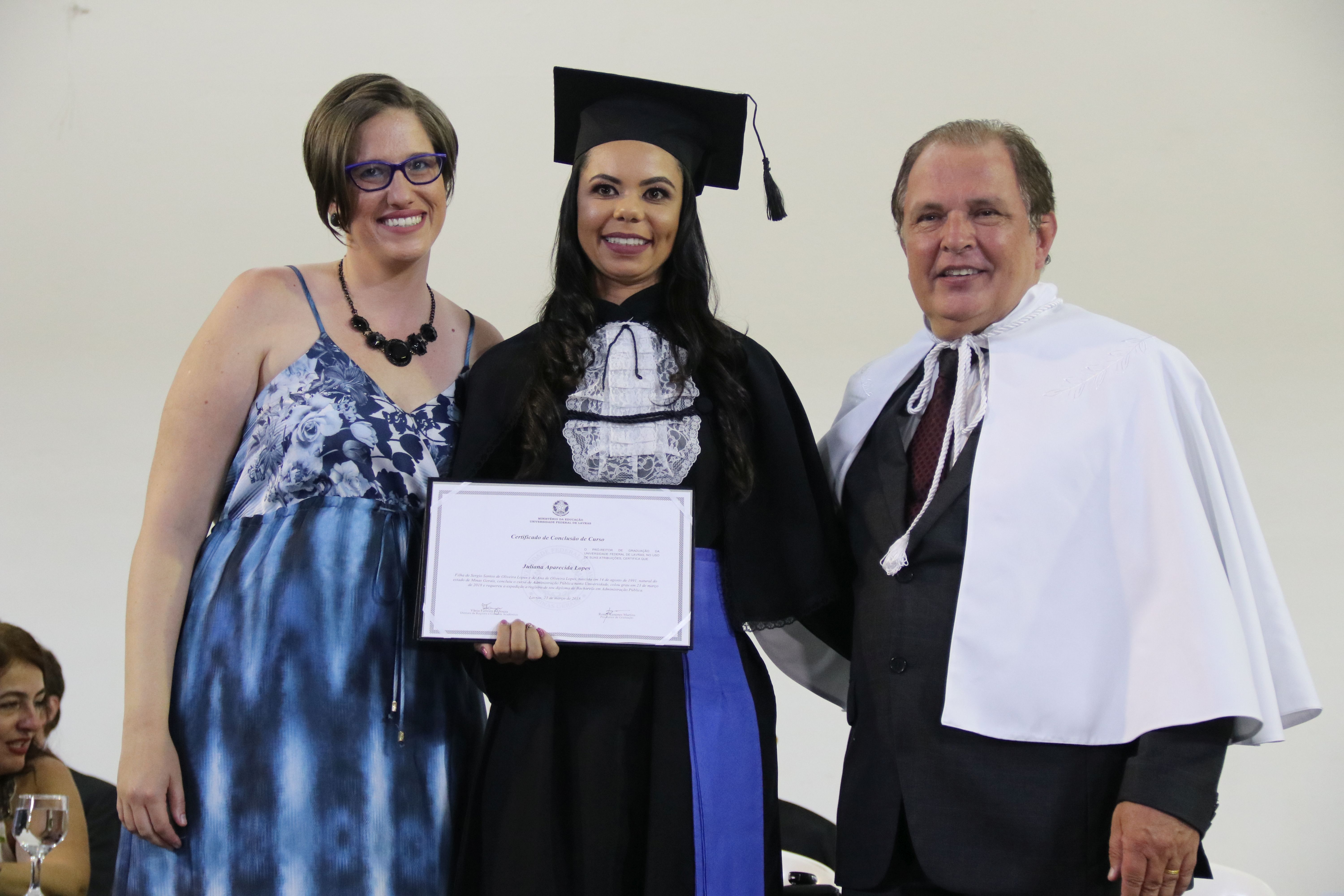 As solenidades foram presididas pelo reitor e presidente do CUNI, professor José Roberto Soares Scolforo. Após fazer referência à tradução das cerimônias na Língua Brasileira de Sinais (Libras), manifestou orgulho pelo fato de a UFLA trabalhar primando pela inclusão e pelo respeito às diversidades. Para os formandos, reforçou a importância do juramento que fizeram, especialmente pelo compromisso com a ética, a justiça e a defesa da liberdade e da paz. “Vocês tiveram a felicidade de se formar sob o investimento do povo brasileiro. Por isso devem se empenhar em cumprir esses compromissos carregados de valores que são hoje tão necessários à sociedade brasileira”. Scolforo também incentivou os novos profissionais a seguirem em frente: “vençam o medo deste momento posterior à conclusão do curso e lutem, busquem alcançar seus sonhos, sejam cidadãos de valor, pratiquem solidariedade e continuem a caminhada com garra e persistência, sempre respeitando as diferenças”.