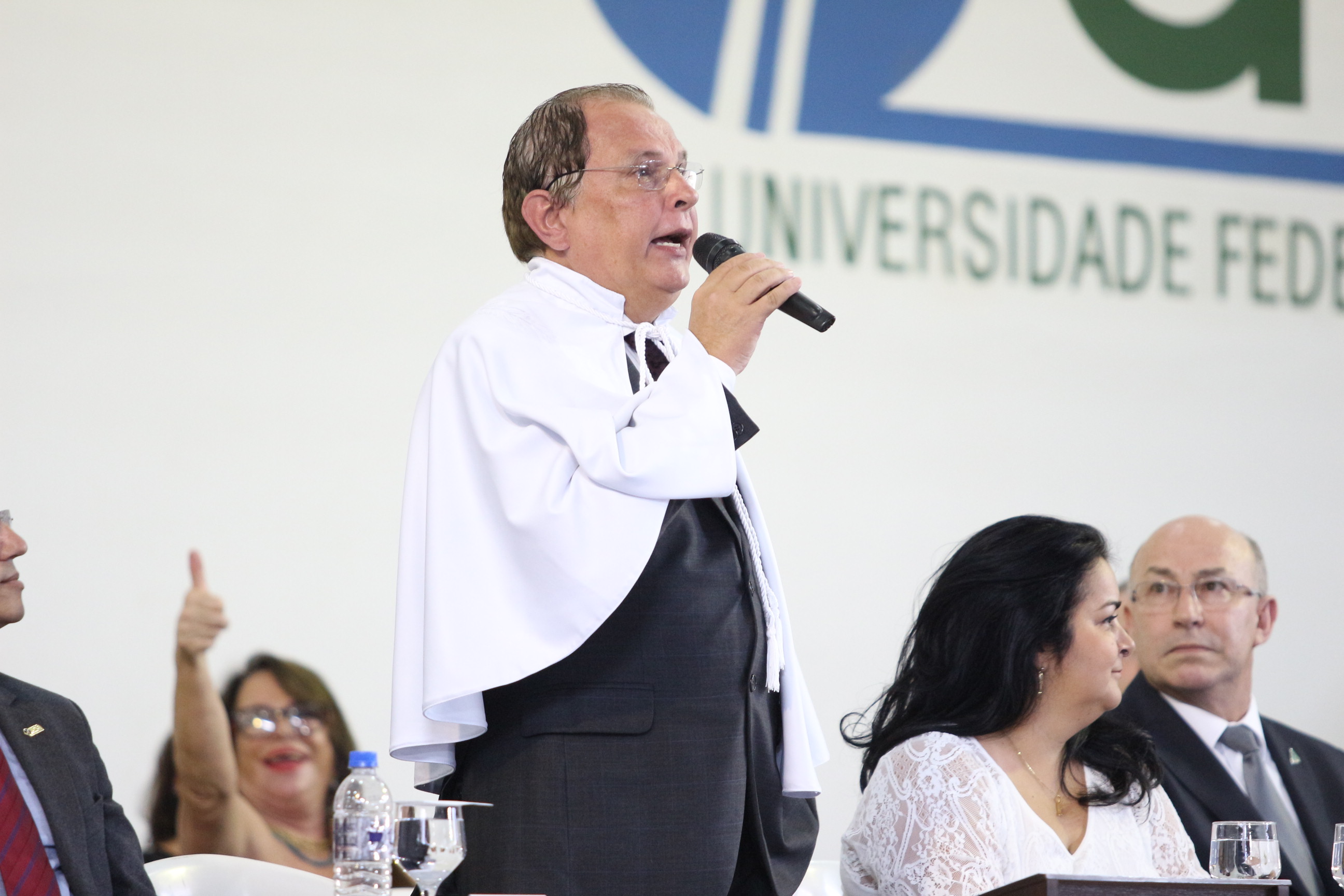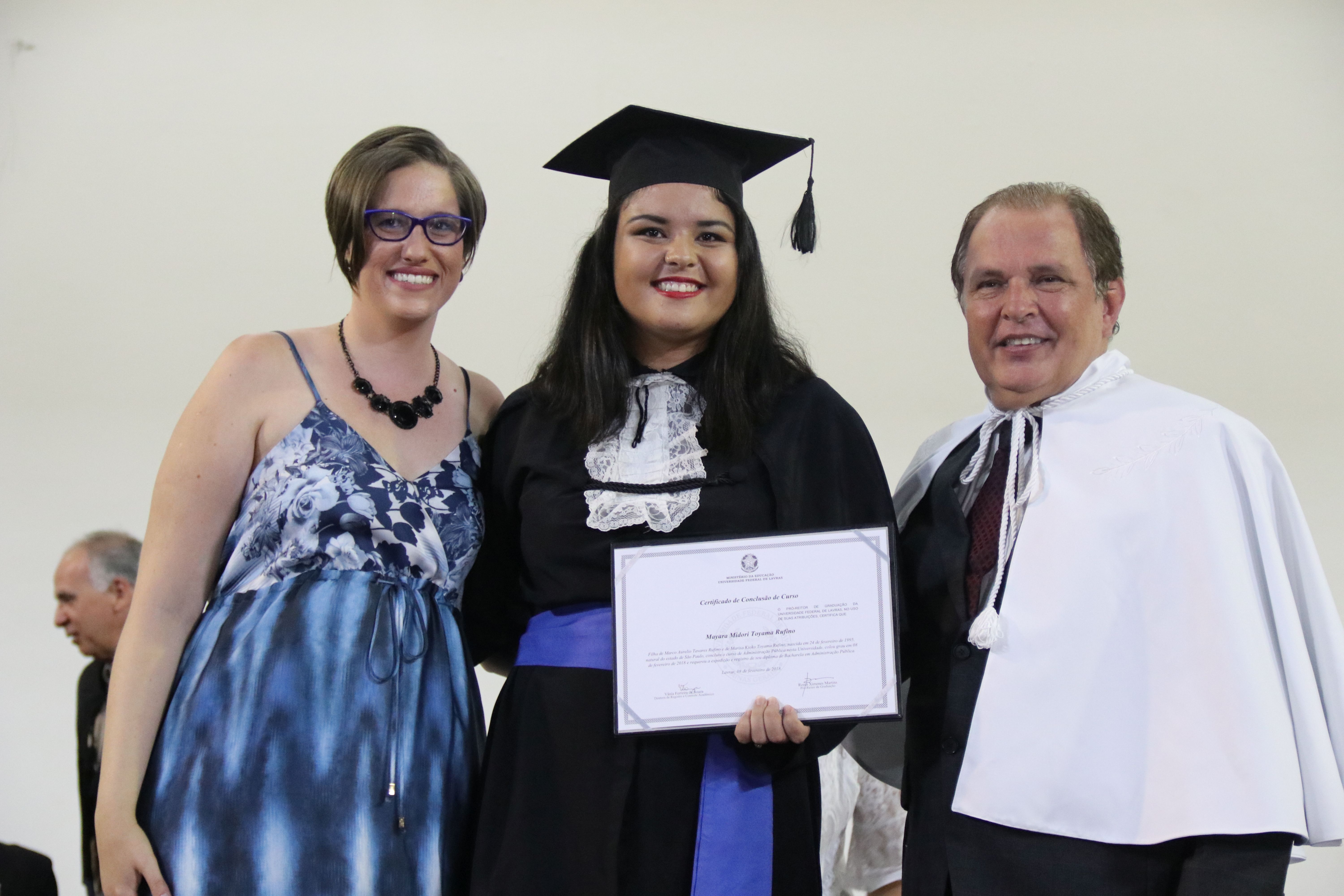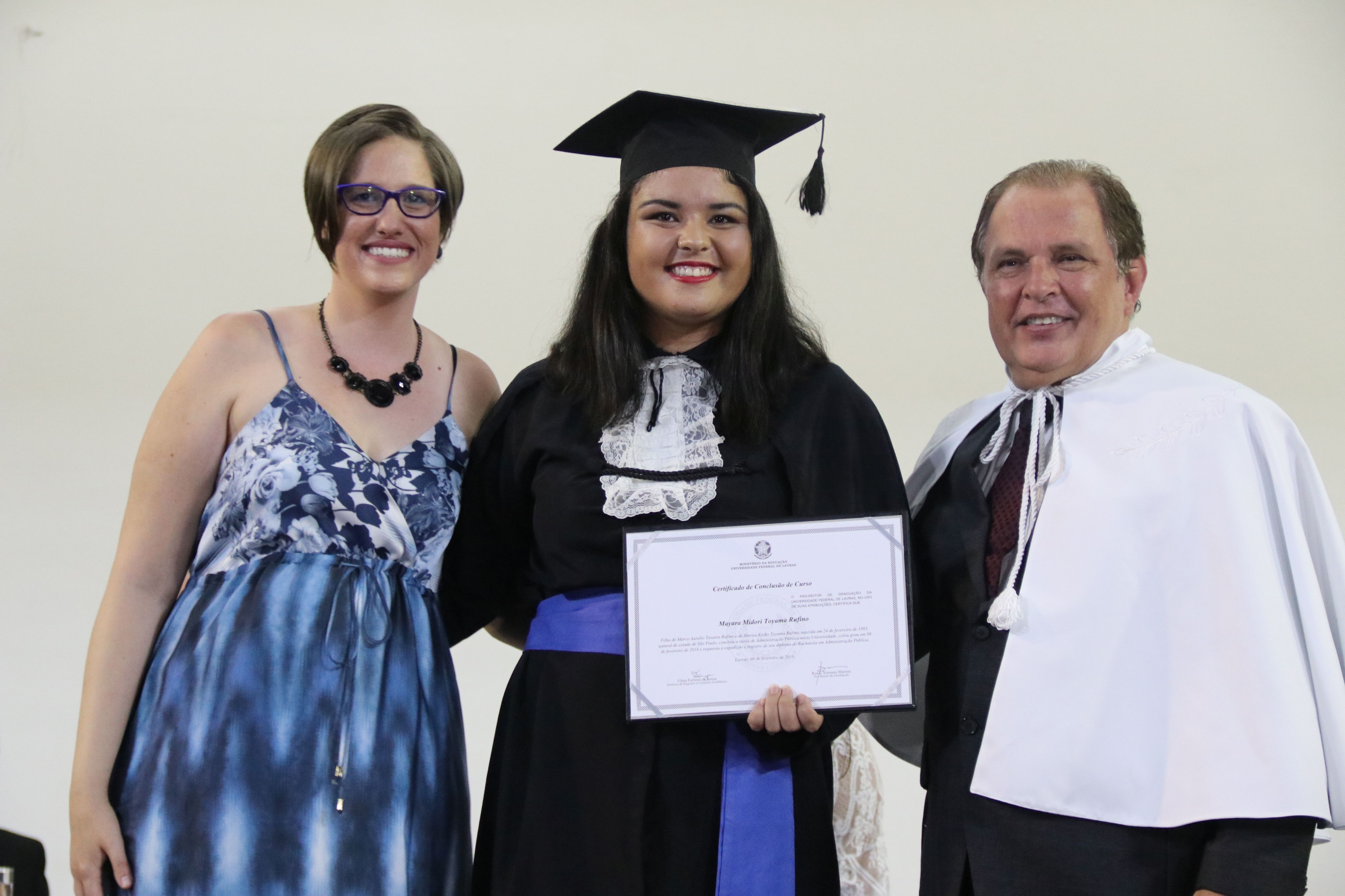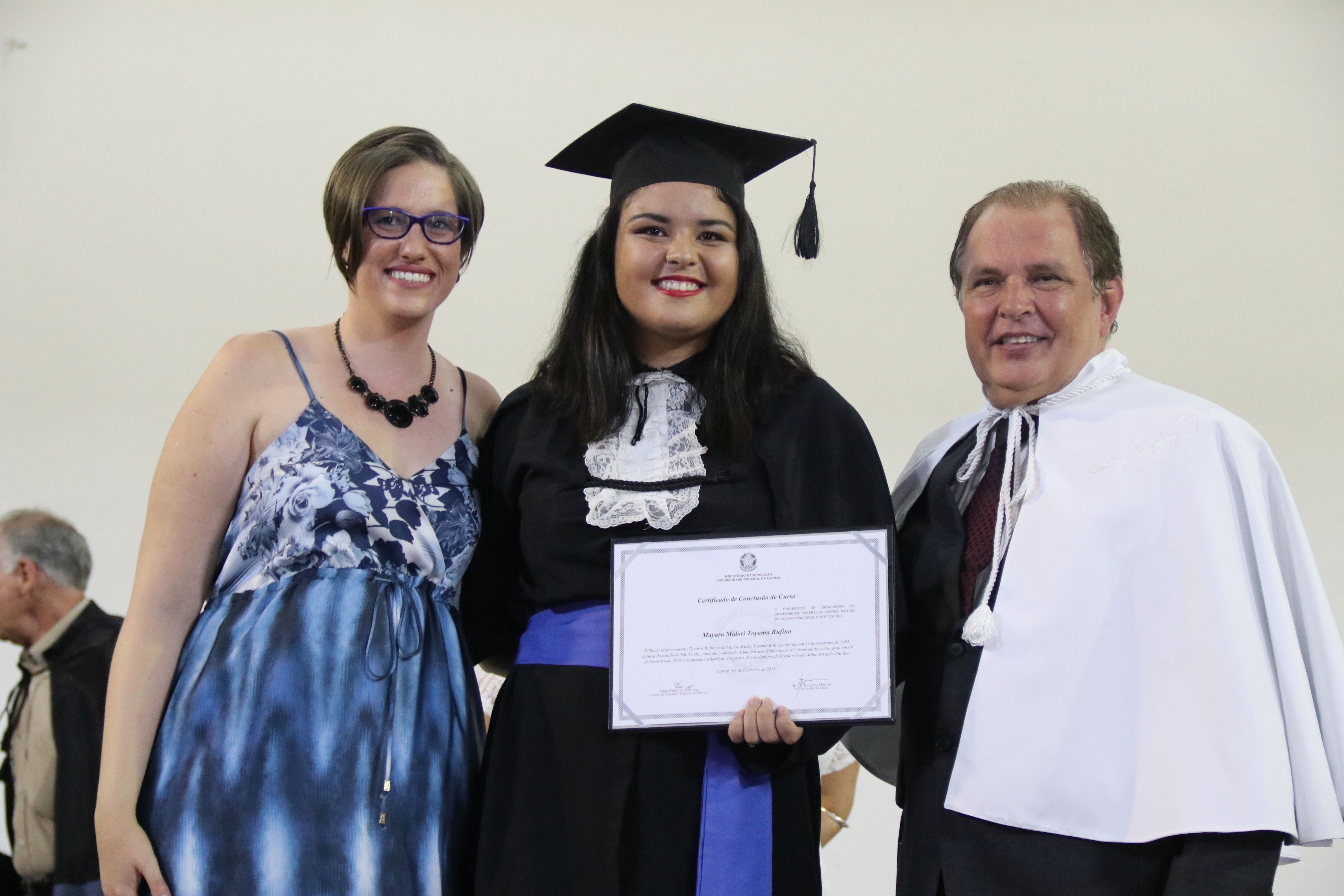 As solenidades foram presididas pelo reitor e presidente do CUNI, professor José Roberto Soares Scolforo. Após fazer referência à tradução das cerimônias na Língua Brasileira de Sinais (Libras), manifestou orgulho pelo fato de a UFLA trabalhar primando pela inclusão e pelo respeito às diversidades. Para os formandos, reforçou a importância do juramento que fizeram, especialmente pelo compromisso com a ética, a justiça e a defesa da liberdade e da paz. “Vocês tiveram a felicidade de se formar sob o investimento do povo brasileiro. Por isso devem se empenhar em cumprir esses compromissos carregados de valores que são hoje tão necessários à sociedade brasileira”. Scolforo também incentivou os novos profissionais a seguirem em frente: “vençam o medo deste momento posterior à conclusão do curso e lutem, busquem alcançar seus sonhos, sejam cidadãos de valor, pratiquem solidariedade e continuem a caminhada com garra e persistência, sempre respeitando as diferenças”.