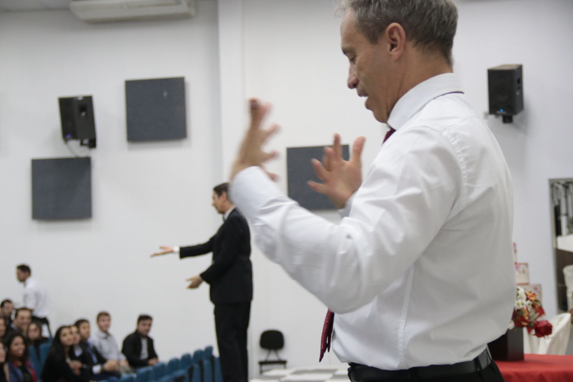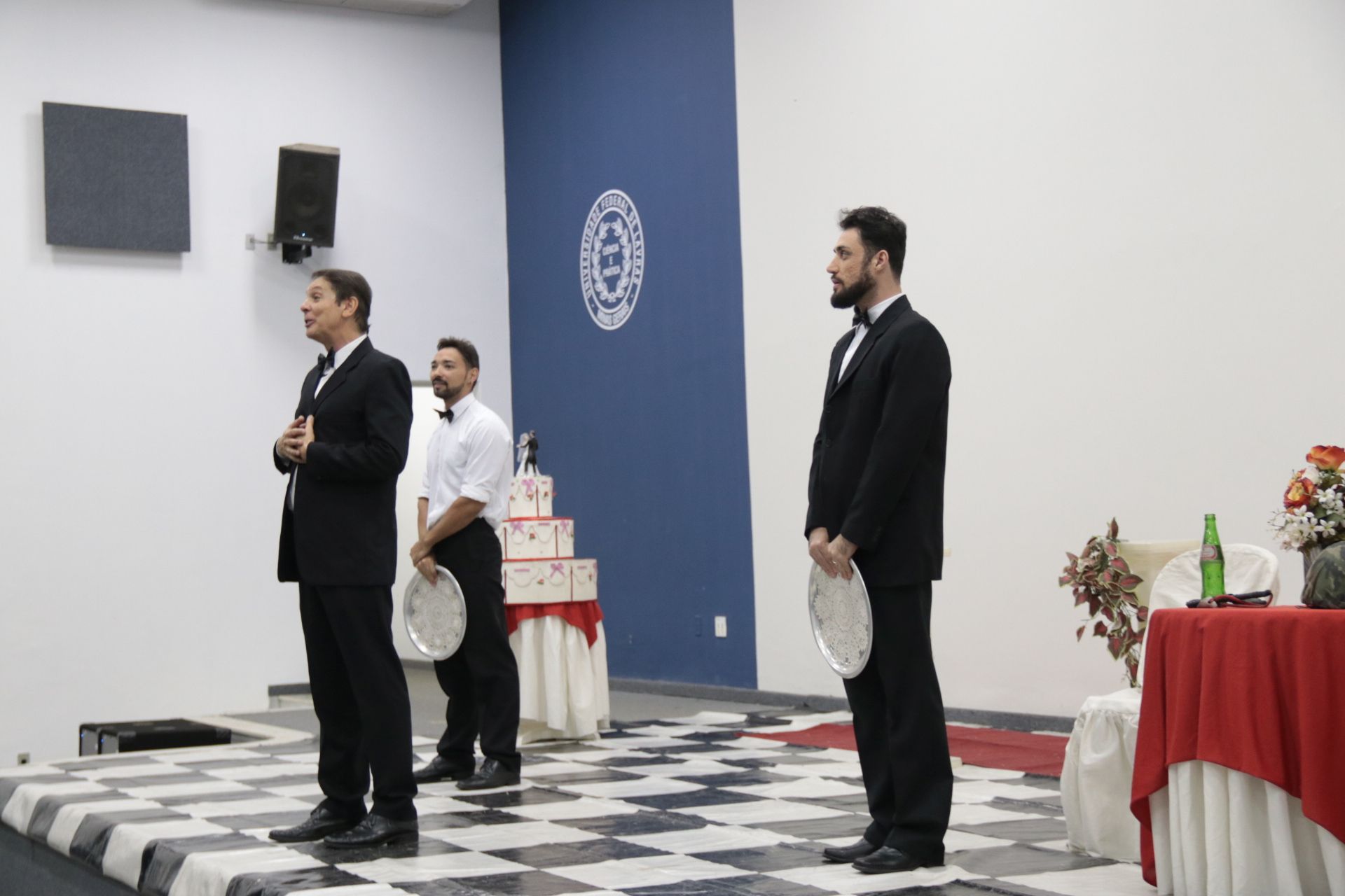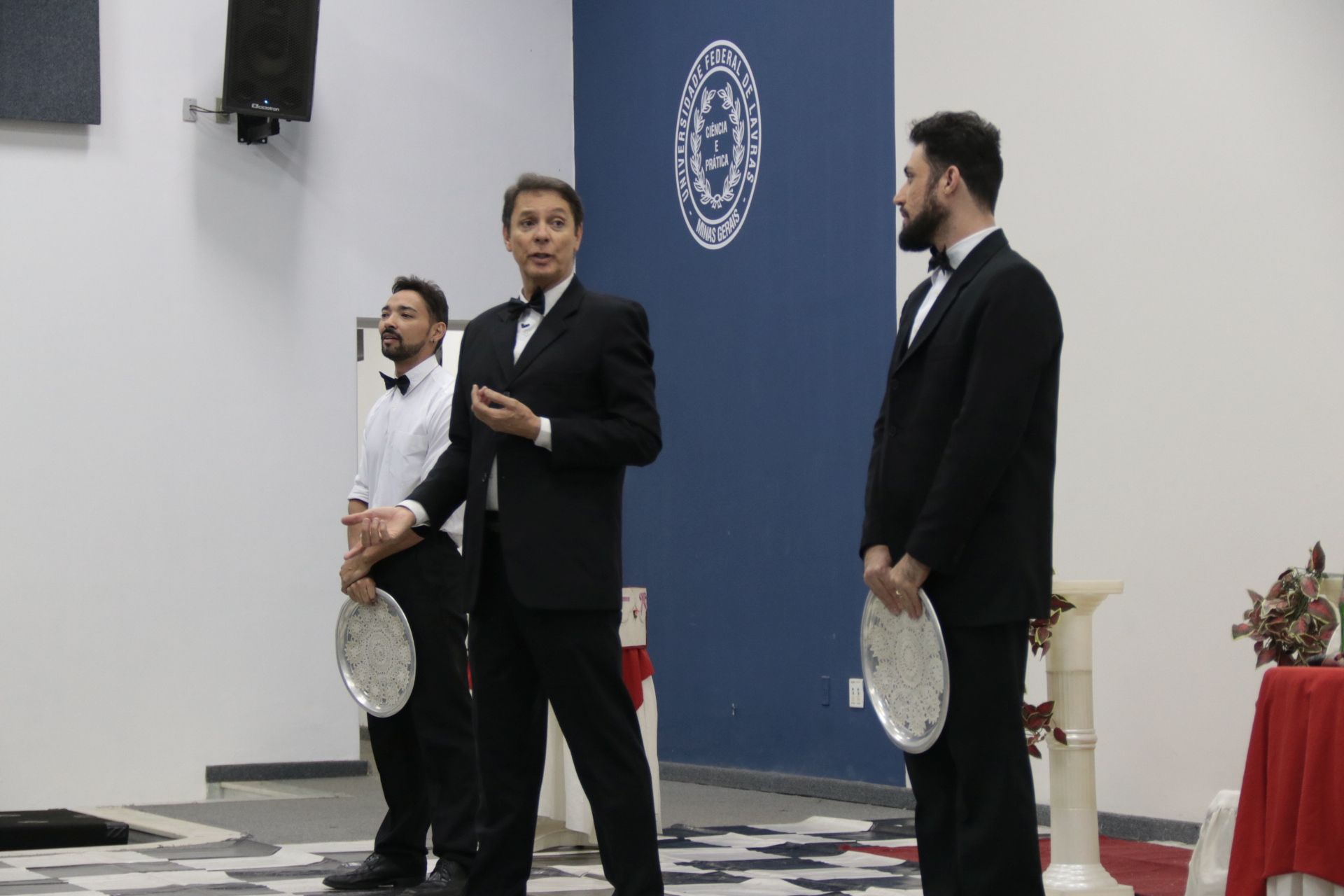 A noite fria desse domingo (20/5) foi aquecida pelo humor irreverente da peça “Como sobreviver em festas e recepções com buffet escasso”, produzida e interpretada por Carlos Nunes. O Salão de Convenções da Universidade Federal de Lavras (UFLA) foi palco da exibição que tem 18 anos e, que pela terceira vez foi acessível em Libras “É um grande prazer fazer o espetáculo e saber que ele está sendo traduzido todo tempo para que as pessoas possam aproveitar e rir junto com a gente”, comentou Carlos.