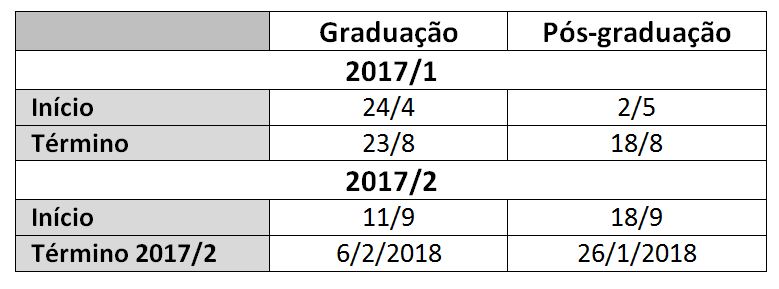 O Conselho de Ensino, Pesquisa e Extensão (CEPE) aprovou nessa terça-feira (15/3) os calendários da graduação e da pós-graduação presenciais para o primeiro e o segundo período letivo de 2017.