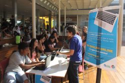 A equipe do Núcleo de Línguas (NucLi/UFLA) mobilizou a comunidade acadêmica no Centro de Convivência nessa terça-feira (6/6) para a inscrição no My English Online (MEO), curso disponibilizado gratuitamente pelo Programa Idiomas sem Fronteiras (IsF).