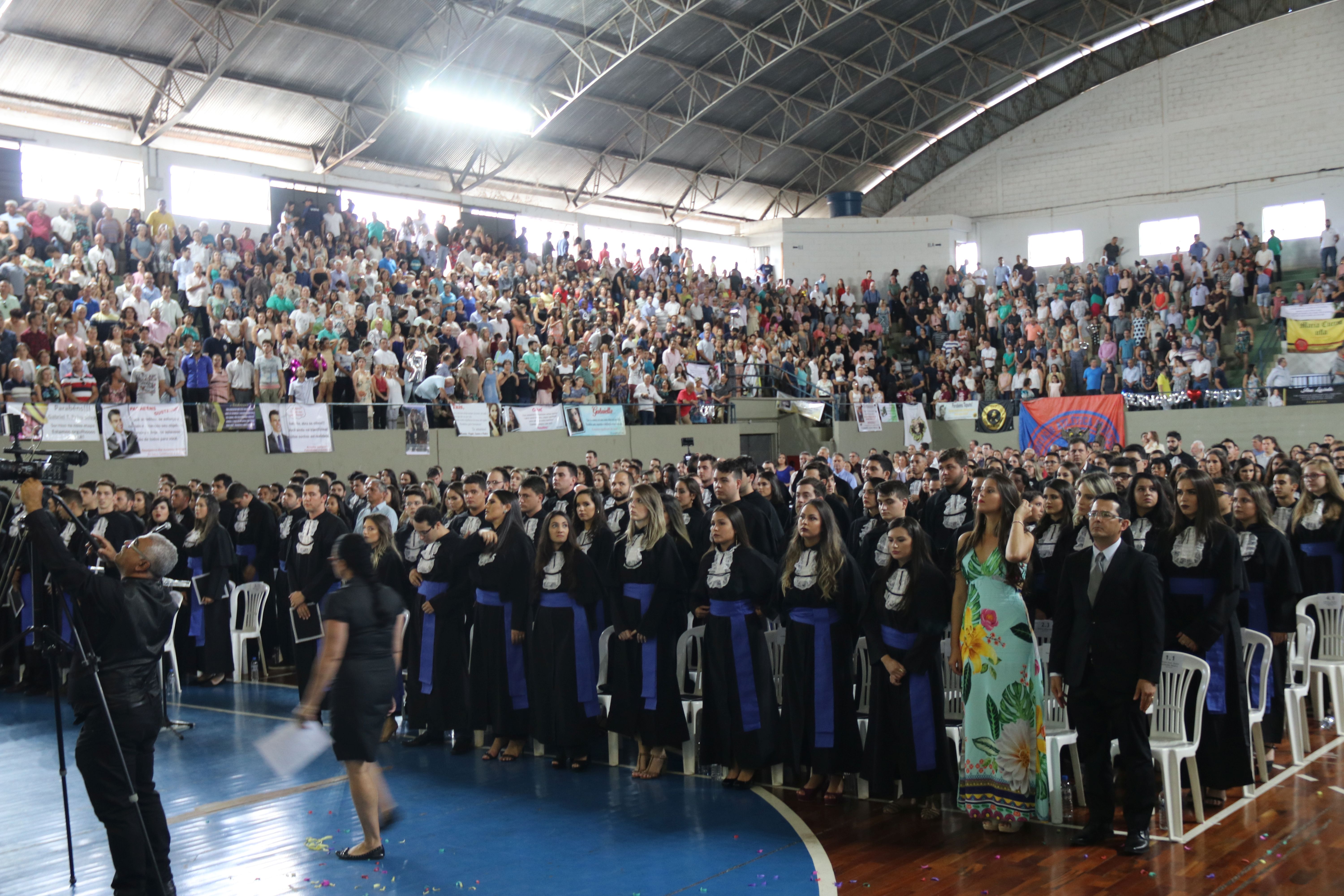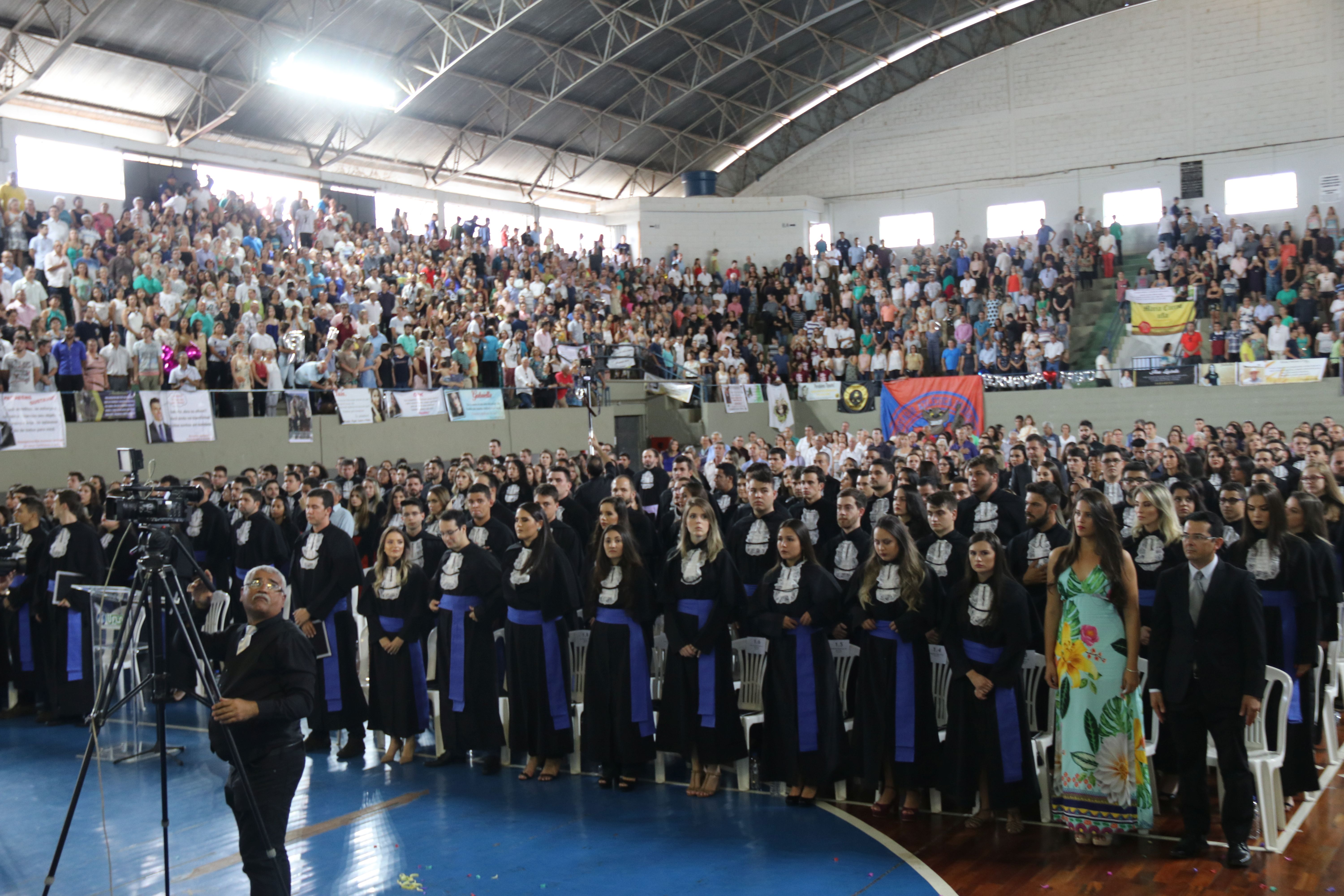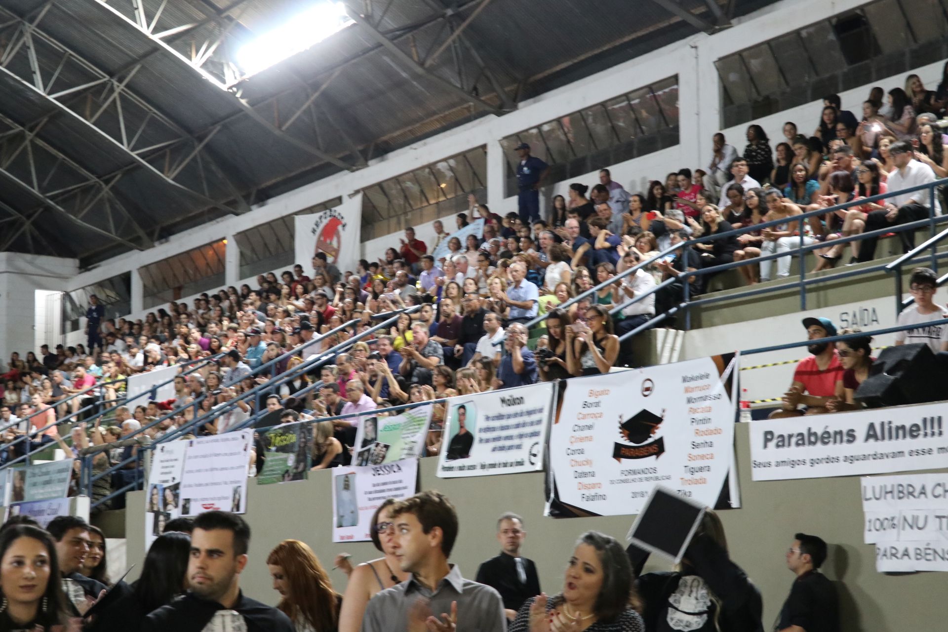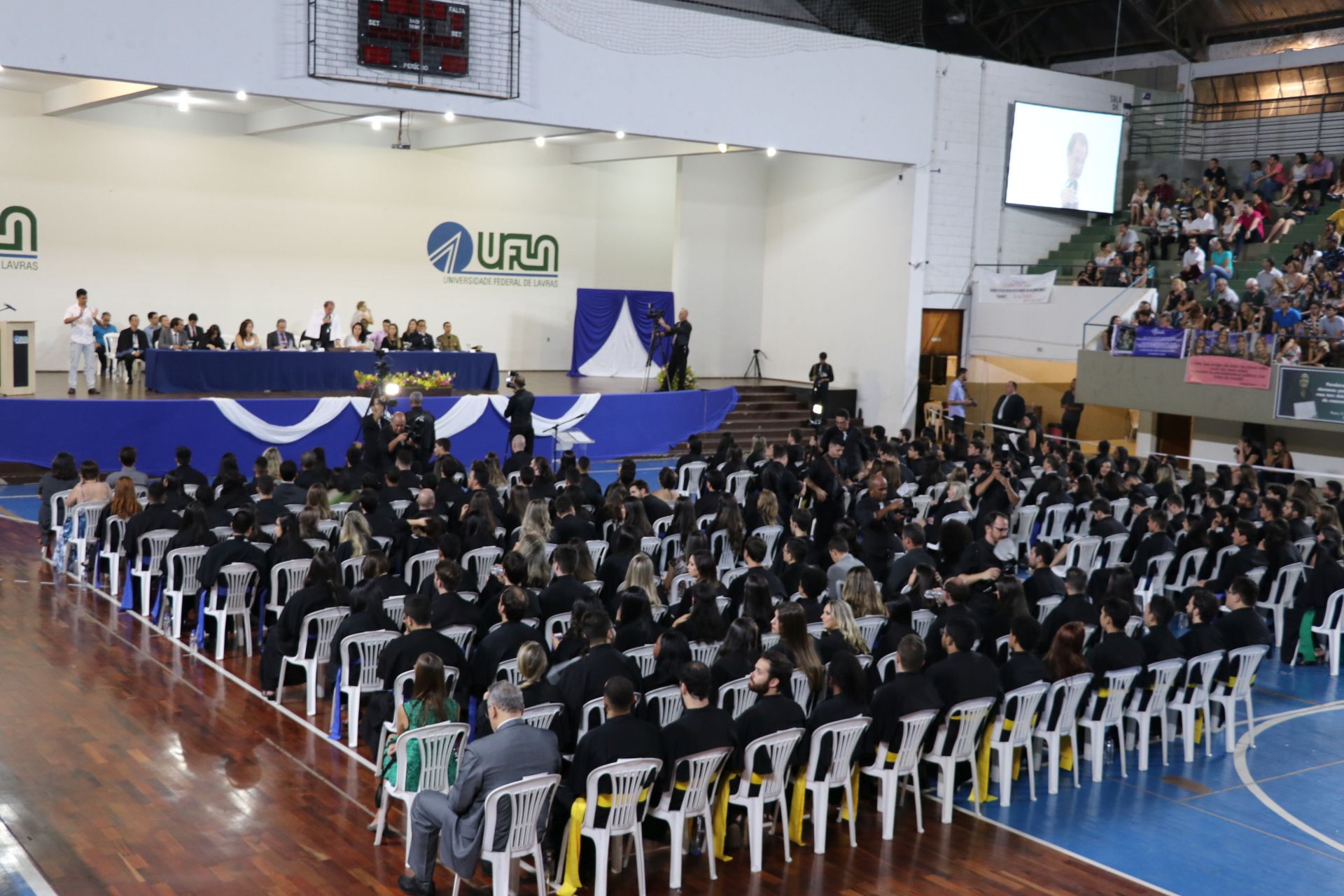 A sexta-feira (23/3) foi de celebração para a Universidade Federal de Lavras (UFLA) e para os 464 formandos que colaram grau durante sessão solene do Conselho Universitário (CUNI). A cerimônia foi realizada no ginásio poliesportivo da instituição, em dois horários – às 14h e às 18h. A outorga de grau garantiu o ingresso no mercado de trabalho de profissionais que concluíram sua formação em 24 cursos.