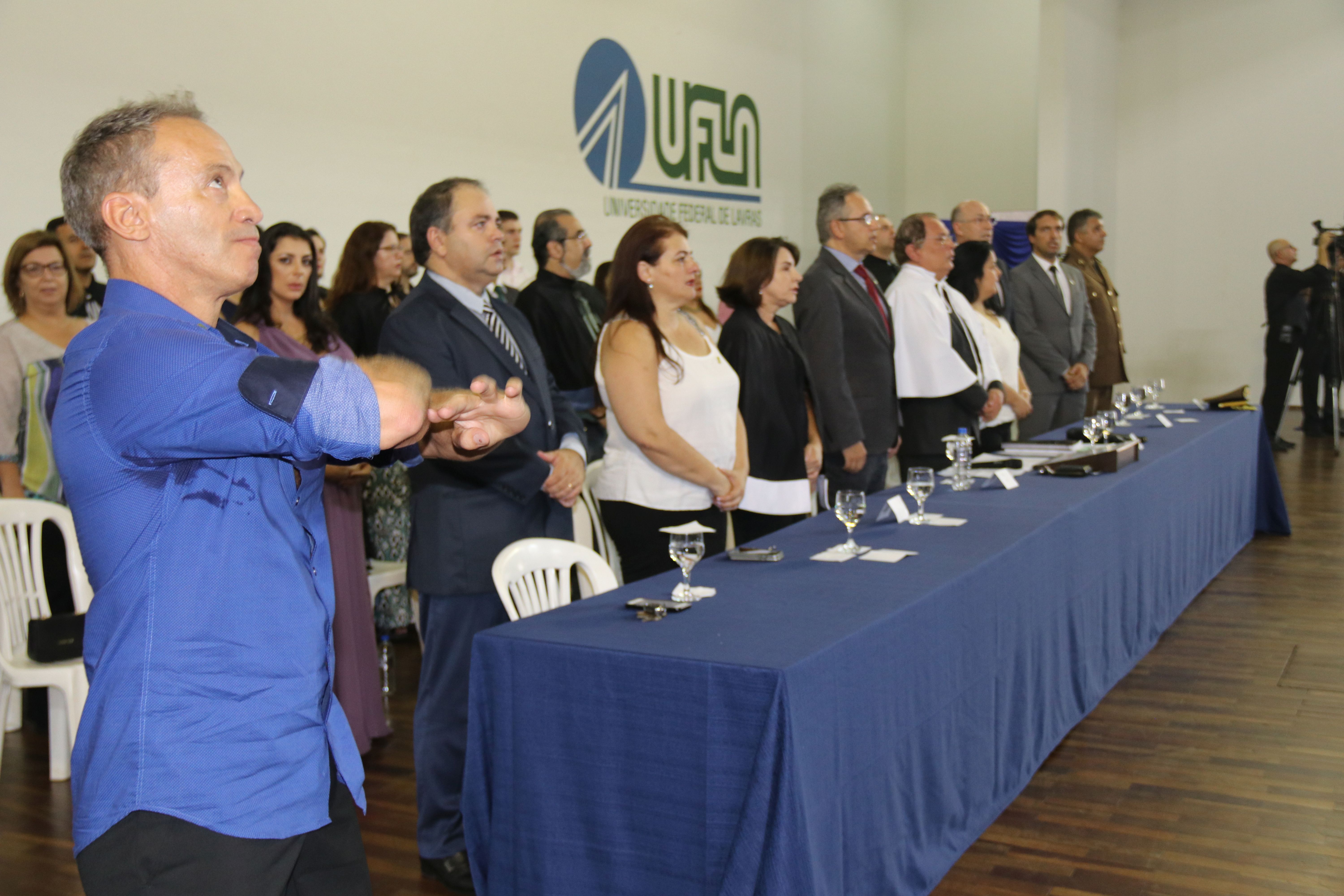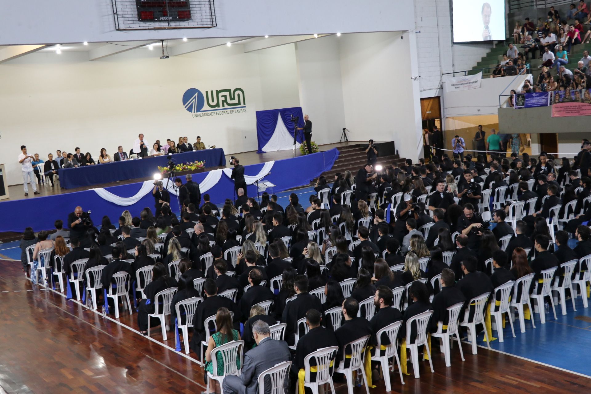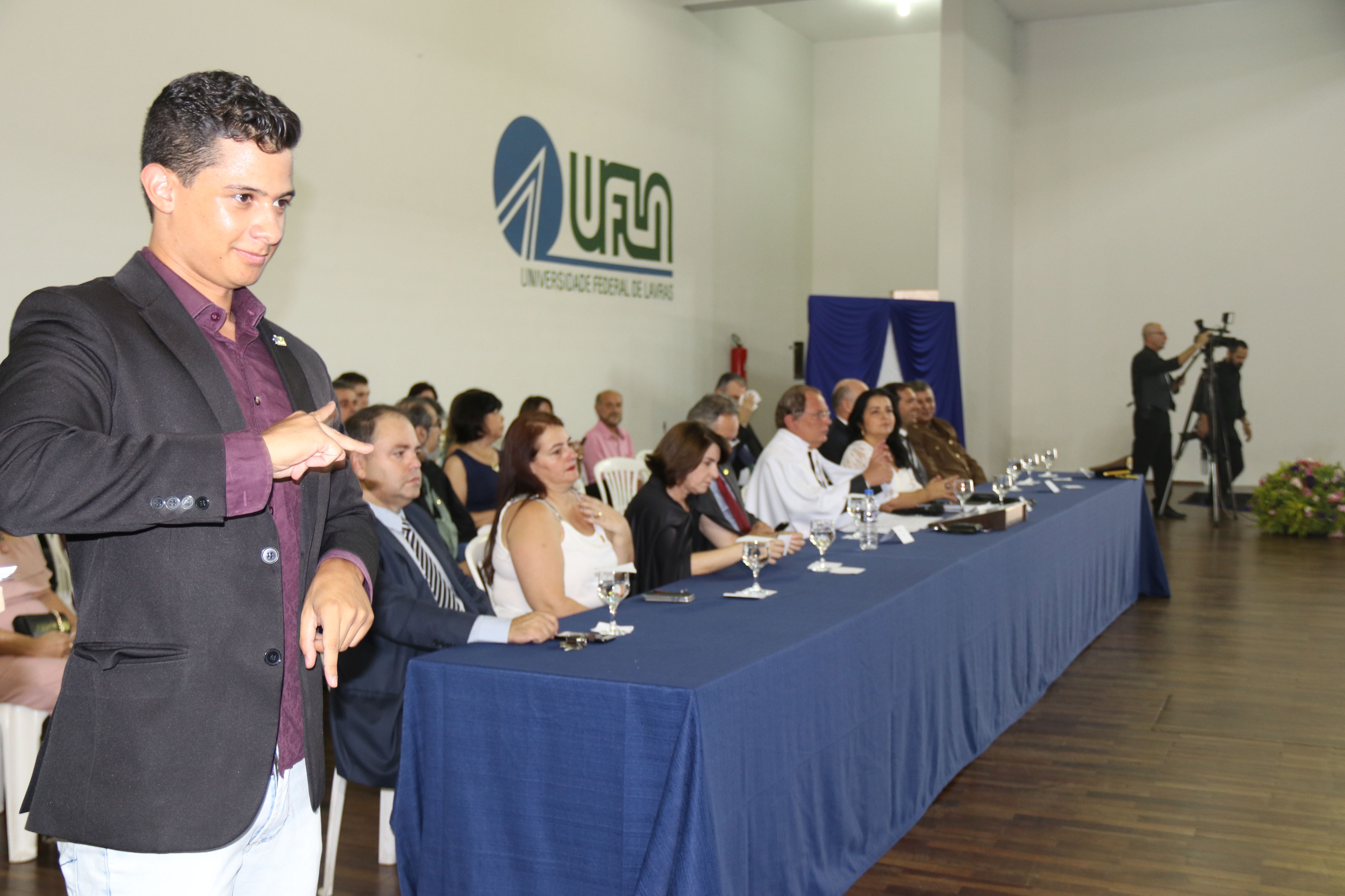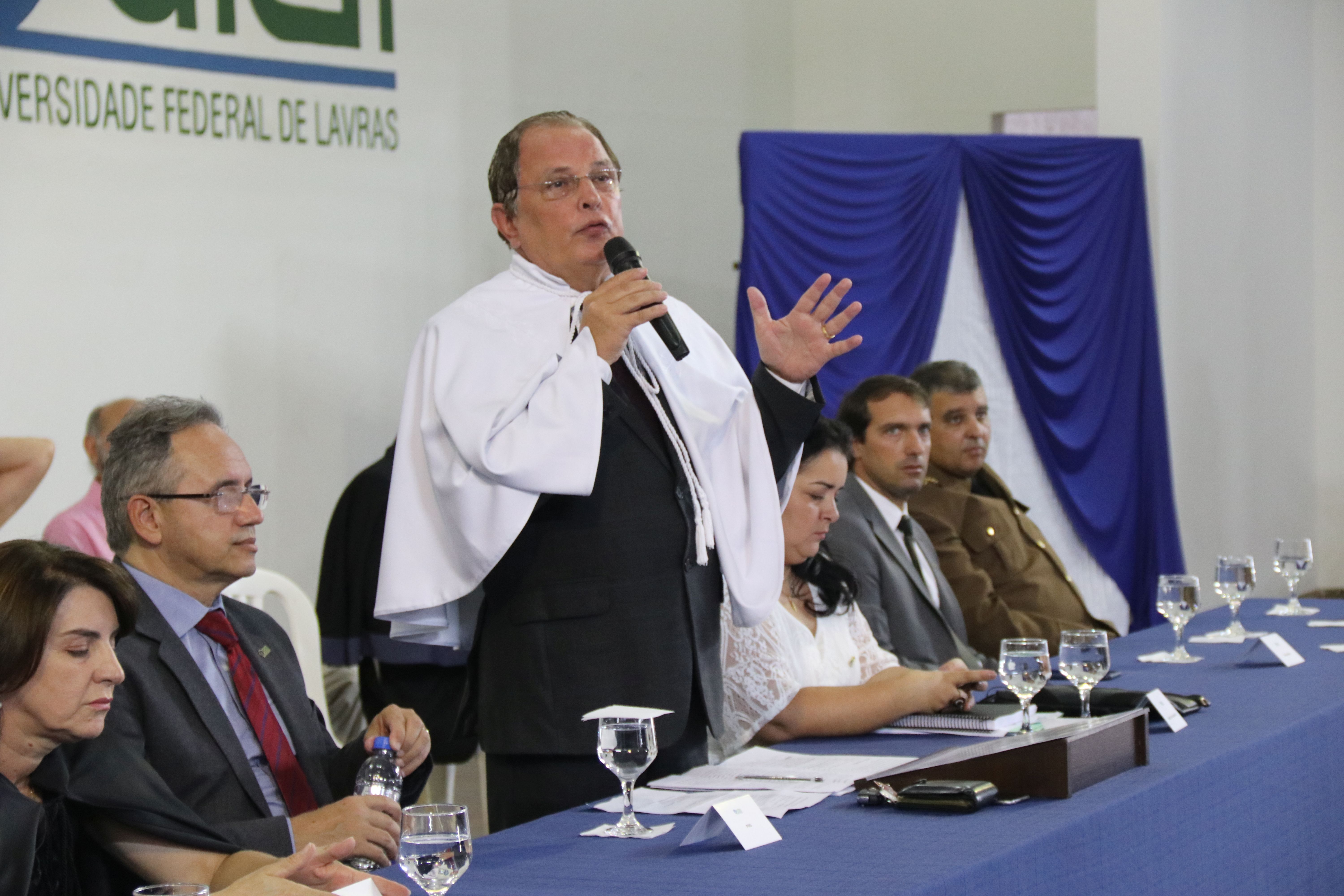 As solenidades foram presididas pelo reitor e presidente do CUNI, professor José Roberto Soares Scolforo. Após fazer referência à tradução das cerimônias na Língua Brasileira de Sinais (Libras), manifestou orgulho pelo fato de a UFLA trabalhar primando pela inclusão e pelo respeito às diversidades. Para os formandos, reforçou a importância do juramento que fizeram, especialmente pelo compromisso com a ética, a justiça e a defesa da liberdade e da paz. “Vocês tiveram a felicidade de se formar sob o investimento do povo brasileiro. Por isso devem se empenhar em cumprir esses compromissos carregados de valores que são hoje tão necessários à sociedade brasileira”. Scolforo também incentivou os novos profissionais a seguirem em frente: “vençam o medo deste momento posterior à conclusão do curso e lutem, busquem alcançar seus sonhos, sejam cidadãos de valor, pratiquem solidariedade e continuem a caminhada com garra e persistência, sempre respeitando as diferenças”.