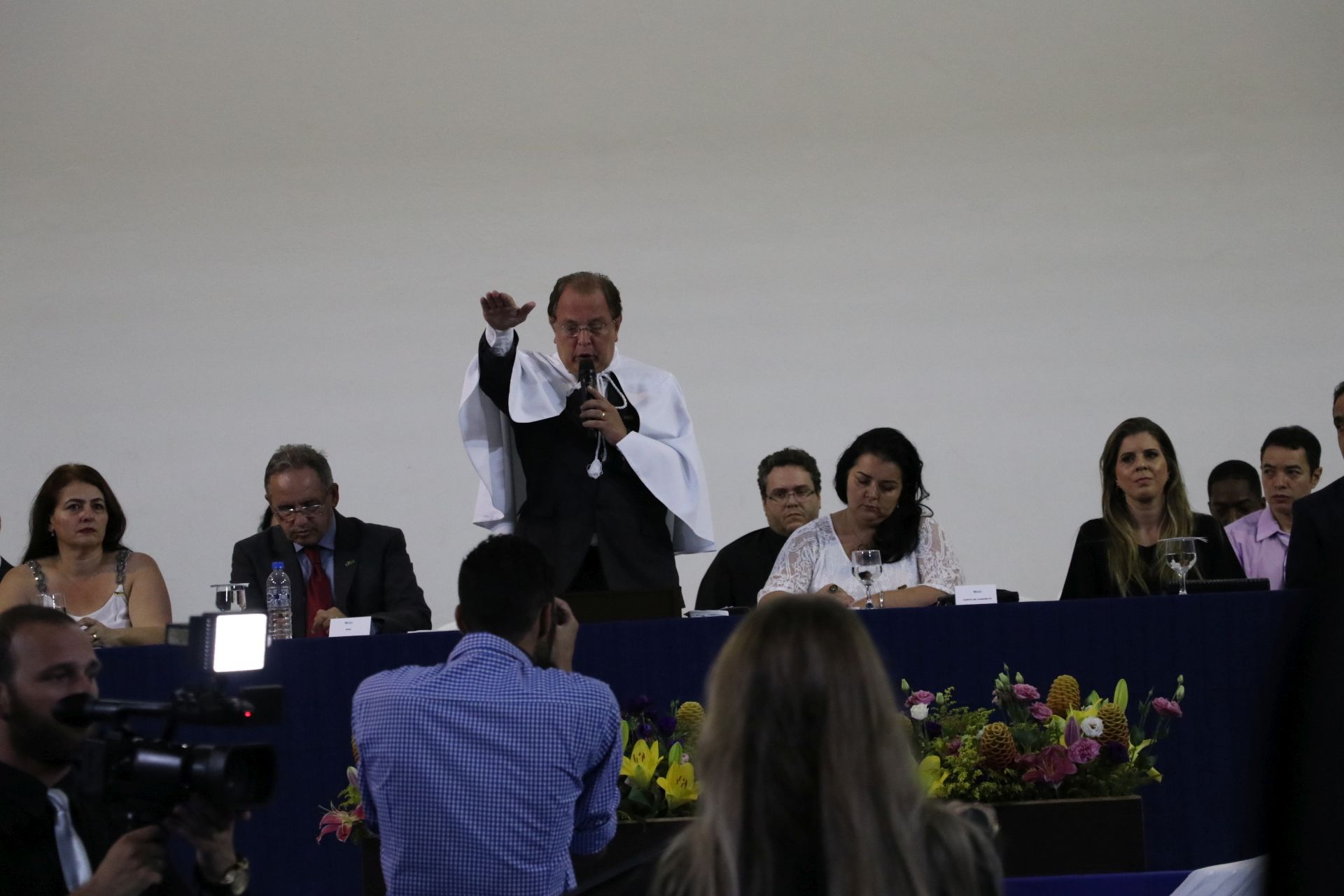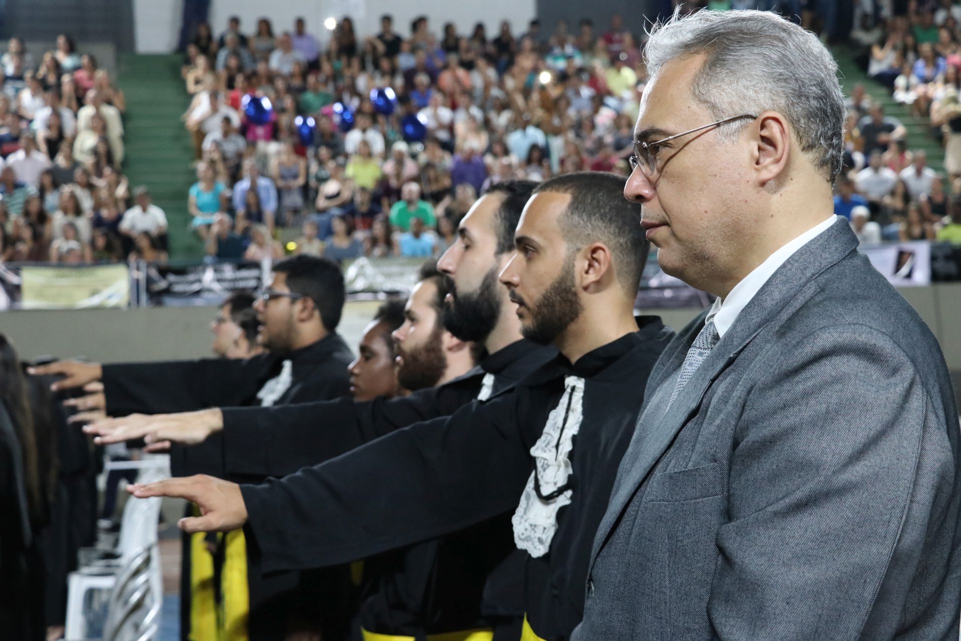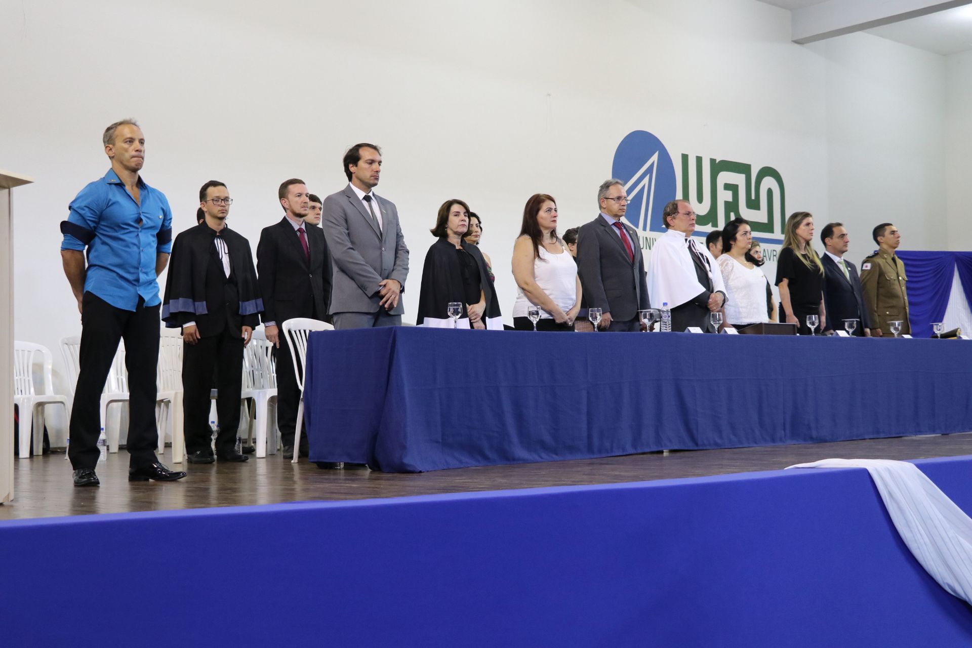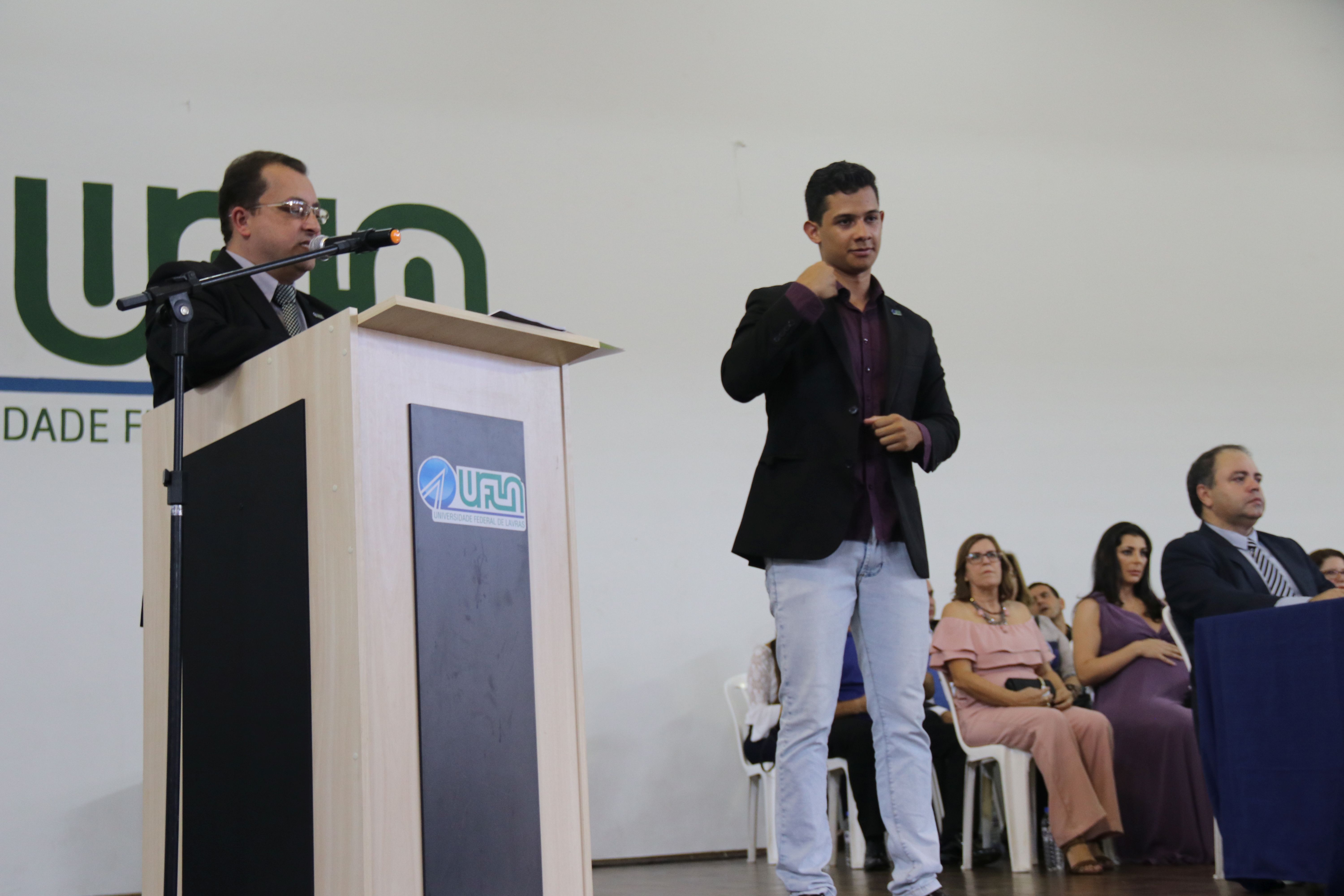 As solenidades foram presididas pelo reitor e presidente do CUNI, professor José Roberto Soares Scolforo. Após fazer referência à tradução das cerimônias na Língua Brasileira de Sinais (Libras), manifestou orgulho pelo fato de a UFLA trabalhar primando pela inclusão e pelo respeito às diversidades. Para os formandos, reforçou a importância do juramento que fizeram, especialmente pelo compromisso com a ética, a justiça e a defesa da liberdade e da paz. “Vocês tiveram a felicidade de se formar sob o investimento do povo brasileiro. Por isso devem se empenhar em cumprir esses compromissos carregados de valores que são hoje tão necessários à sociedade brasileira”. Scolforo também incentivou os novos profissionais a seguirem em frente: “vençam o medo deste momento posterior à conclusão do curso e lutem, busquem alcançar seus sonhos, sejam cidadãos de valor, pratiquem solidariedade e continuem a caminhada com garra e persistência, sempre respeitando as diferenças”.
